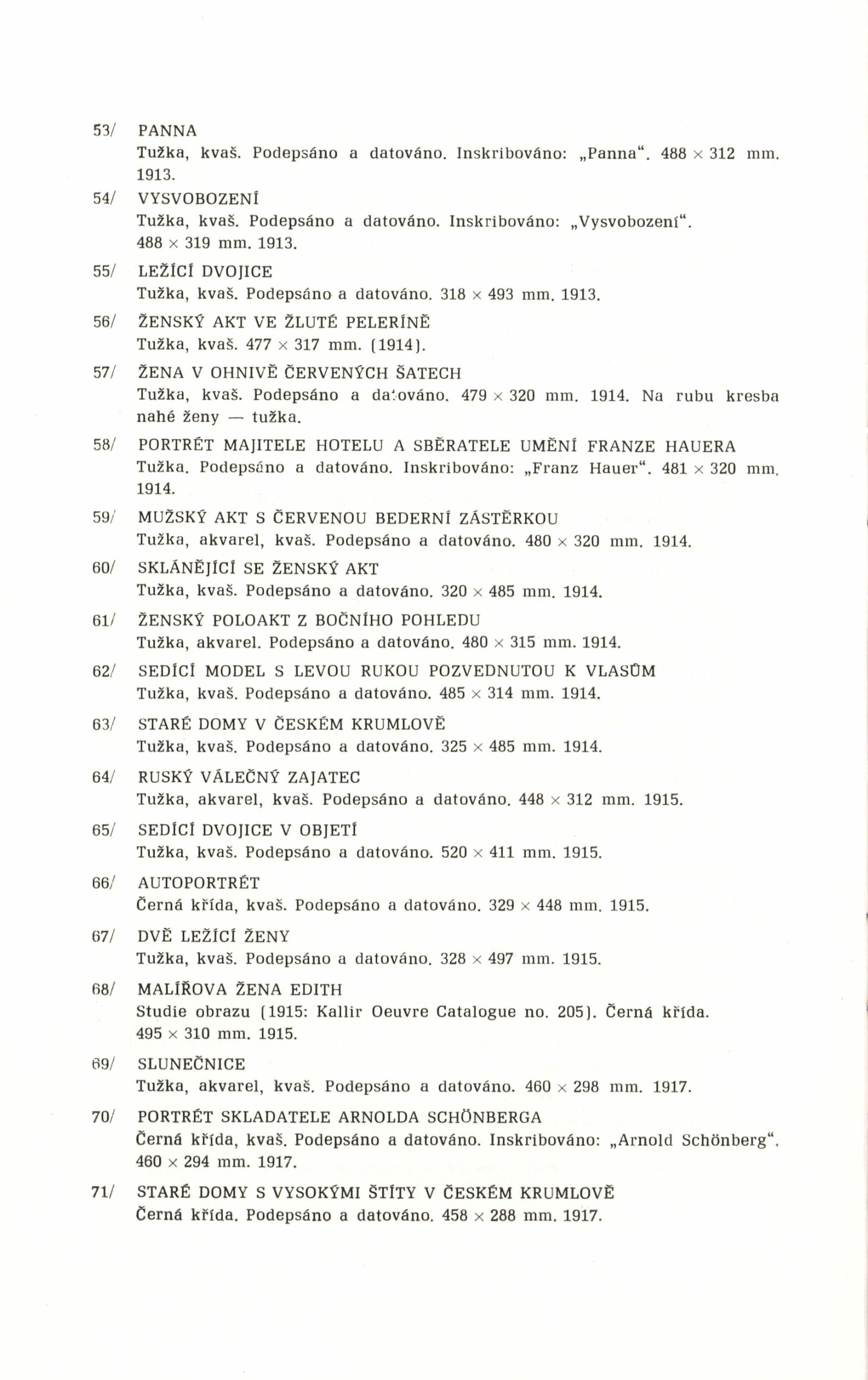 Gustav Klimt (1862–1918). Egon Schiele (1890–1918). Faksimile akvarelů a kreseb sbírkových fondů vídeňské Albertiny a soukromých sbírek: Dům umění / Dům pánů z Kunštátu, Kabinet grafiky, 12. 9. – 15. 10. 1989 / Převzatý katalog Rakouská secese. Faksimile akvarelů a kreseb z fondů grafických sbírek vídeňské Albertiny a soukromých sbírek. Gustav Klimt (1862–1918), Egon Schiele (1890–1918). / Texty: Walter Koschatzky, Alice Strobl, Erwin Mitsch. – České Budějovice: PKO, 1989. – [16] s., obr., životní data, DPK 922