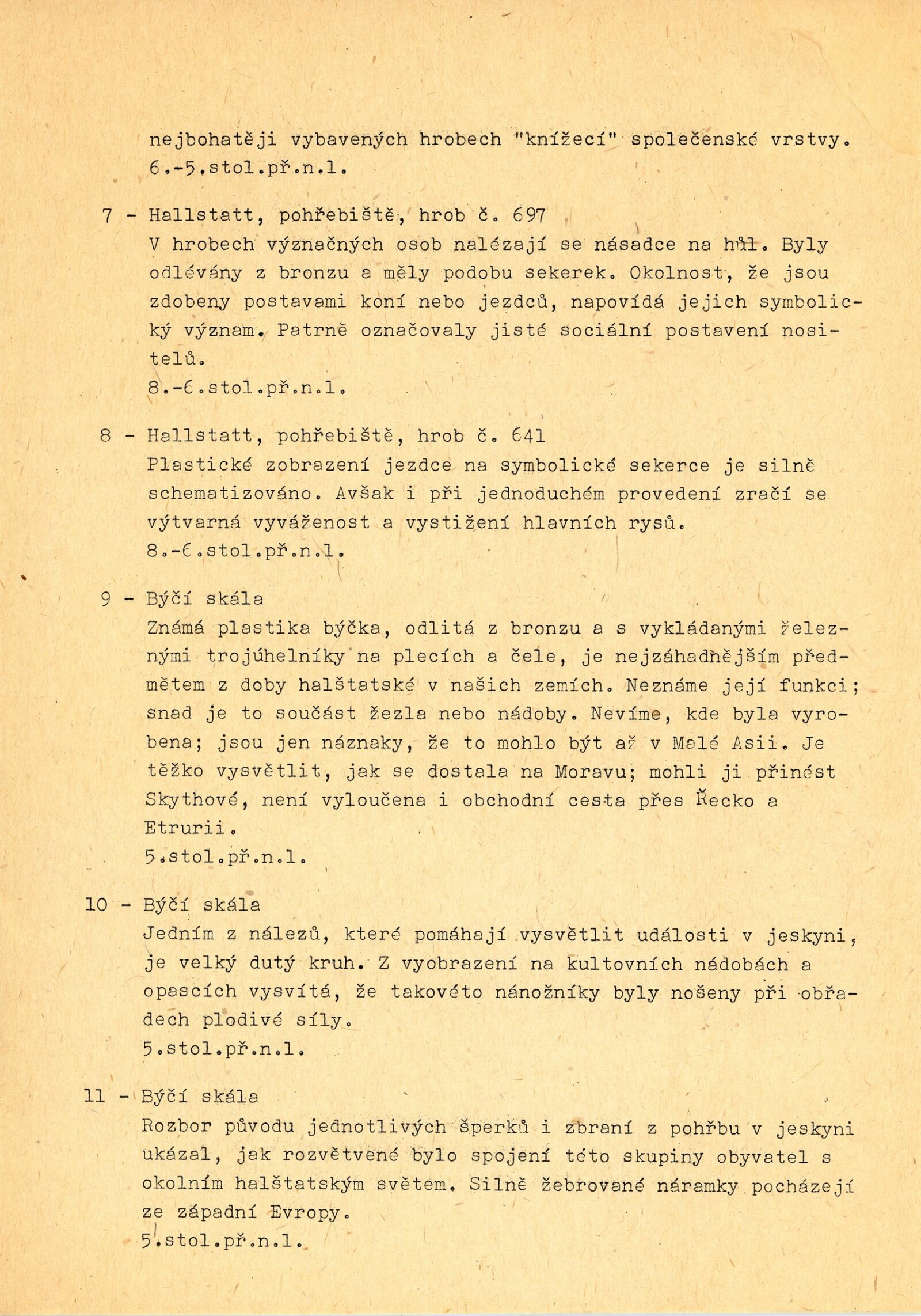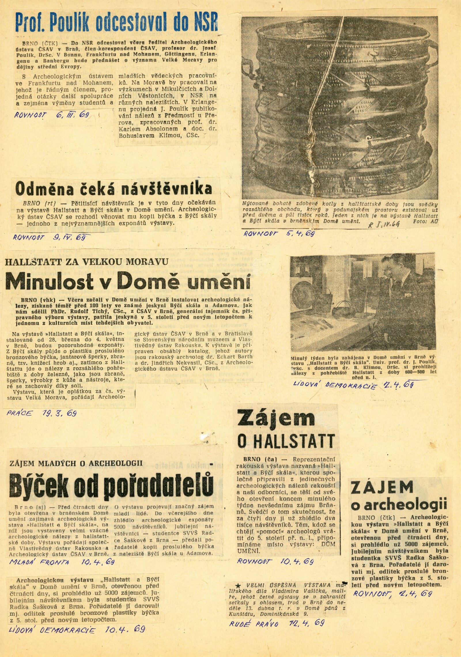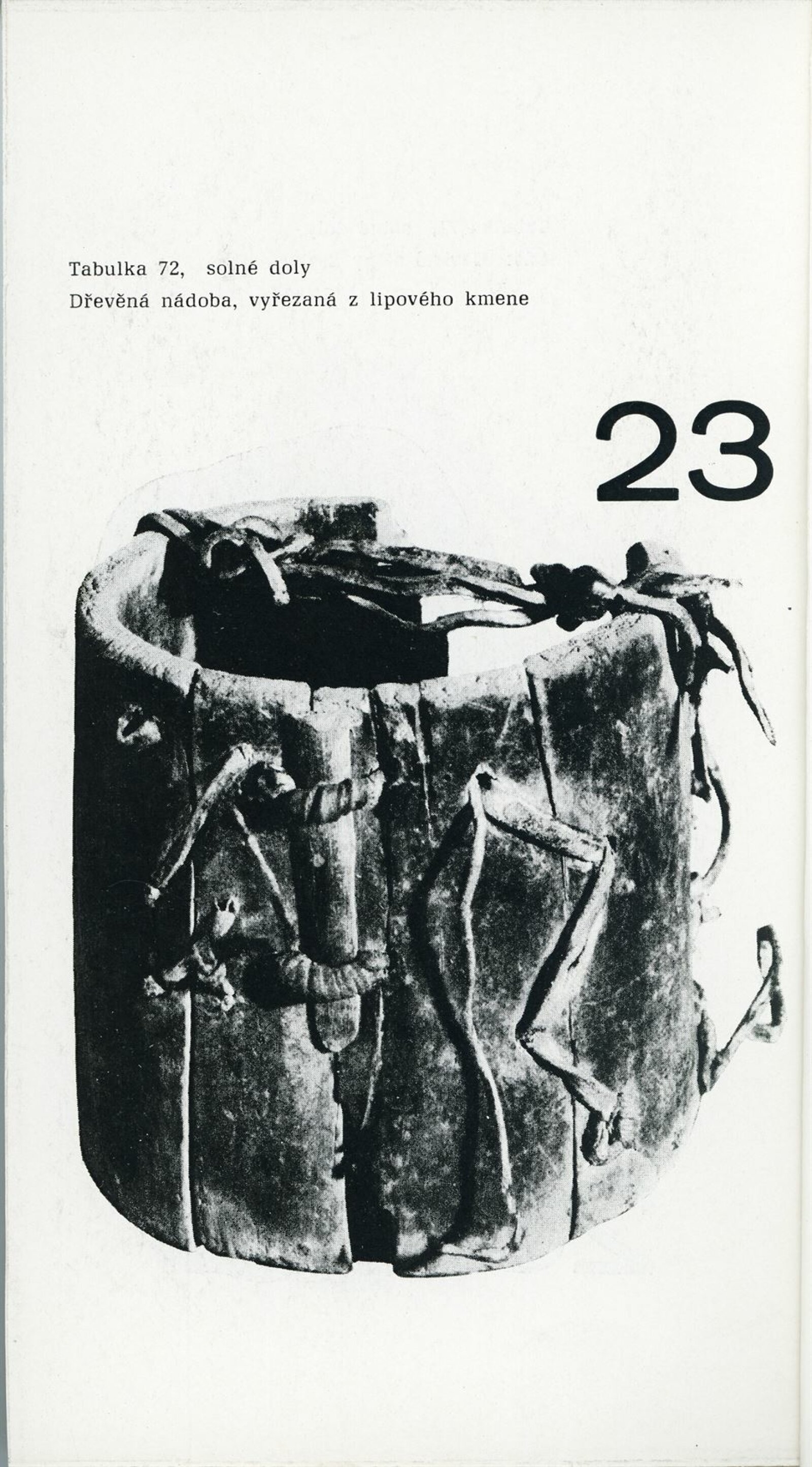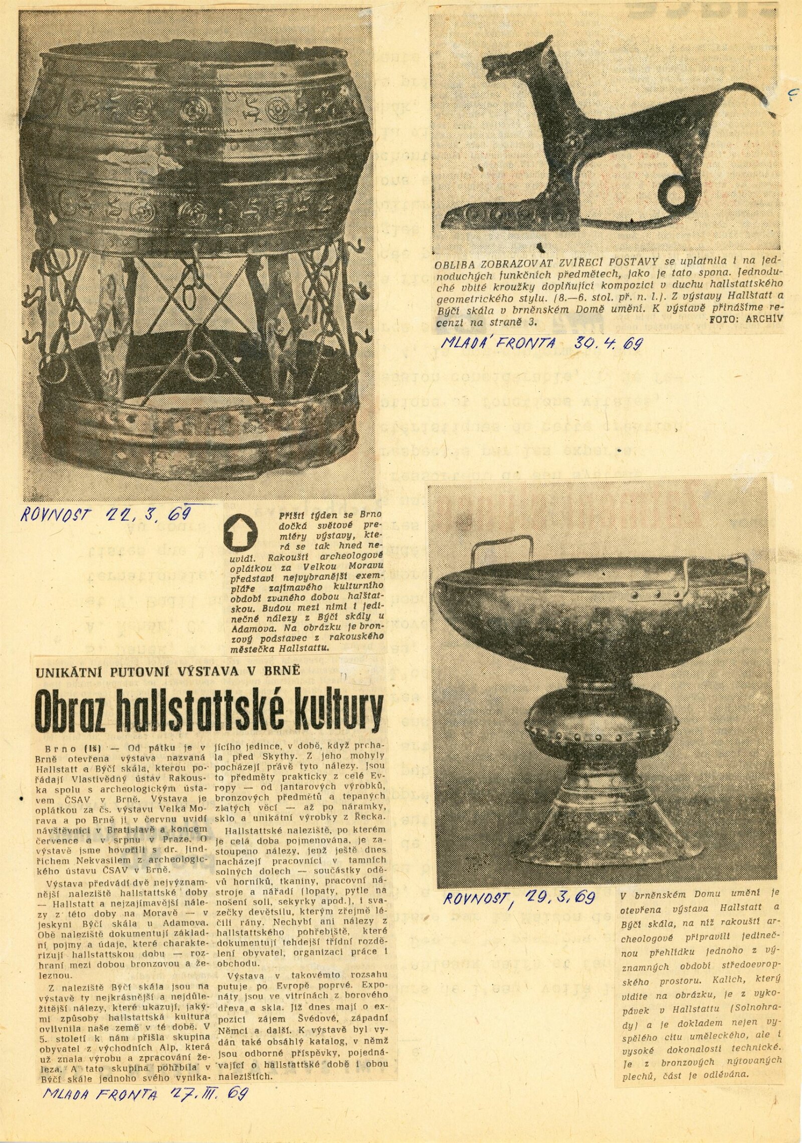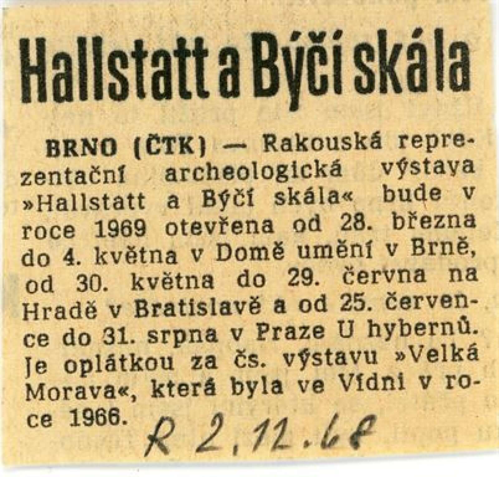 pozvánka (ČJ, NJ), katalog, leták, strojopis pozvánky na přednášku (prof. dr. Karel Kromer), text k výstavě, texty k obrázkům pro tiskovou konferenci, fotografie vystavených exponátů, korespondence (dopis Adolfu Kroupovi z Archeologického ústavu ČAV s žádostí o uspořádání výstavy), recenze v tisku, pozvánka na výstavu (Bratislava, Vídeň), turistické brožury o Rakousku