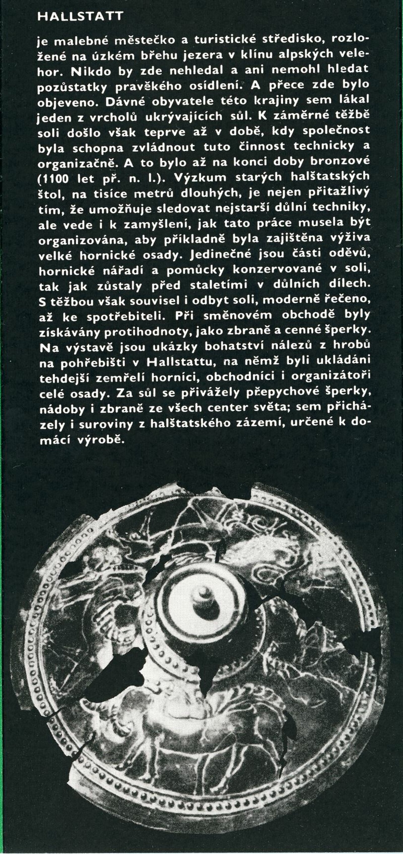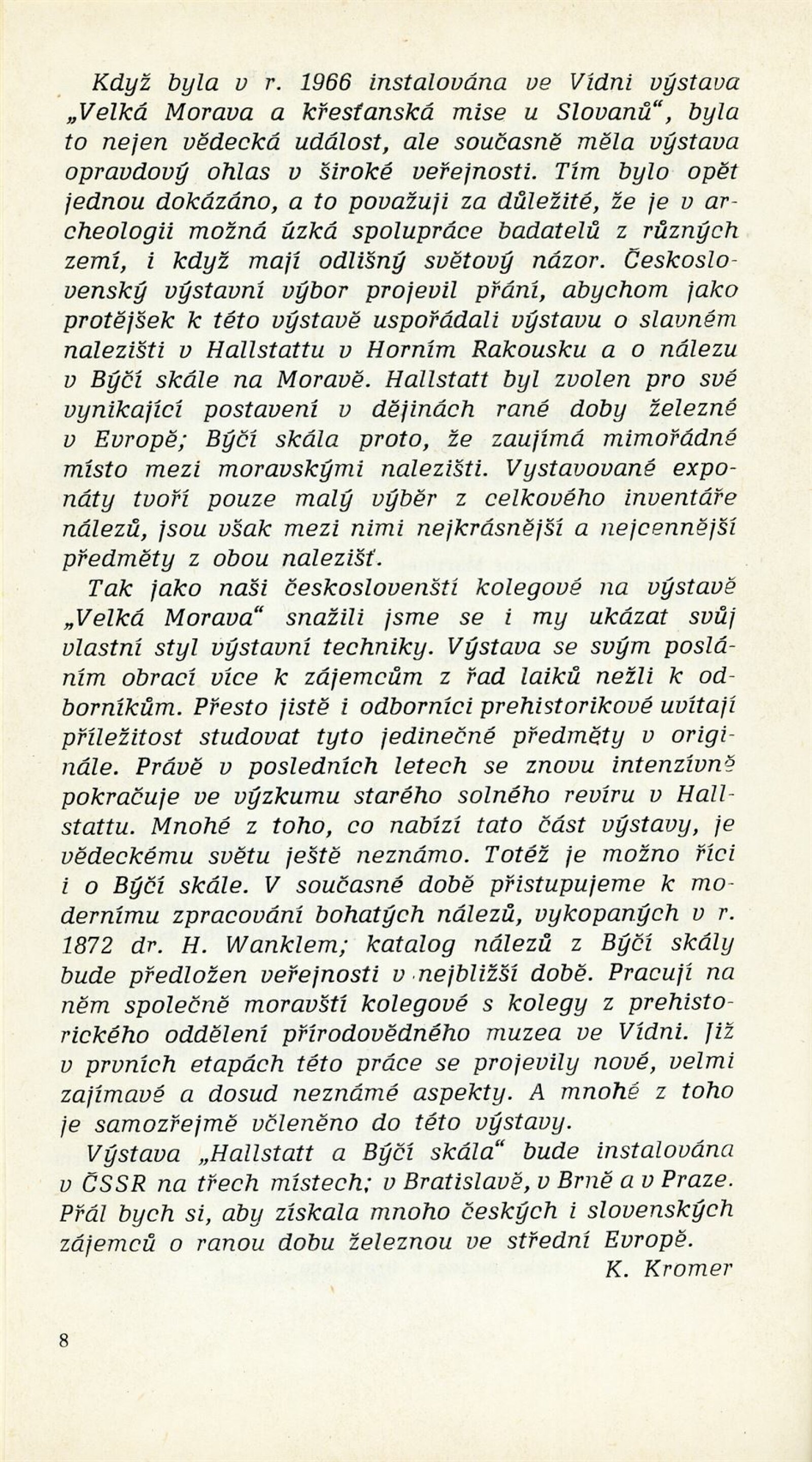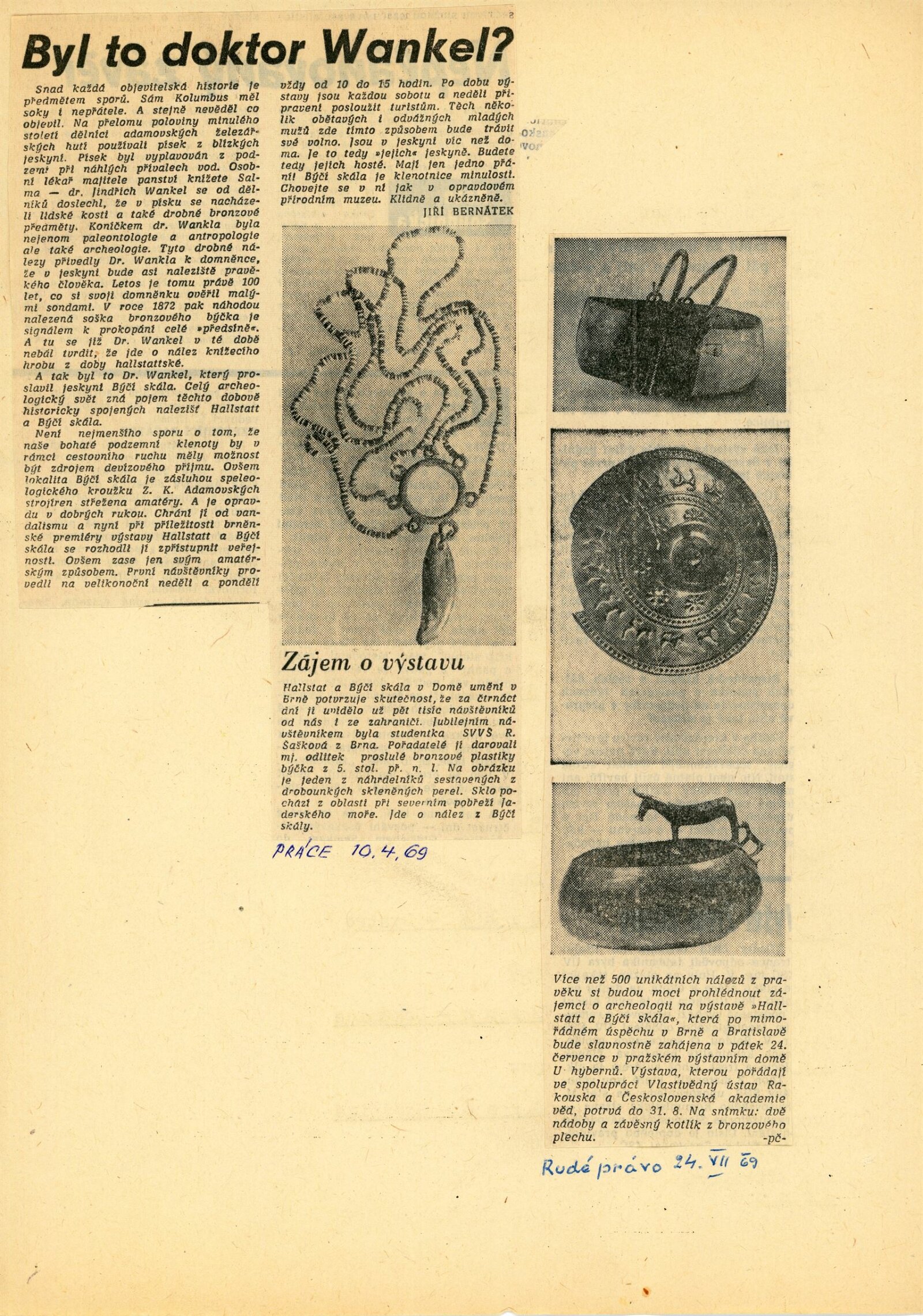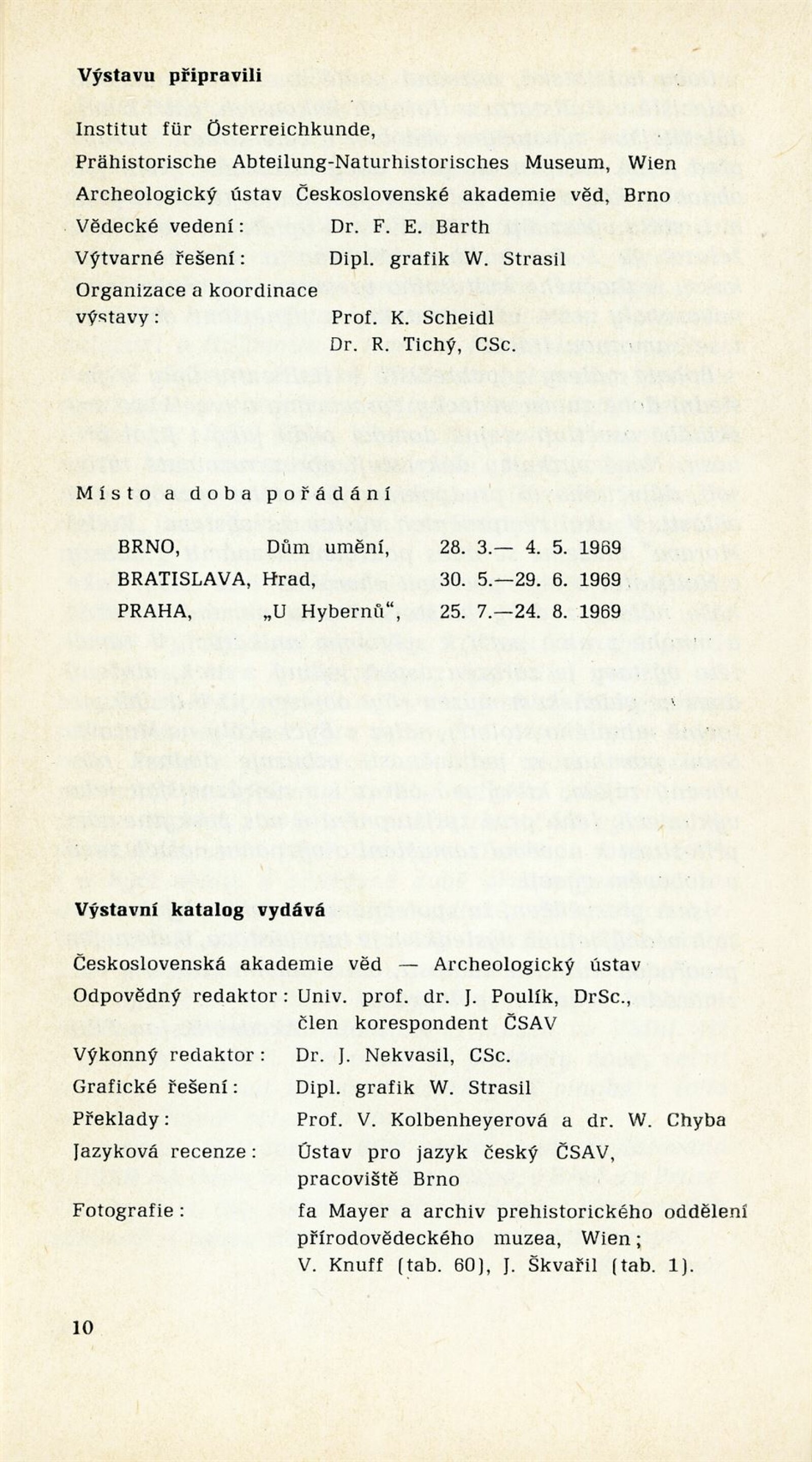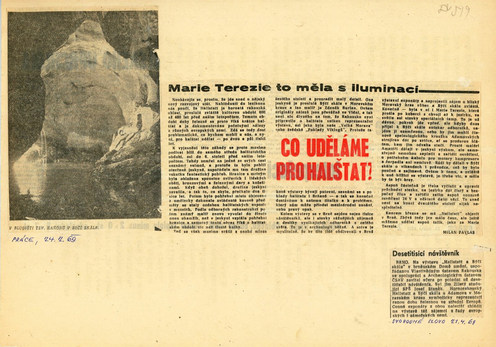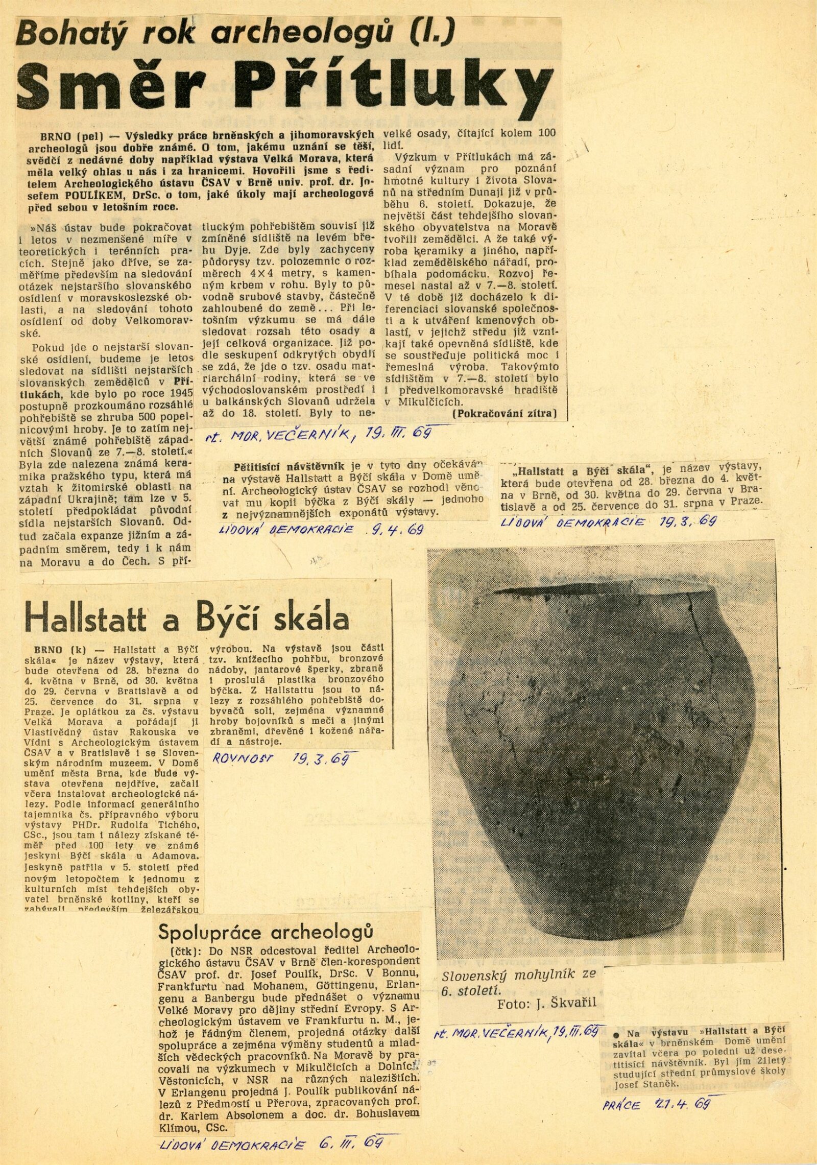 pozvánka (ČJ, NJ), katalog, leták, strojopis pozvánky na přednášku (prof. dr. Karel Kromer), text k výstavě, texty k obrázkům pro tiskovou konferenci, fotografie vystavených exponátů, korespondence (dopis Adolfu Kroupovi z Archeologického ústavu ČAV s žádostí o uspořádání výstavy), recenze v tisku, pozvánka na výstavu (Bratislava, Vídeň), turistické brožury o Rakousku