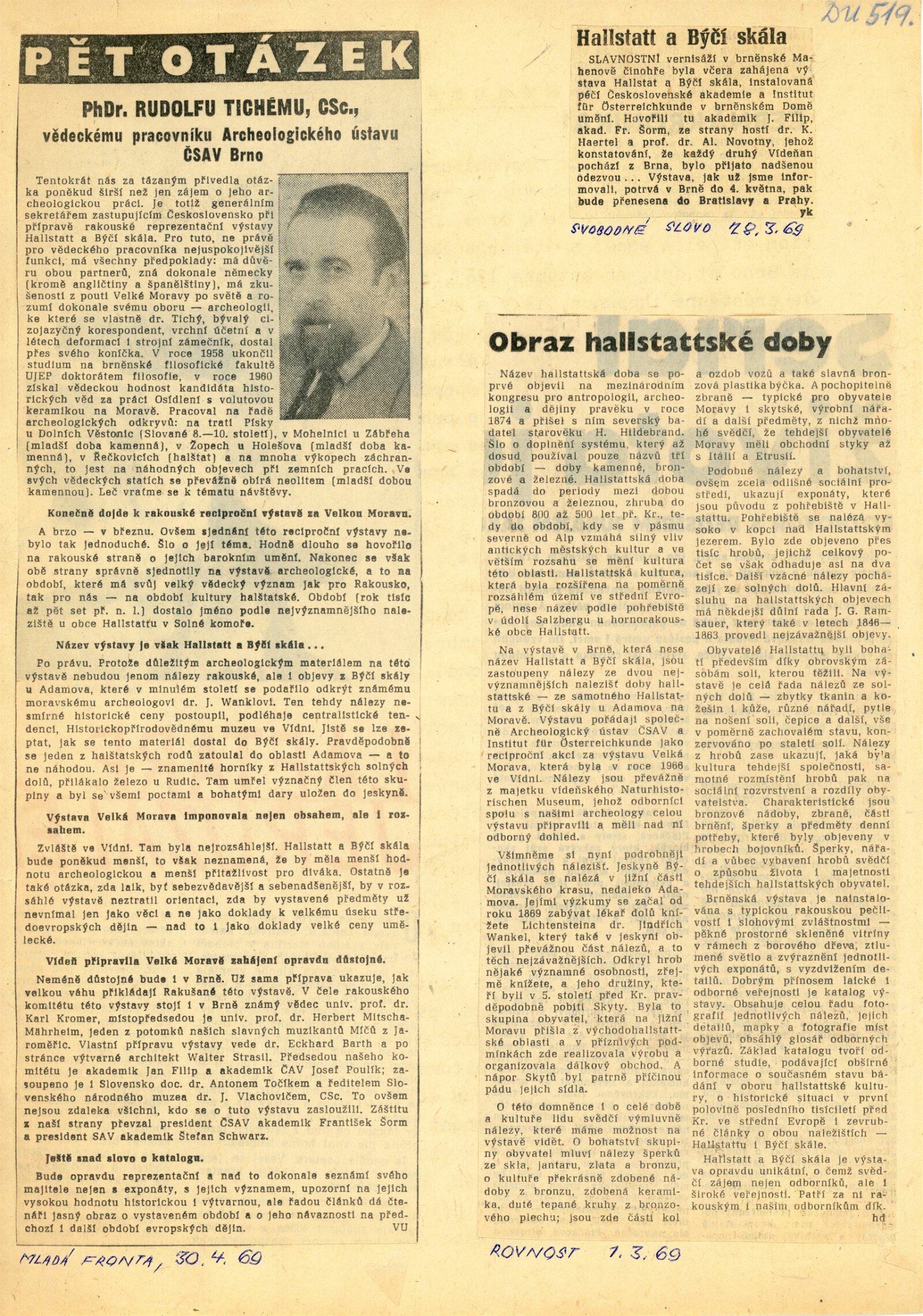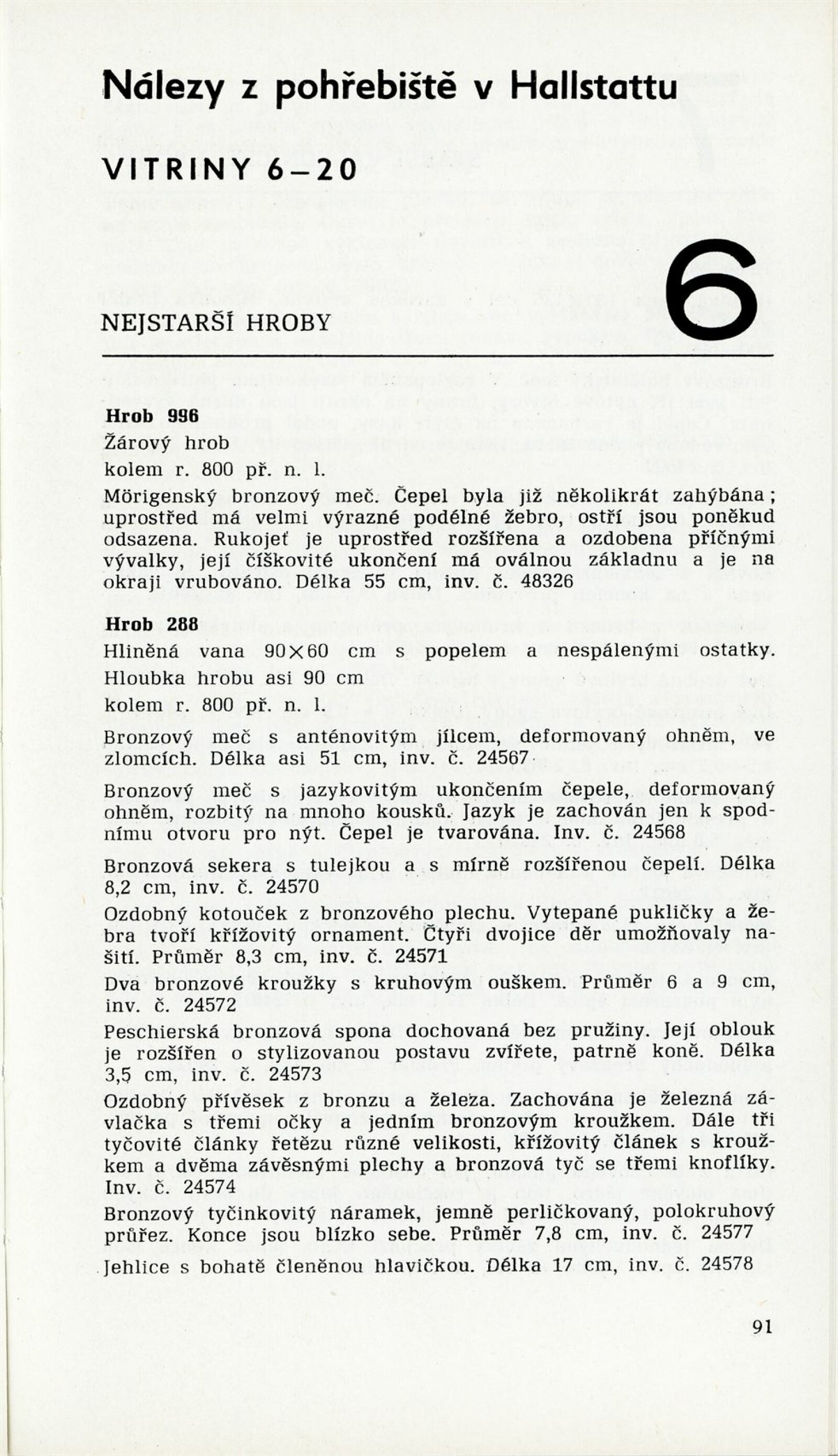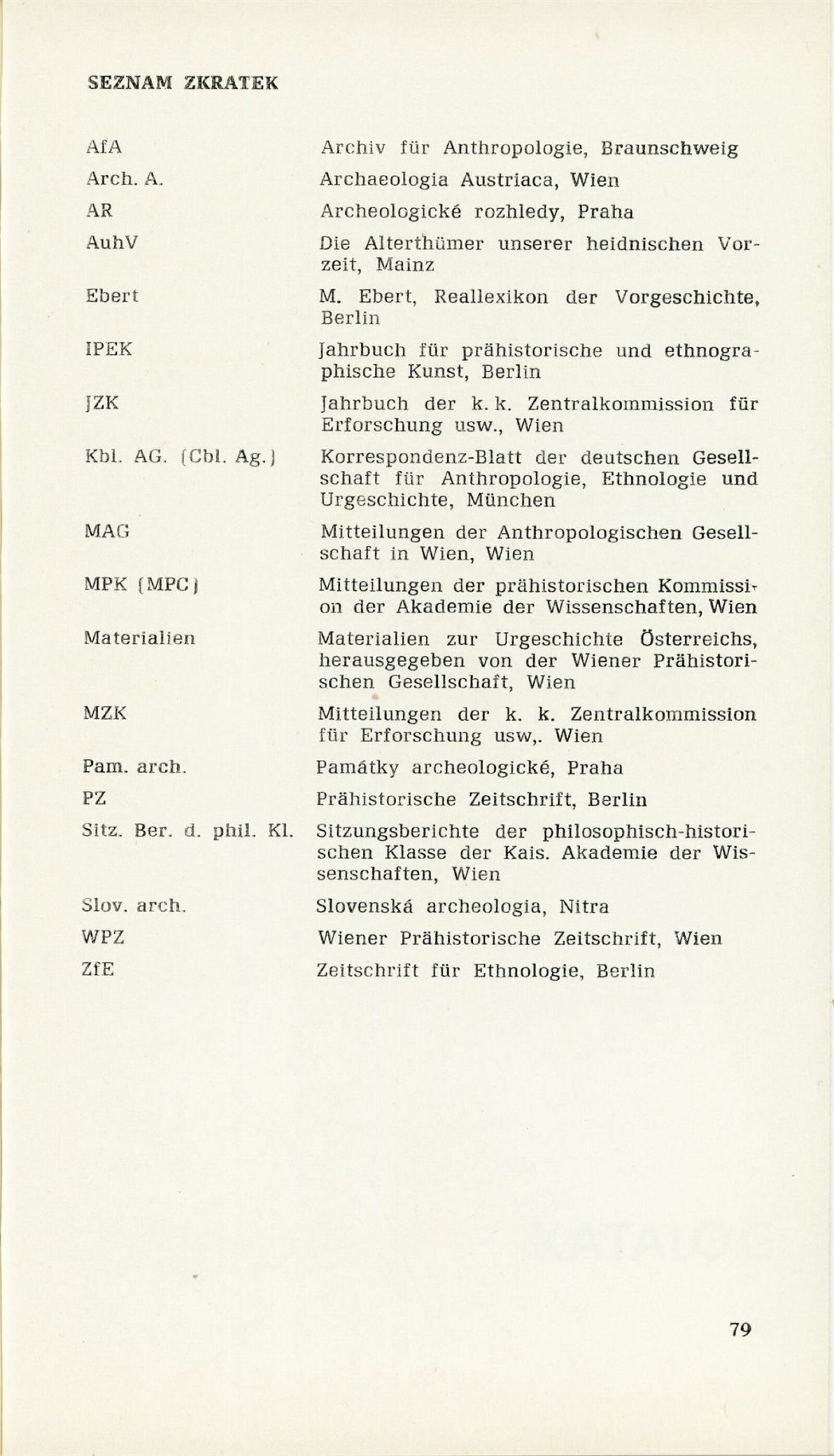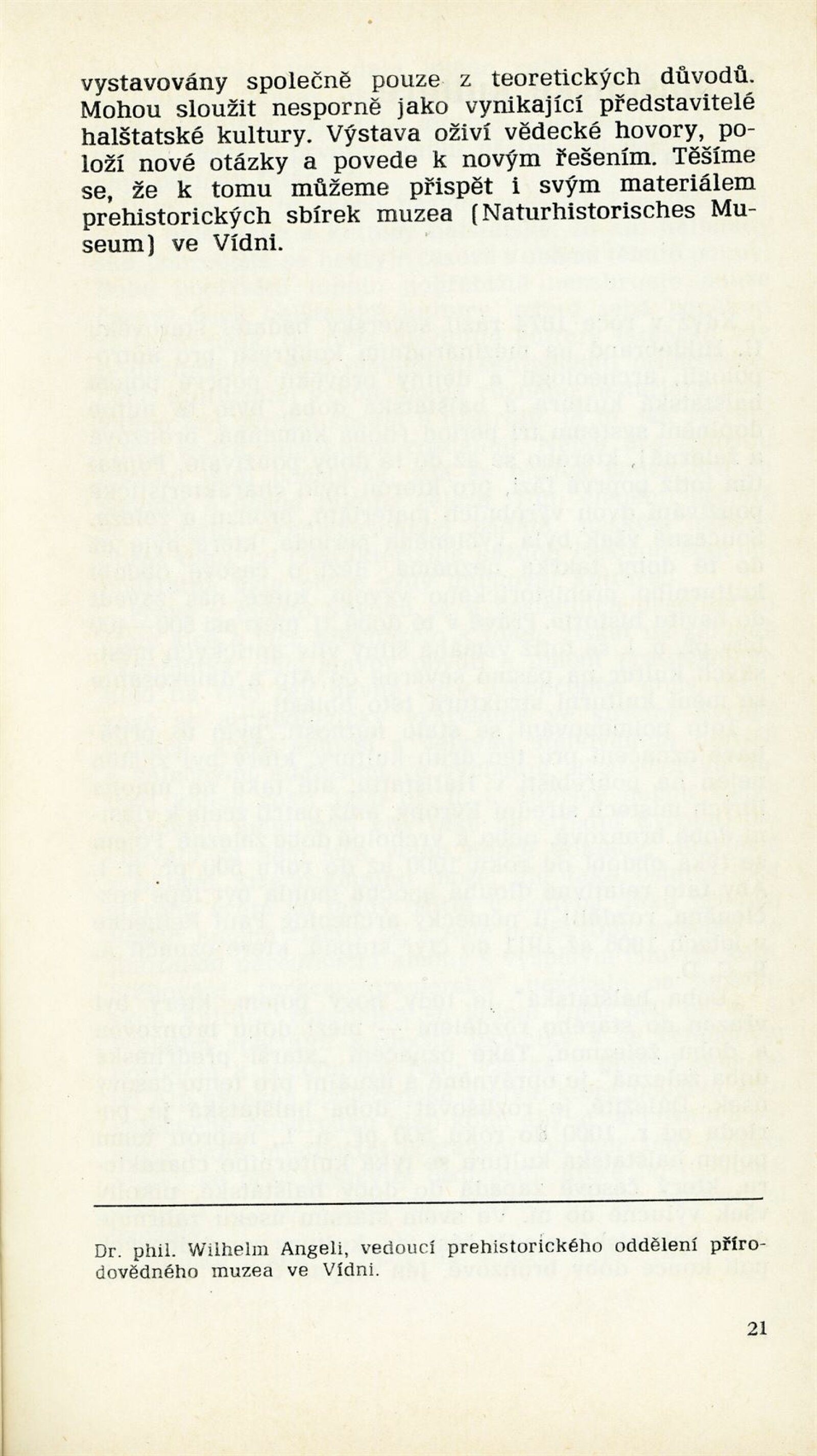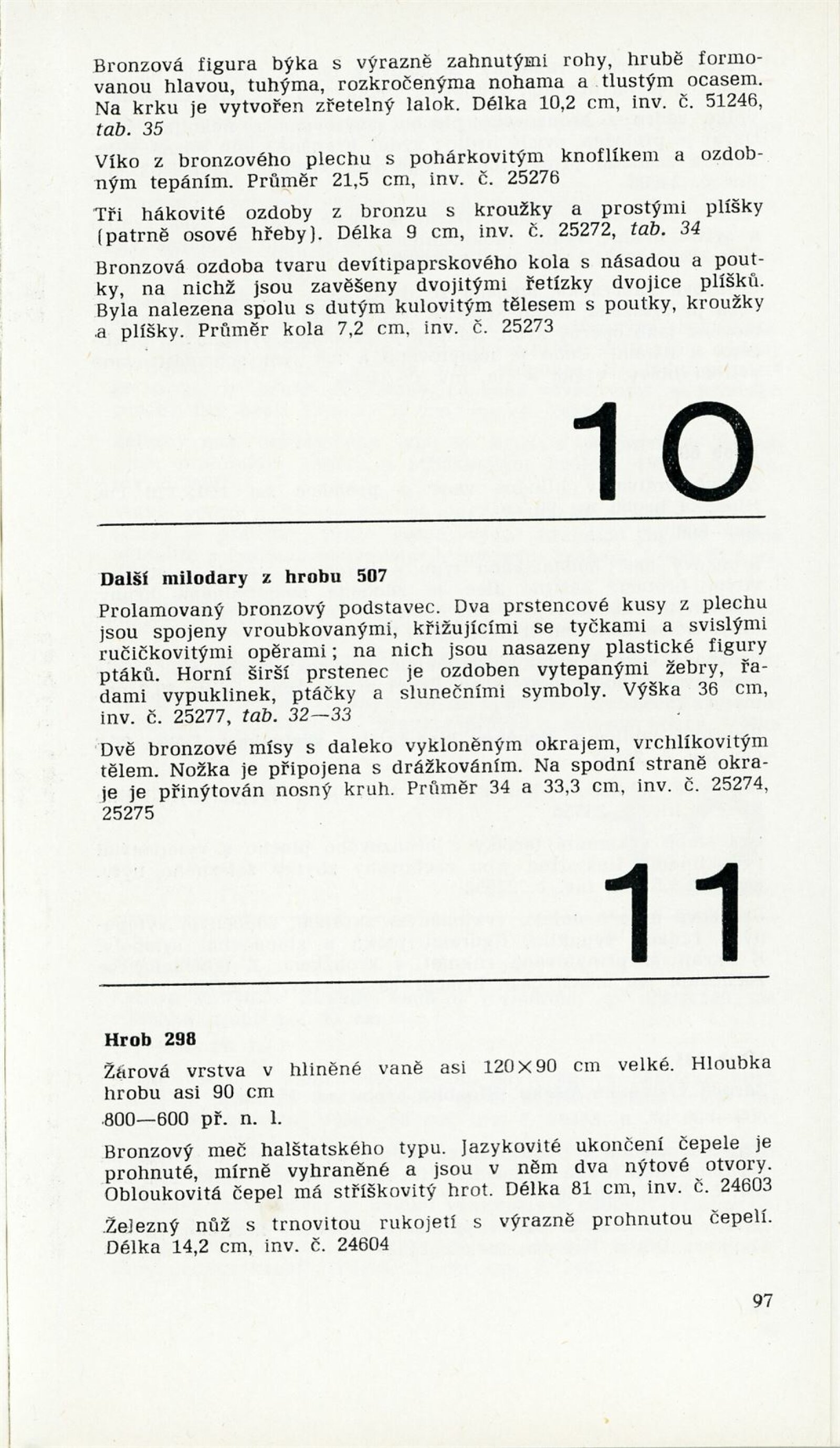 pozvánka (ČJ, NJ), katalog, leták, strojopis pozvánky na přednášku (prof. dr. Karel Kromer), text k výstavě, texty k obrázkům pro tiskovou konferenci, fotografie vystavených exponátů, korespondence (dopis Adolfu Kroupovi z Archeologického ústavu ČAV s žádostí o uspořádání výstavy), recenze v tisku, pozvánka na výstavu (Bratislava, Vídeň), turistické brožury o Rakousku
