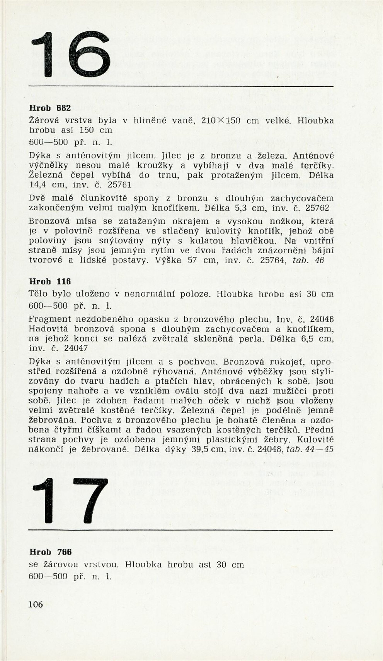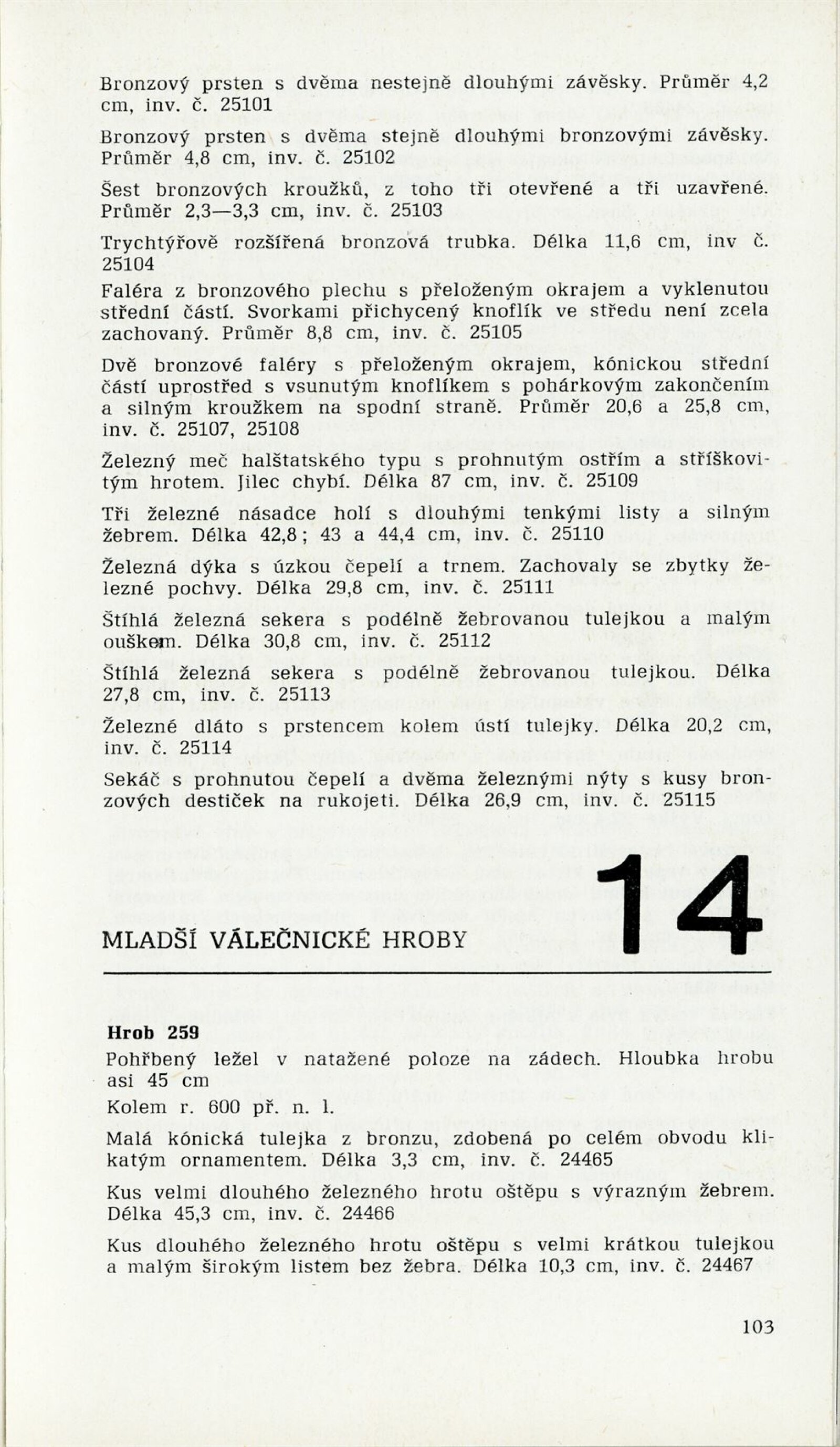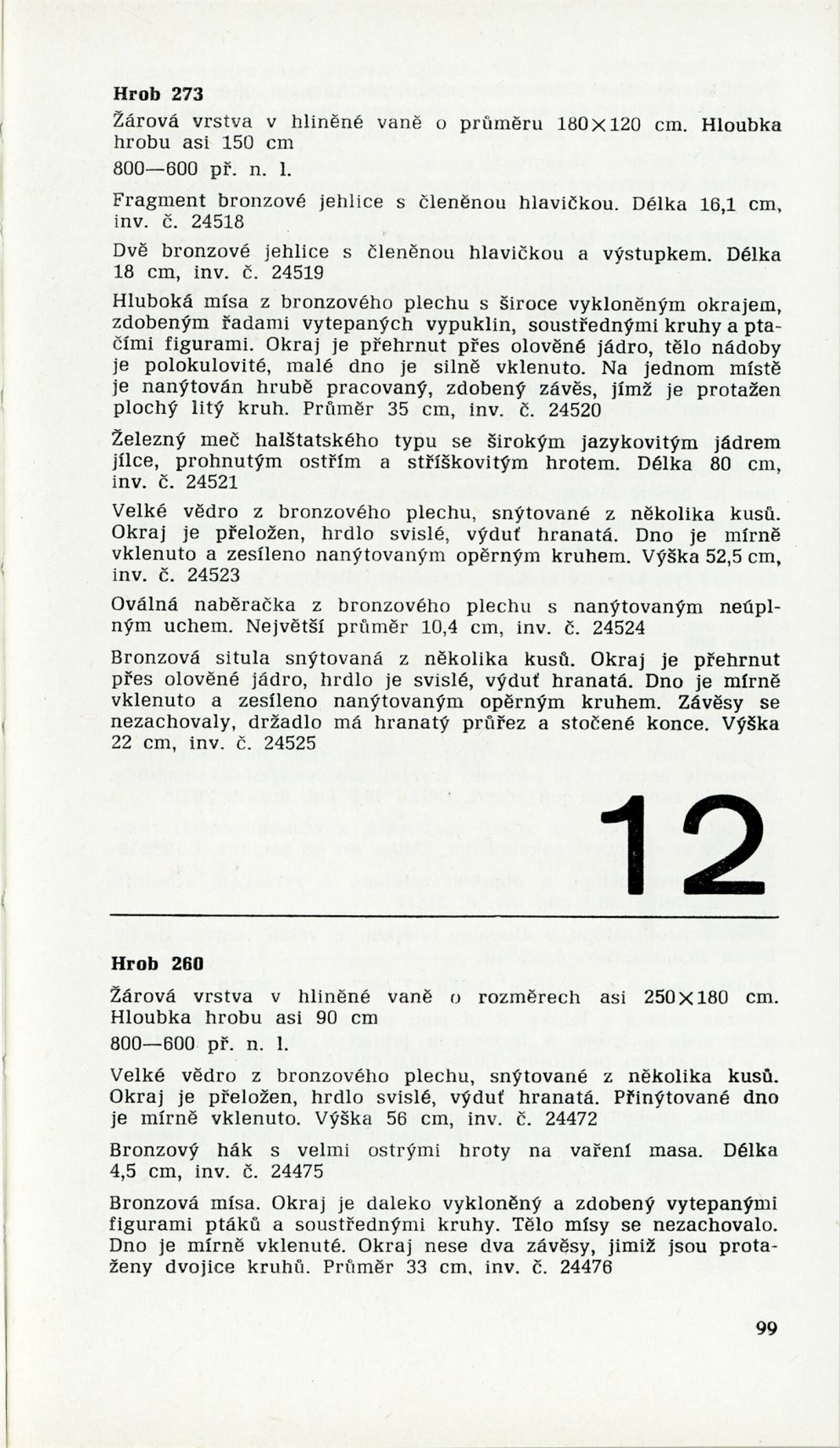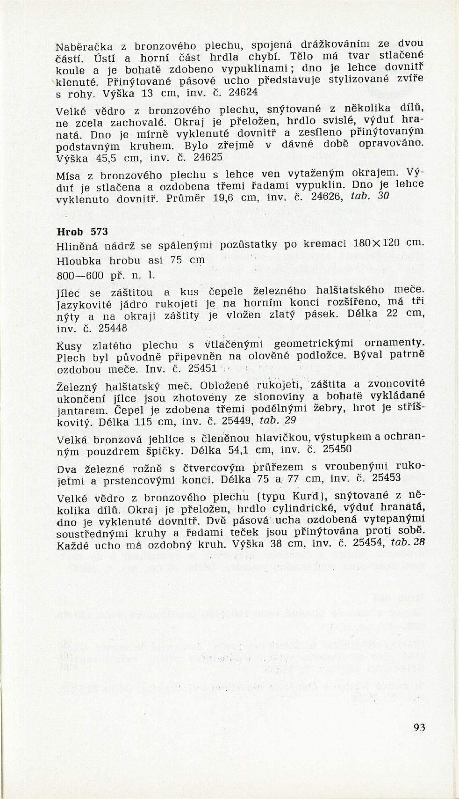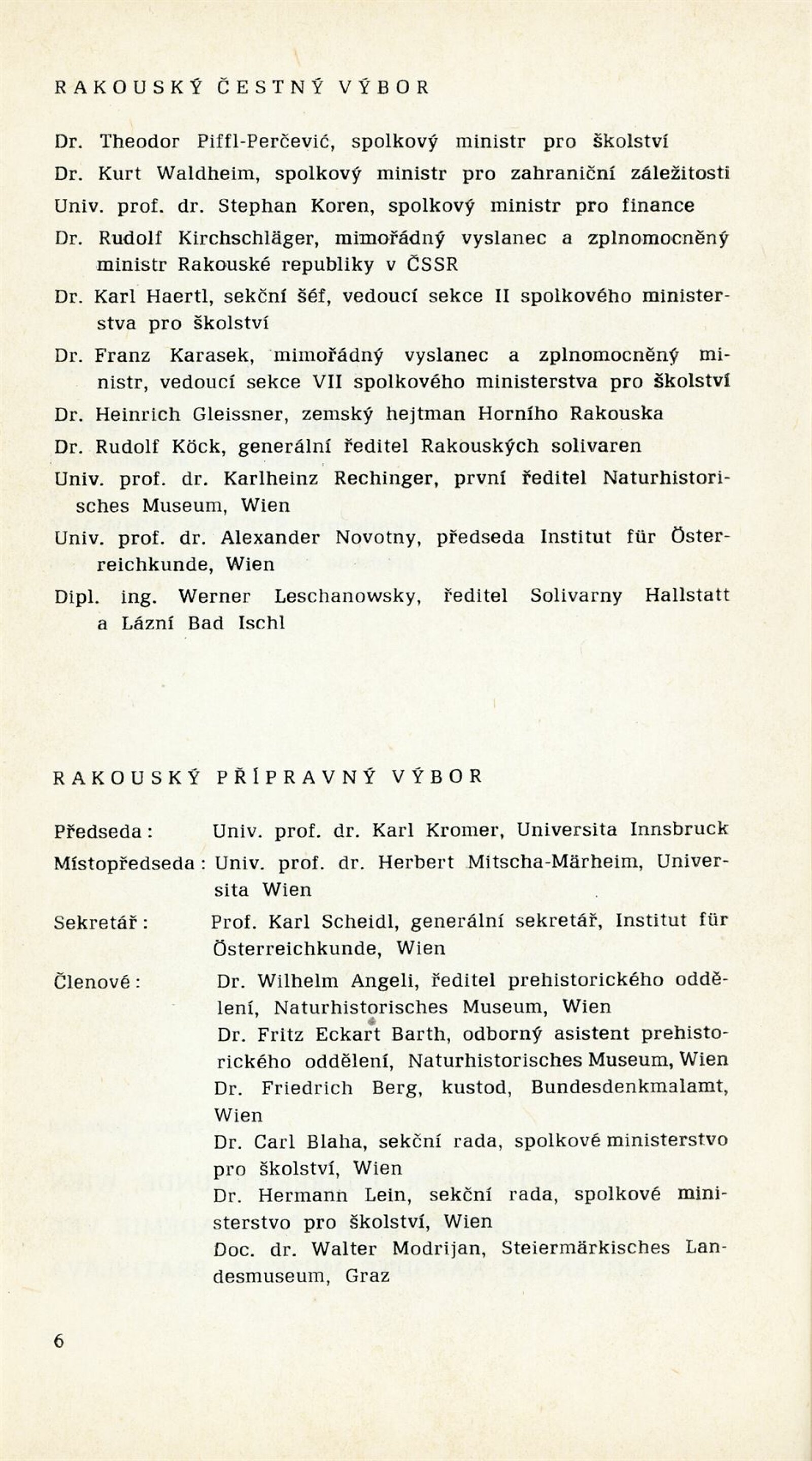 pozvánka (ČJ, NJ), katalog, leták, strojopis pozvánky na přednášku (prof. dr. Karel Kromer), text k výstavě, texty k obrázkům pro tiskovou konferenci, fotografie vystavených exponátů, korespondence (dopis Adolfu Kroupovi z Archeologického ústavu ČAV s žádostí o uspořádání výstavy), recenze v tisku, pozvánka na výstavu (Bratislava, Vídeň), turistické brožury o Rakousku