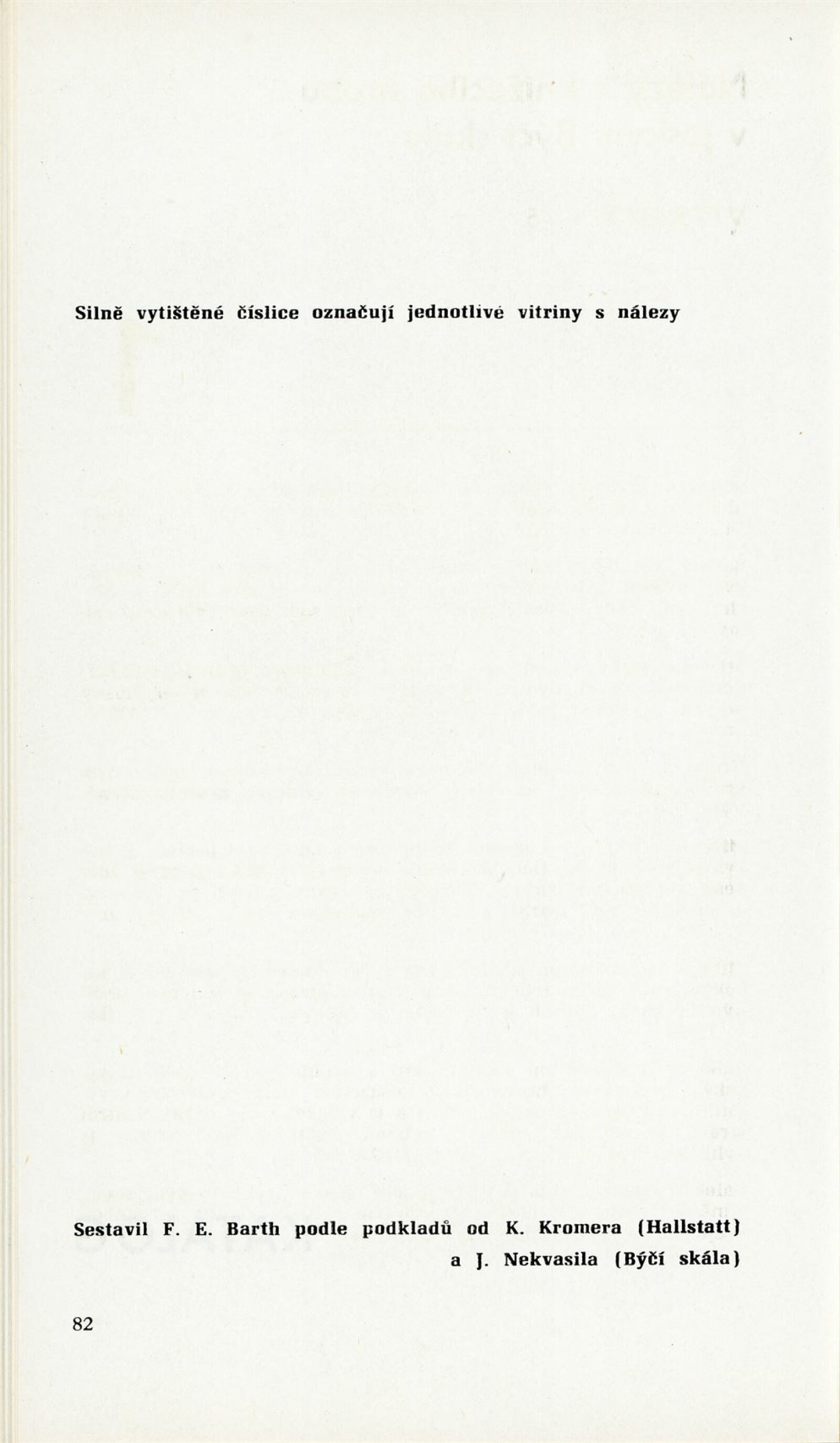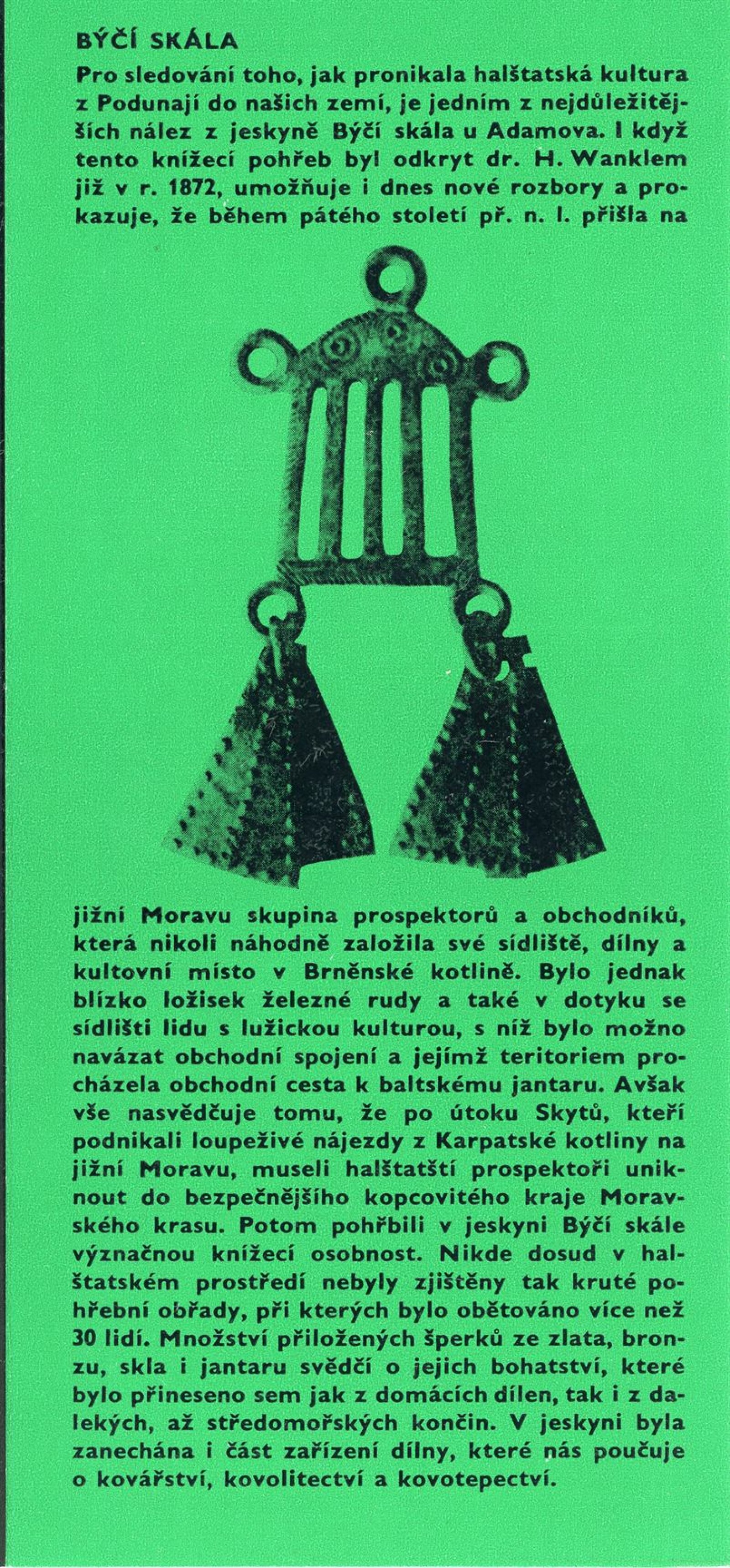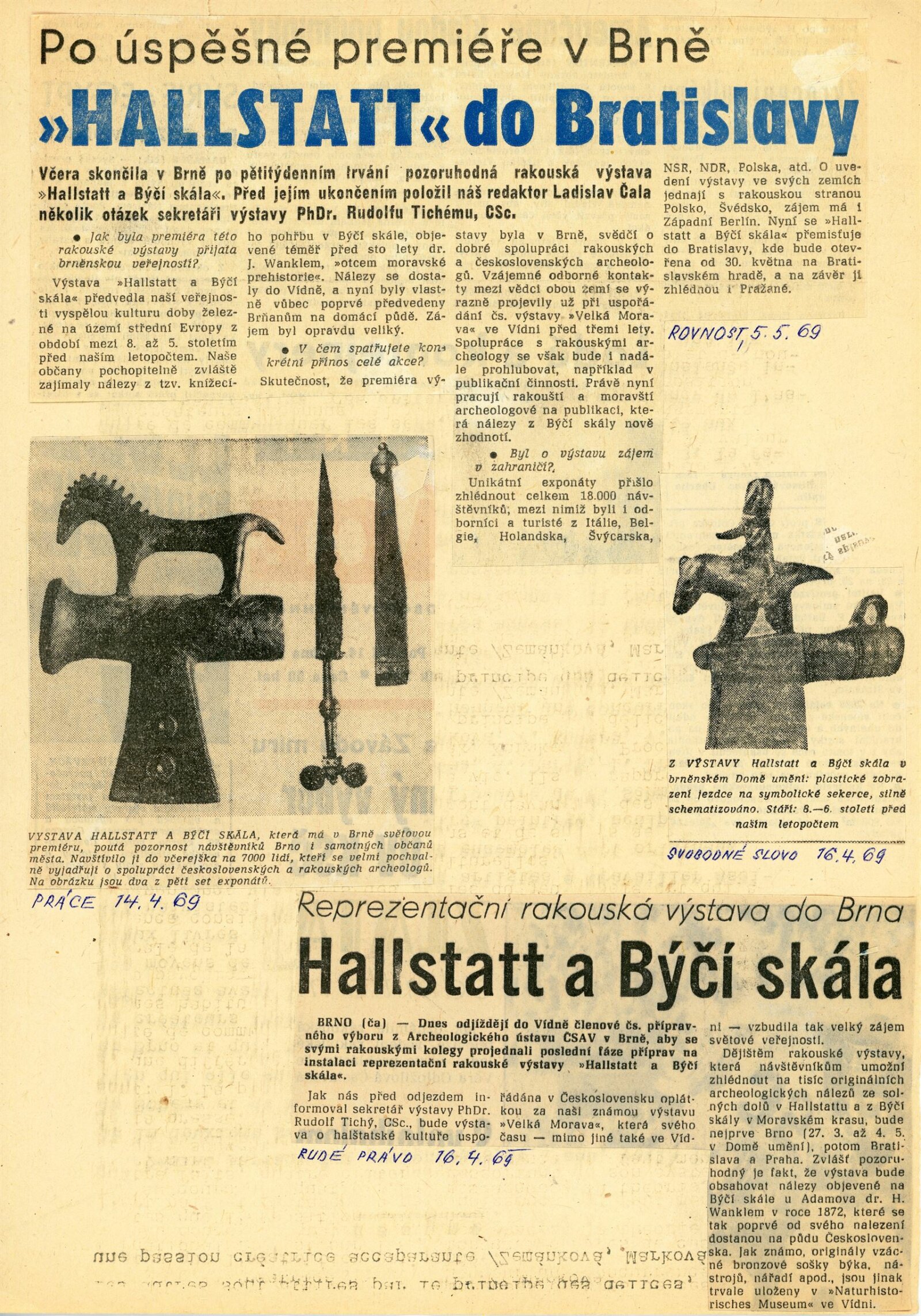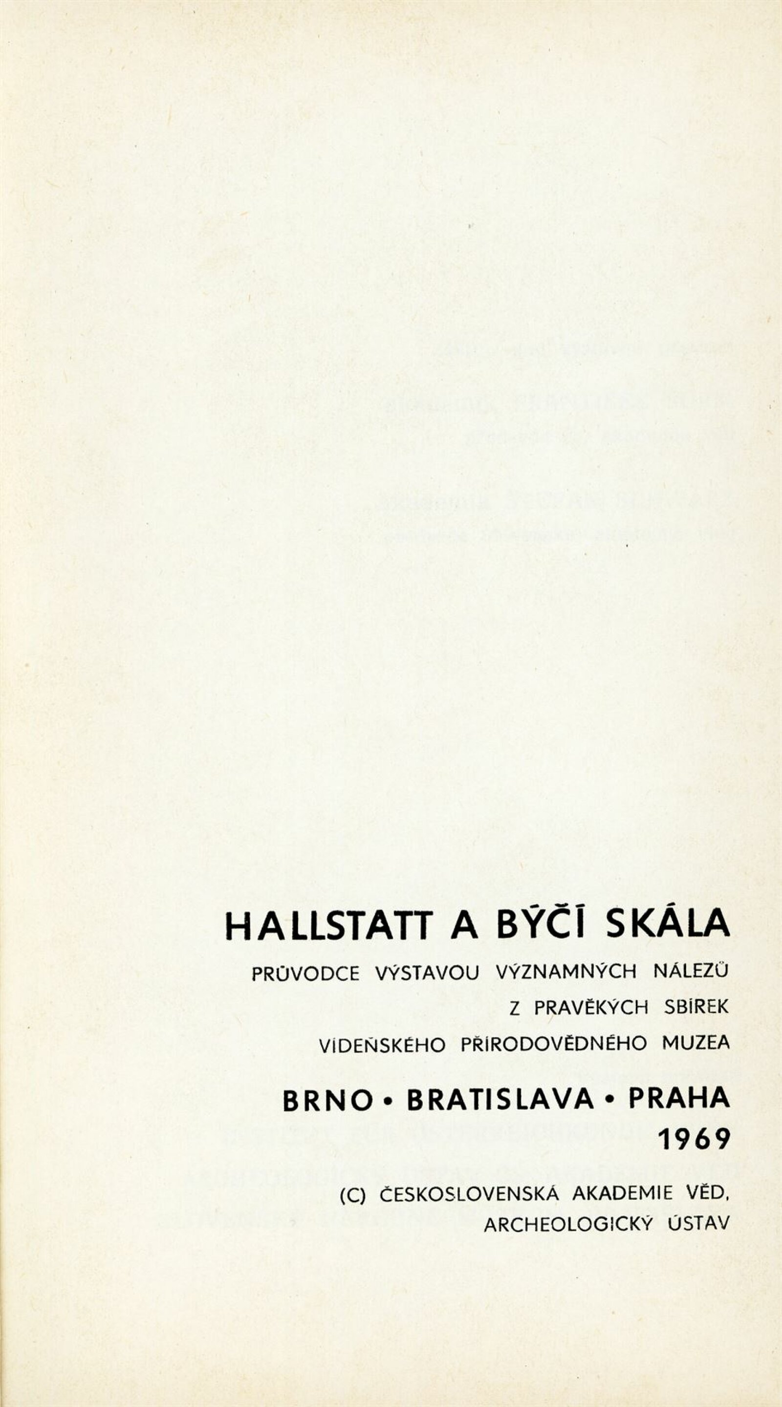 Hallstatt a Býčí skála. Průvodce výstavou významných nálezů z pravěkých sbírek vídeňského Přírodovědného muzea: Dům umění, 1. patro, hala, 28. 3. – 4. 5. 1969 / Texty: Jan Filip, W. Angel, Karl Kromer, Jindřich Nekvasil, F. E. Barth. – Brno: Archeologický ústav ČSAV, 1969. – 116 s., 72 s. obr. příl., bibliografie. – současně vyšel populární leták s textem Jindřicha Nekvasila. – 6 s., obr., DU 519. – MZK; MG