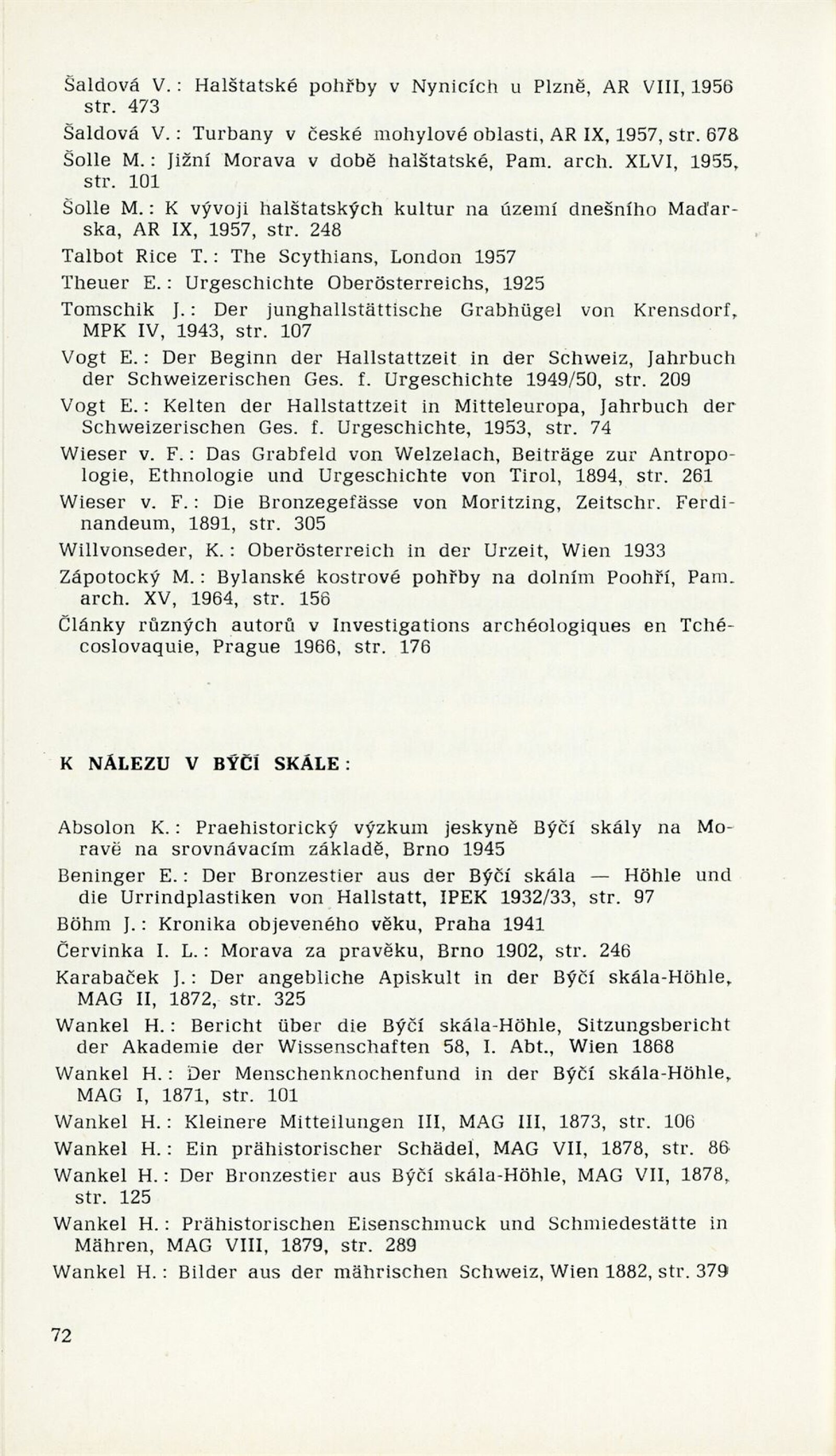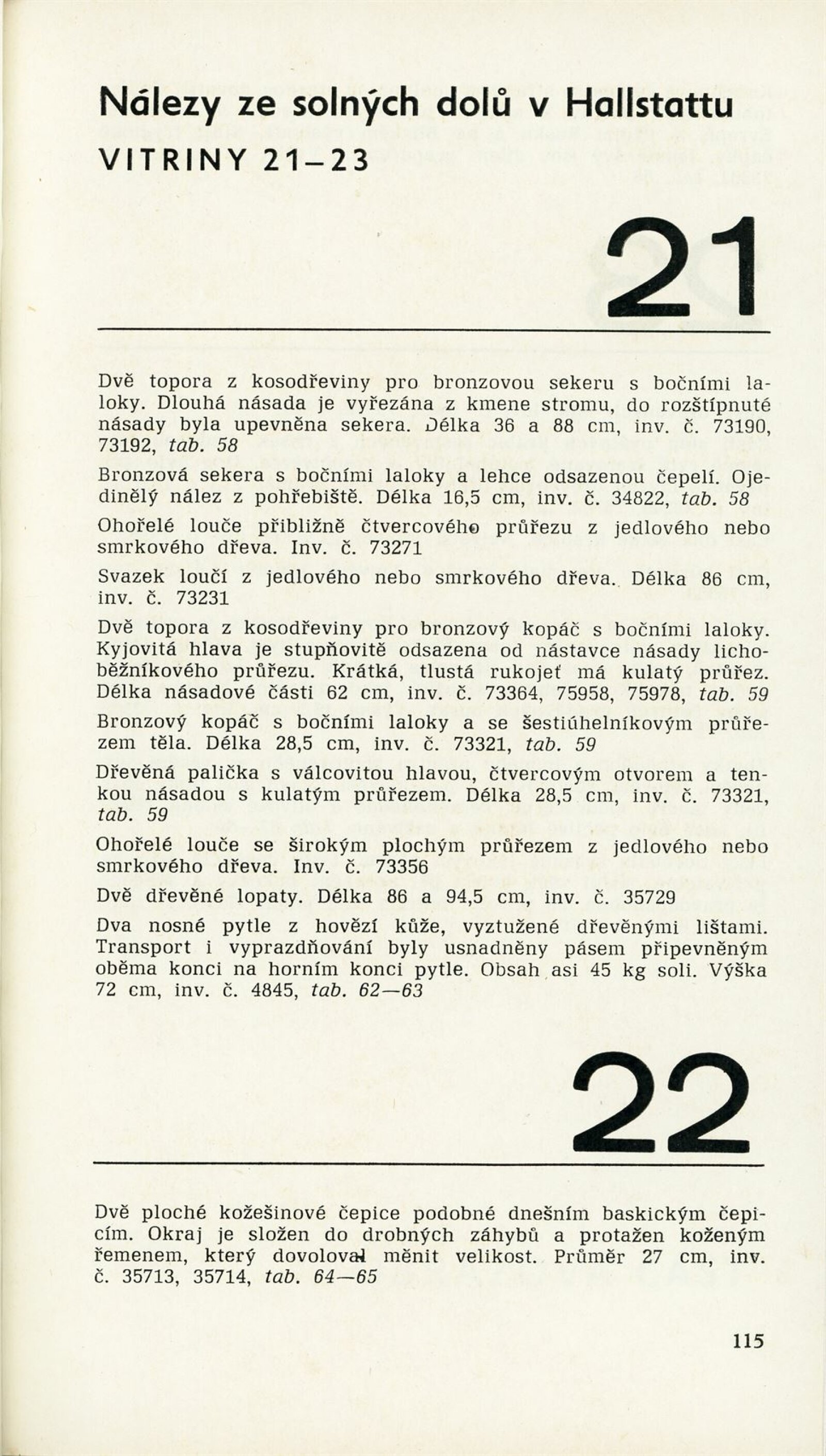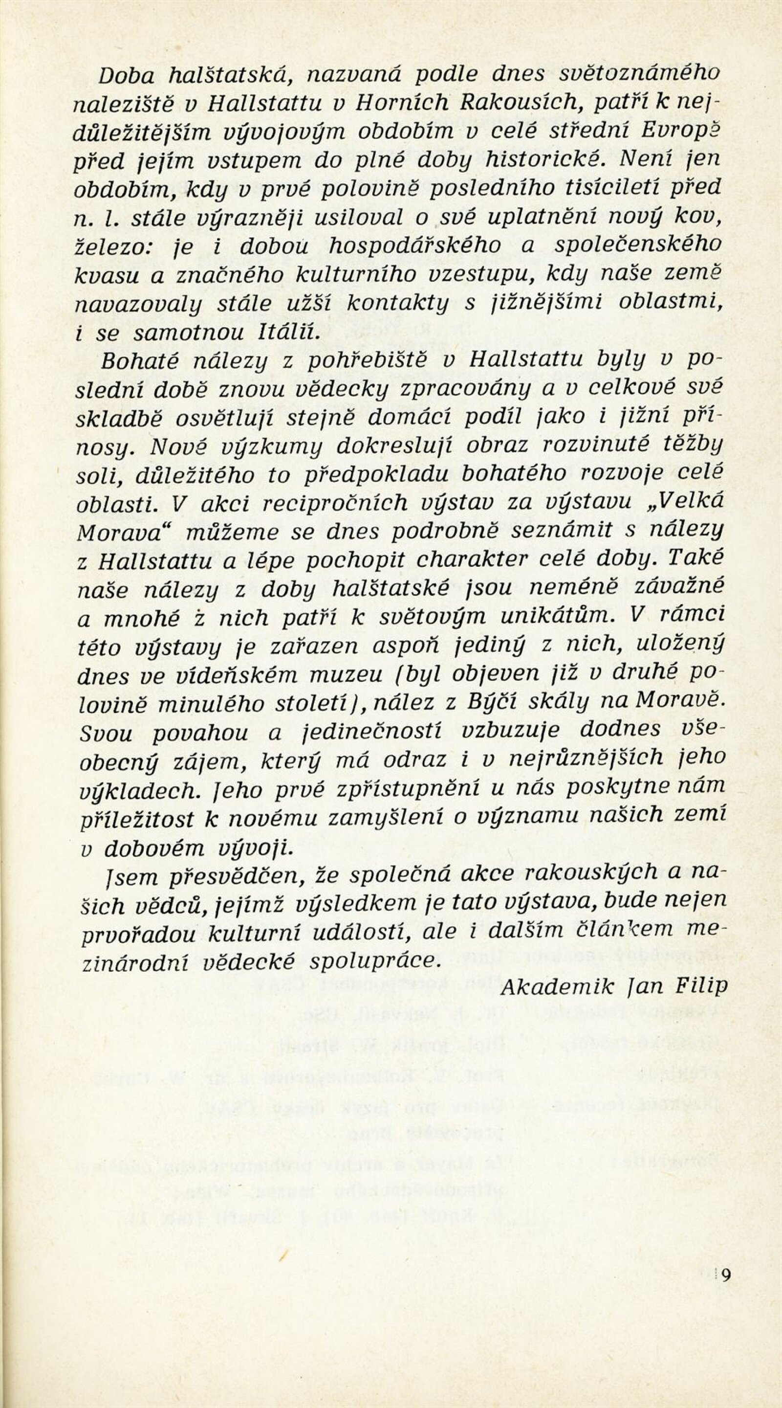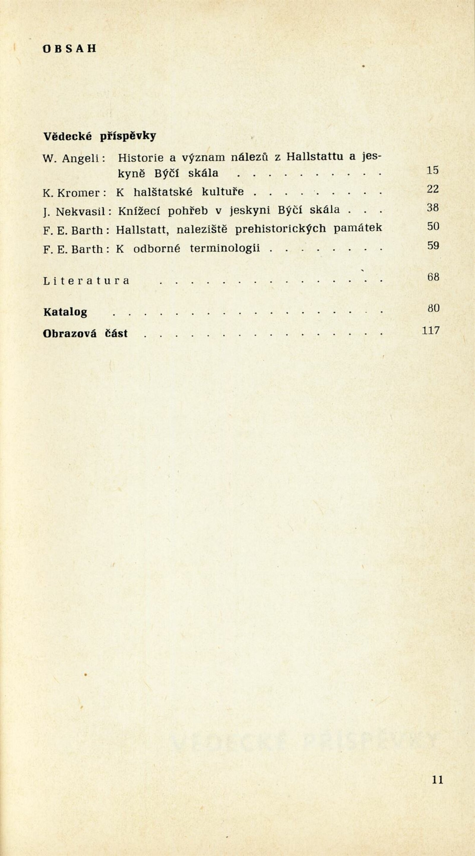 Hallstatt a Býčí skála. Průvodce výstavou významných nálezů z pravěkých sbírek vídeňského Přírodovědného muzea: Dům umění, 1. patro, hala, 28. 3. – 4. 5. 1969 / Texty: Jan Filip, W. Angel, Karl Kromer, Jindřich Nekvasil, F. E. Barth. – Brno: Archeologický ústav ČSAV, 1969. – 116 s., 72 s. obr. příl., bibliografie. – současně vyšel populární leták s textem Jindřicha Nekvasila. – 6 s., obr., DU 519. – MZK; MG