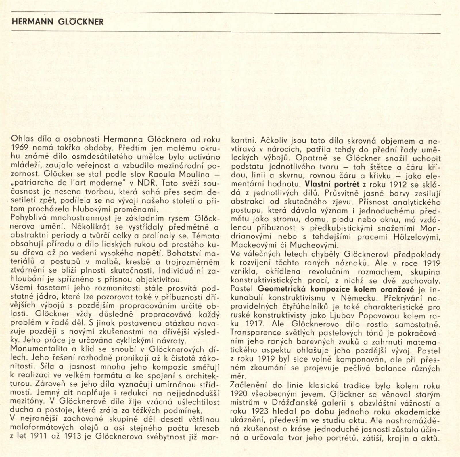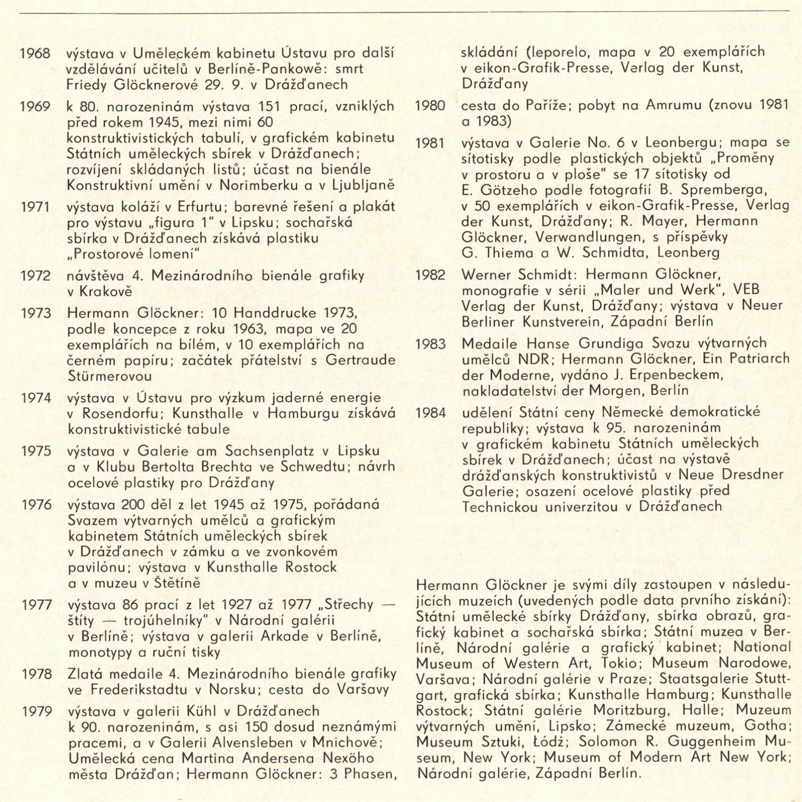 Herman Glöckner. Kresby a monotypy: Dům umění / Dům pánů z Kunštátu, Kabinet grafiky, 28. 5. – 23. 6. 1985 / Texty: Werner Schmidt, Jiří Valoch. – Brno: DUmB, 1985. – 24 s., obr., životopis, DPK 845. – MZK; MG