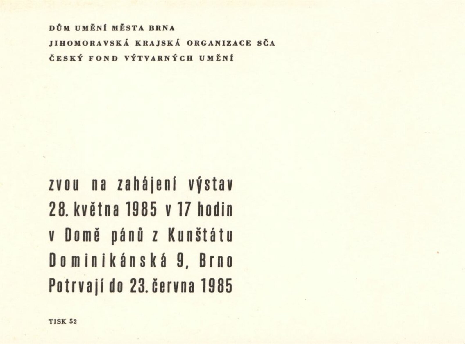 pozvánka, katalog, strojopis, seznam vystavených děl + pojistný seznam, žádost o registraci dovozu výstavy, smlouva DU a Galerie v Drážďanech, provozní korespondence (v ČJ a NJ), dopisy DU do drážďanské galerie 30. 3. 1984, žádost o povolení výstavy, recenze v tisku