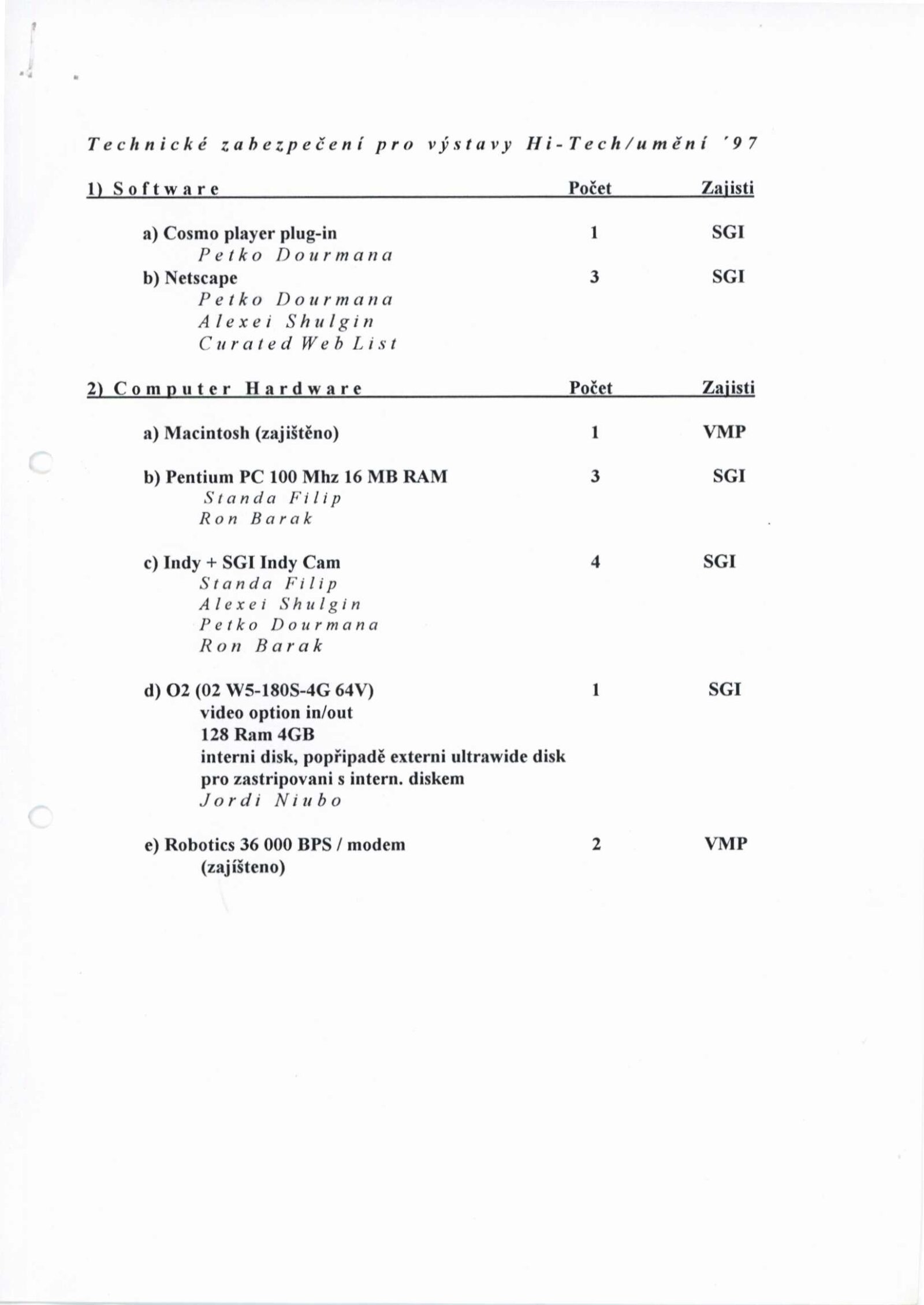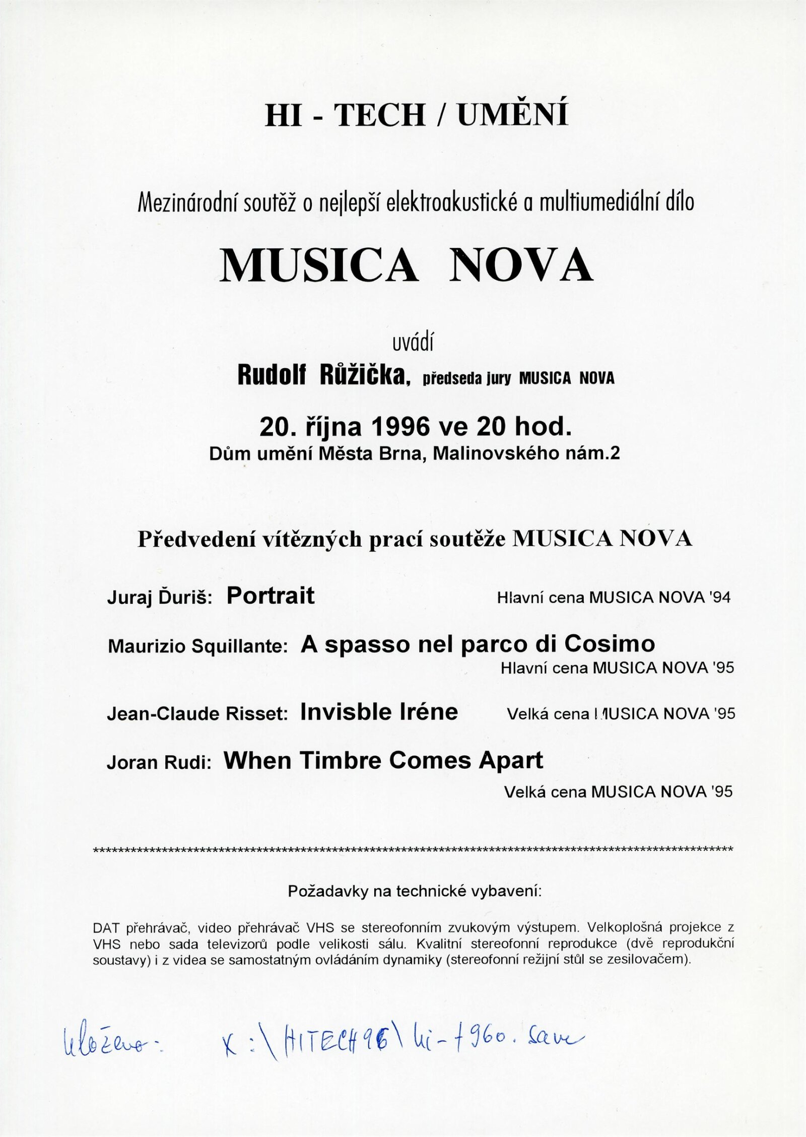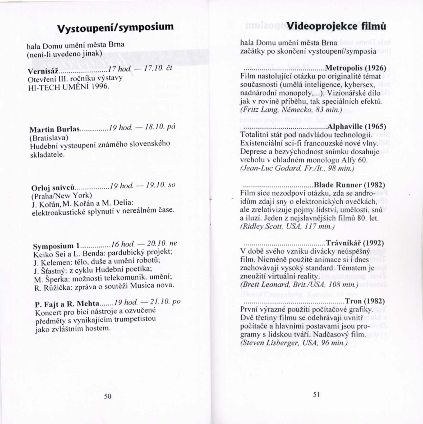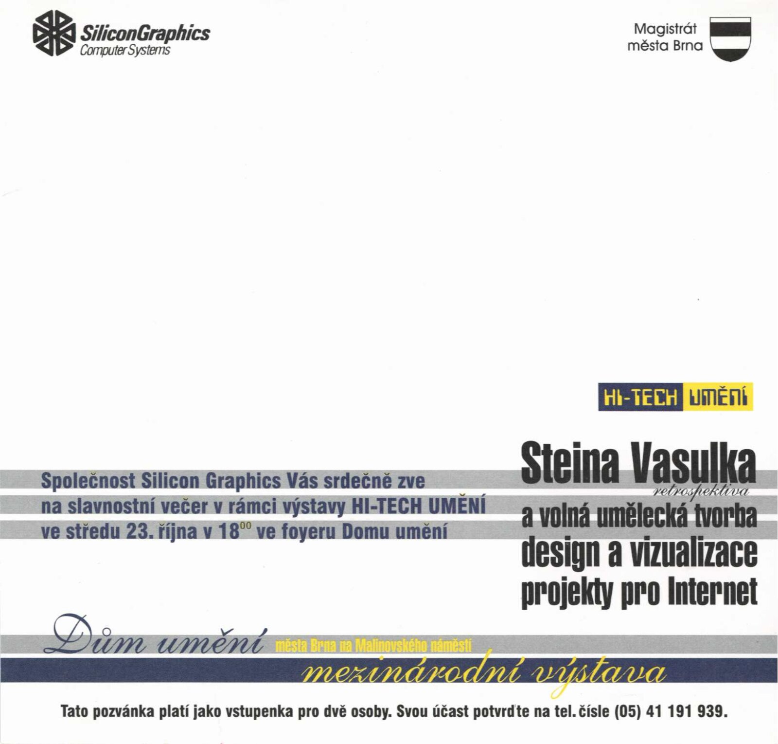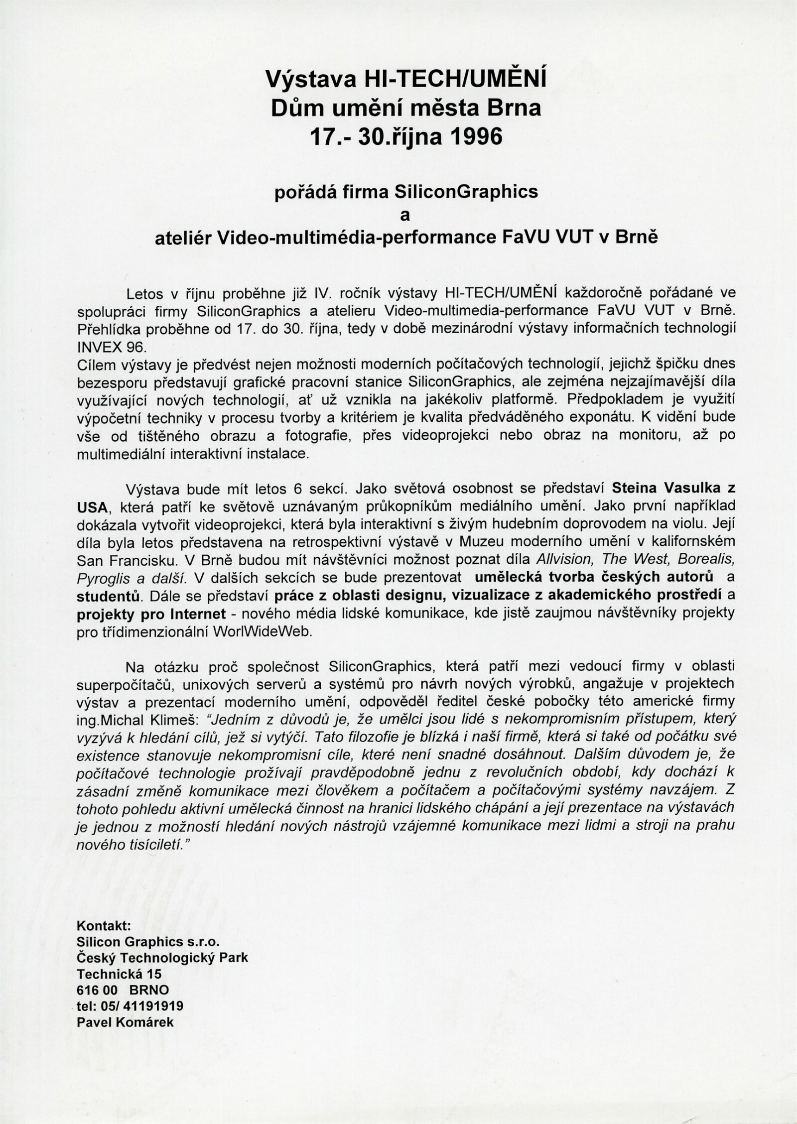 HI-TECH UMĚNÍ 1996: Dům umění města Brna, 17. – 27. 10. 1996 / Brno: Silicon Graphics, 1996. – 62 s., DU 1035