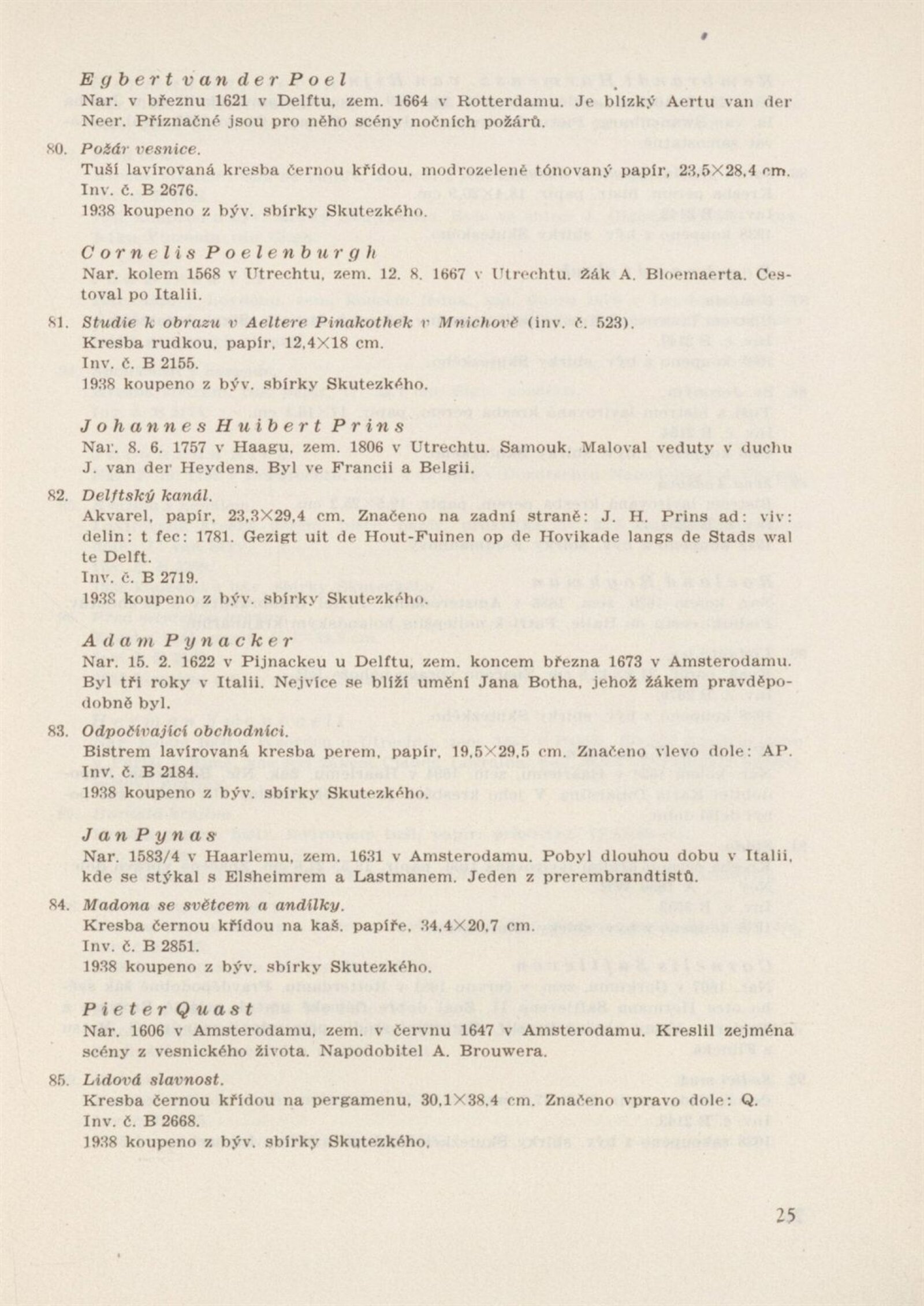 Holandská kresba 17. století: Obrazárna Moravského musea a Dům umění města Brna, 16. 12. 1954 – 19. 1. 1955 / Text: Karel Krejčí. – Brno: DUmB, 1954. – 29 s., obr., životní data vystavených autorů, DU 214. – MZK; MG; AMB