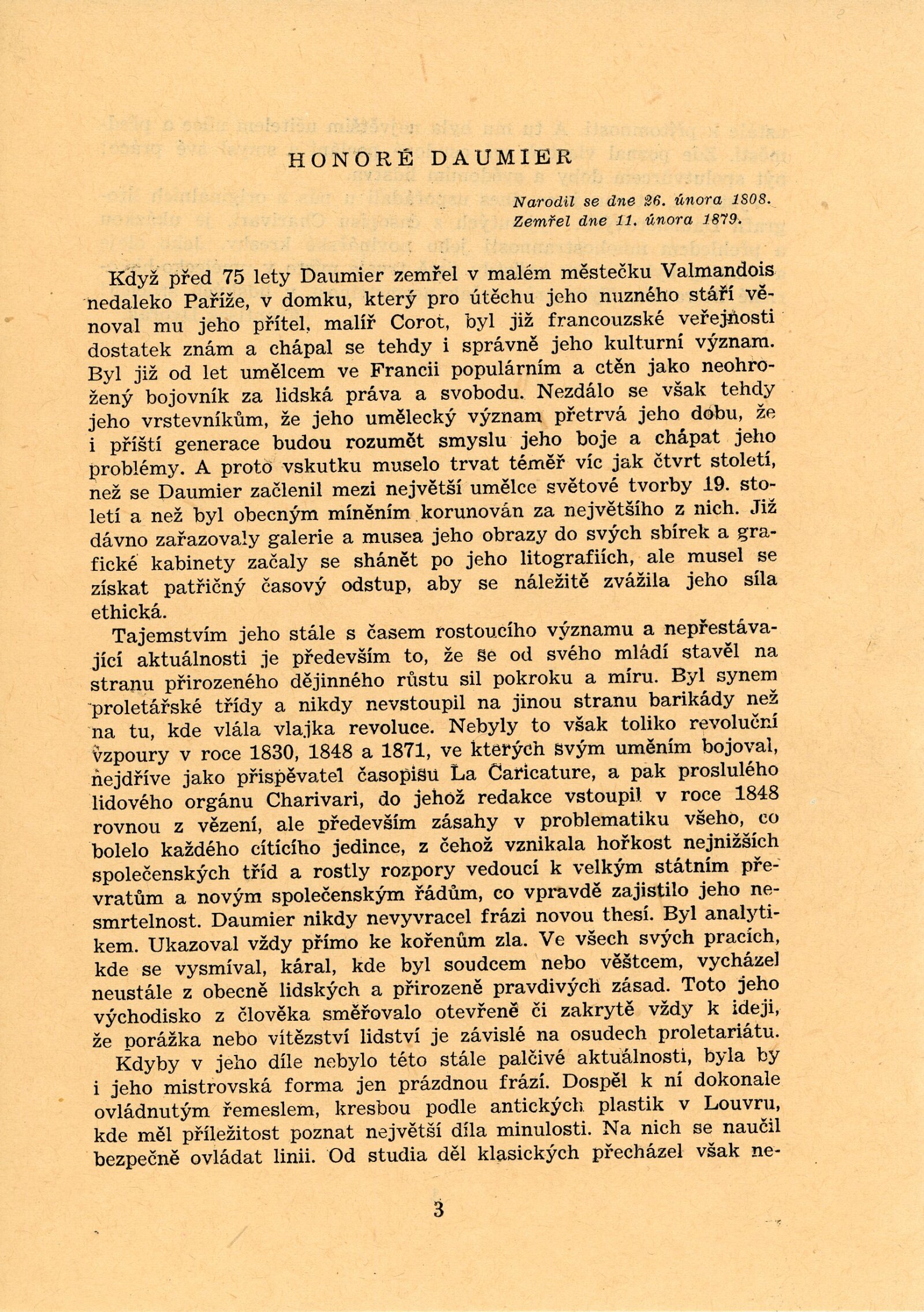 Honoré Daumier. Karikatury. Soubor původních litografií: Dům umění města Brna, 5. 9. – 3. 10. 1954 / Text: František Dvořák. – Brno: Dům umění v Brně, 1954. – 15 s., obr., DU 203. – MG