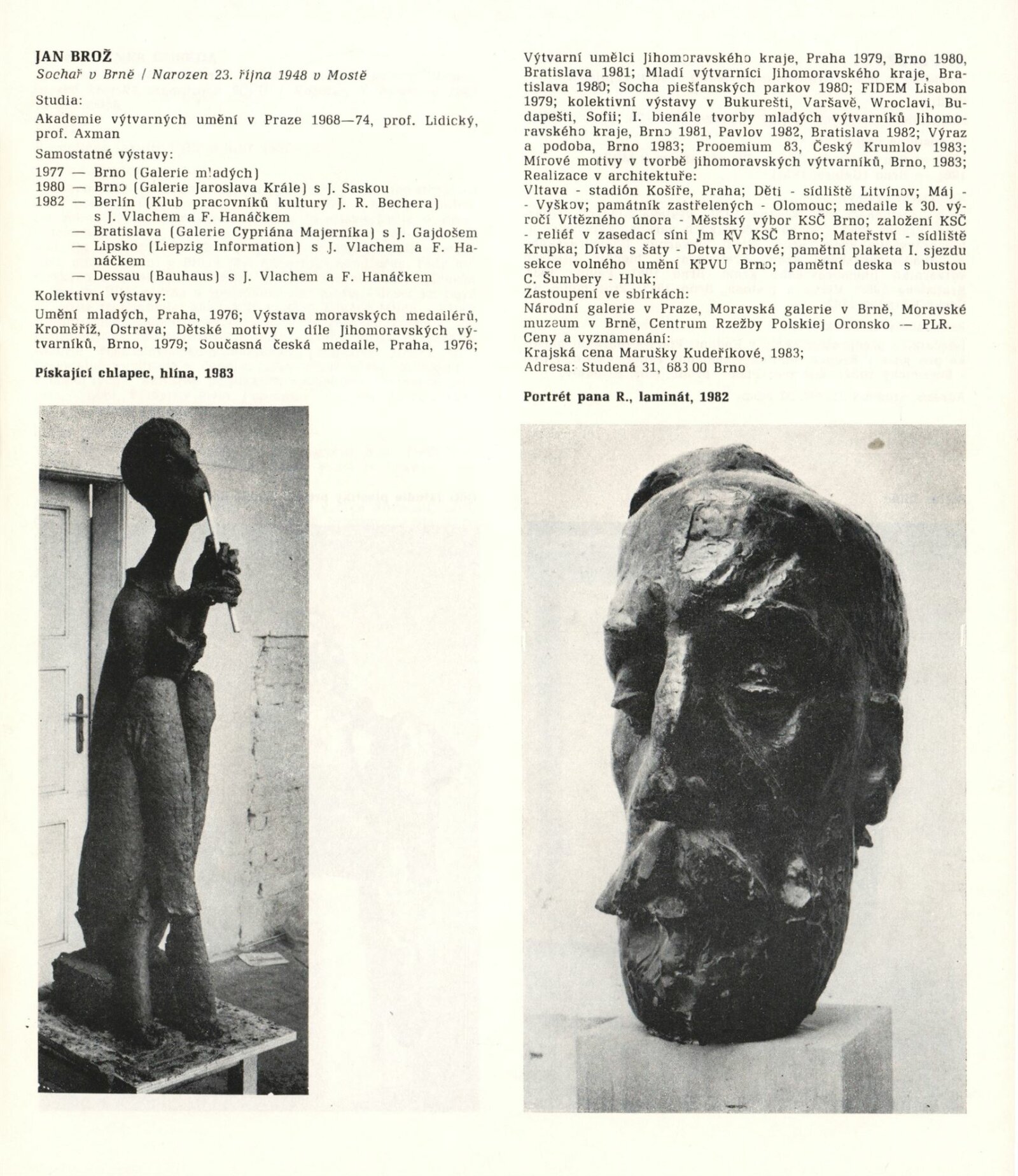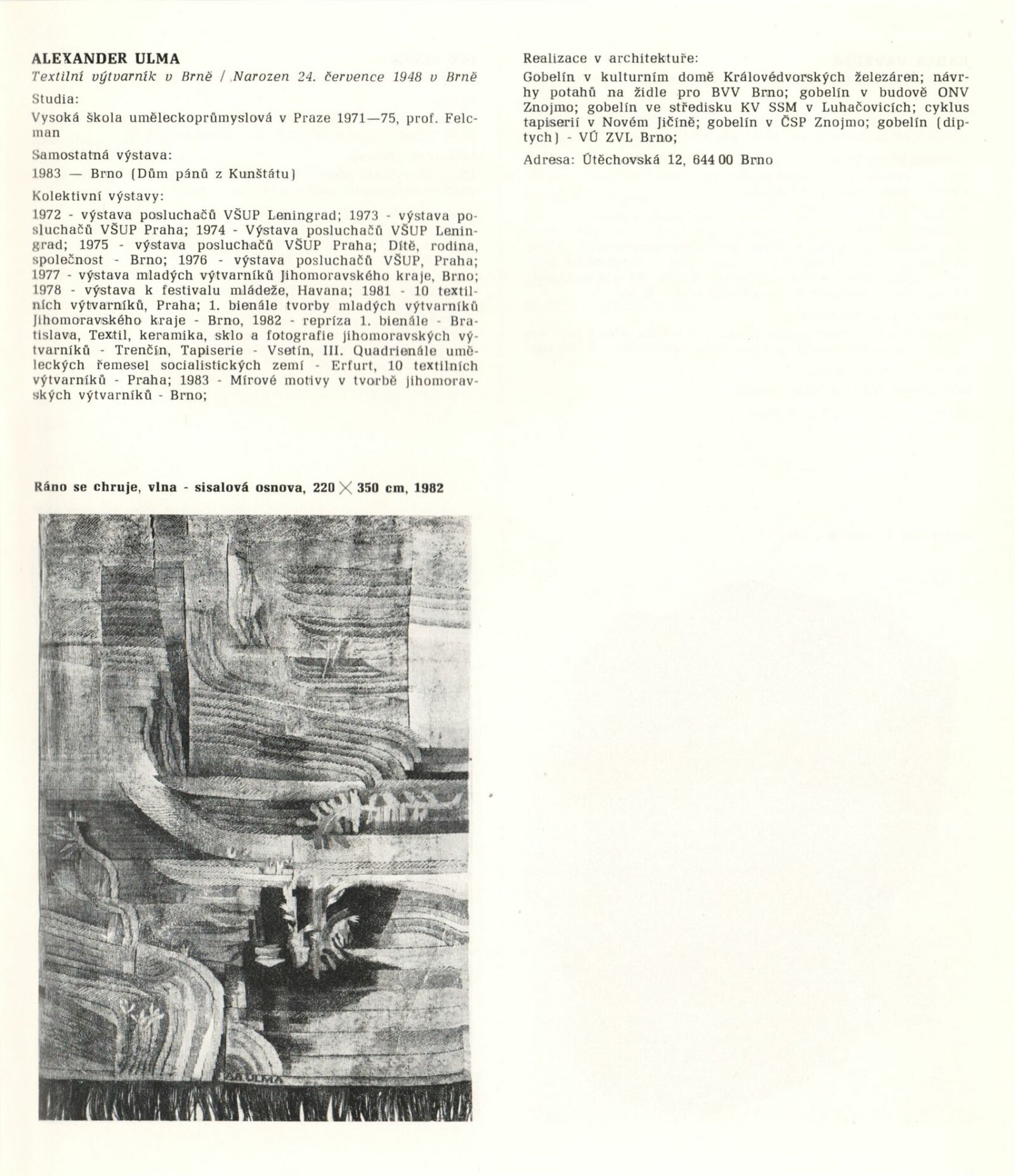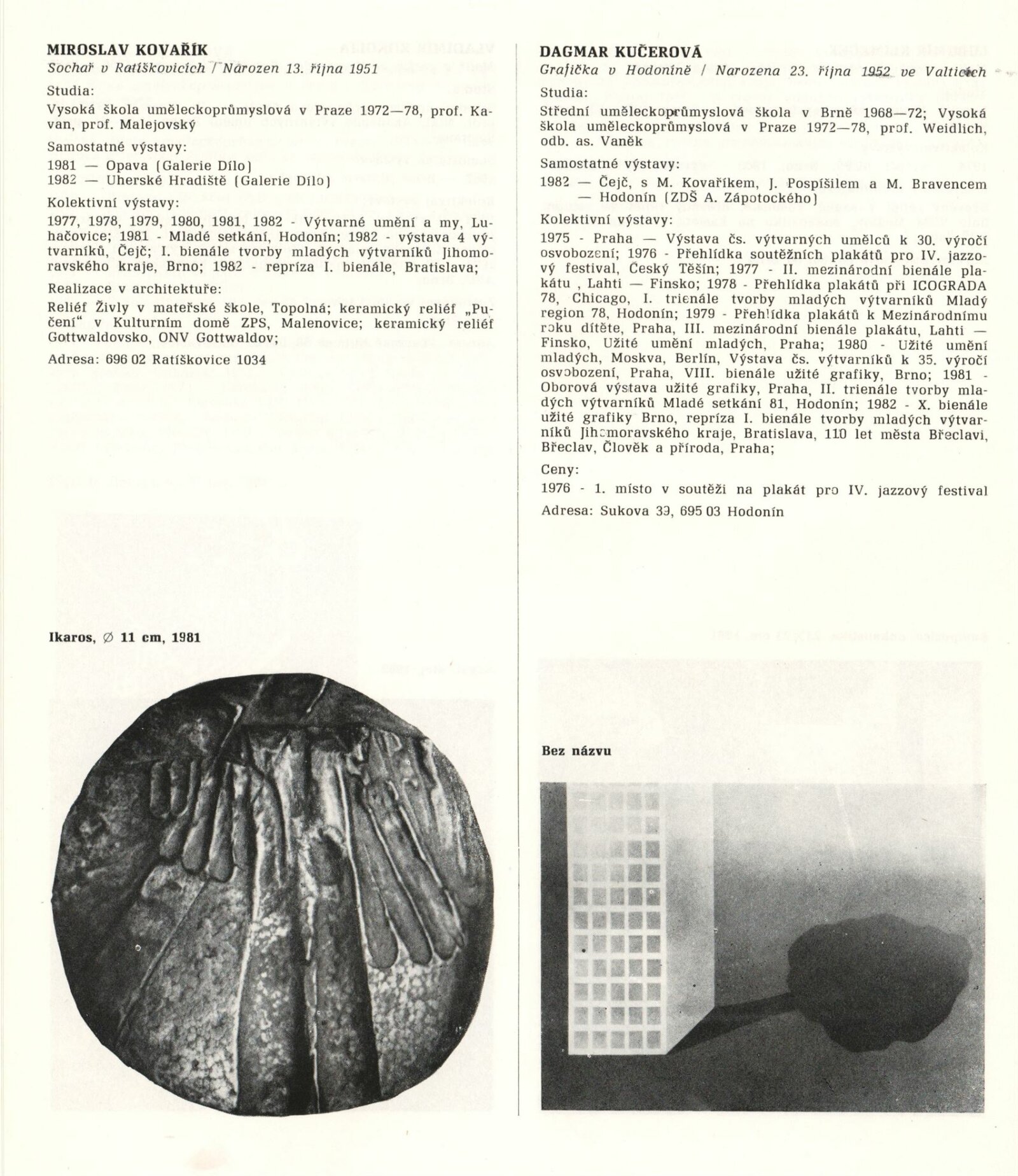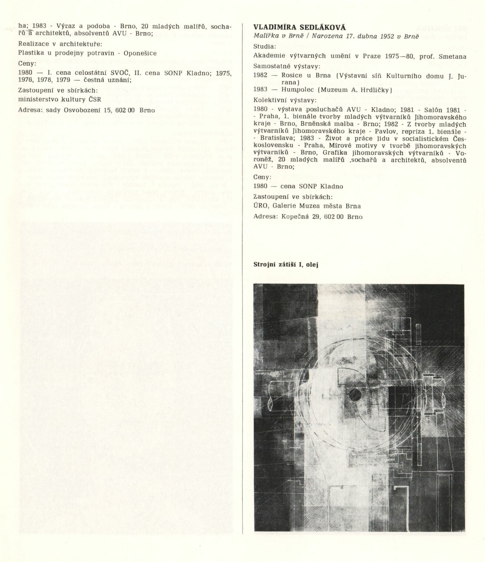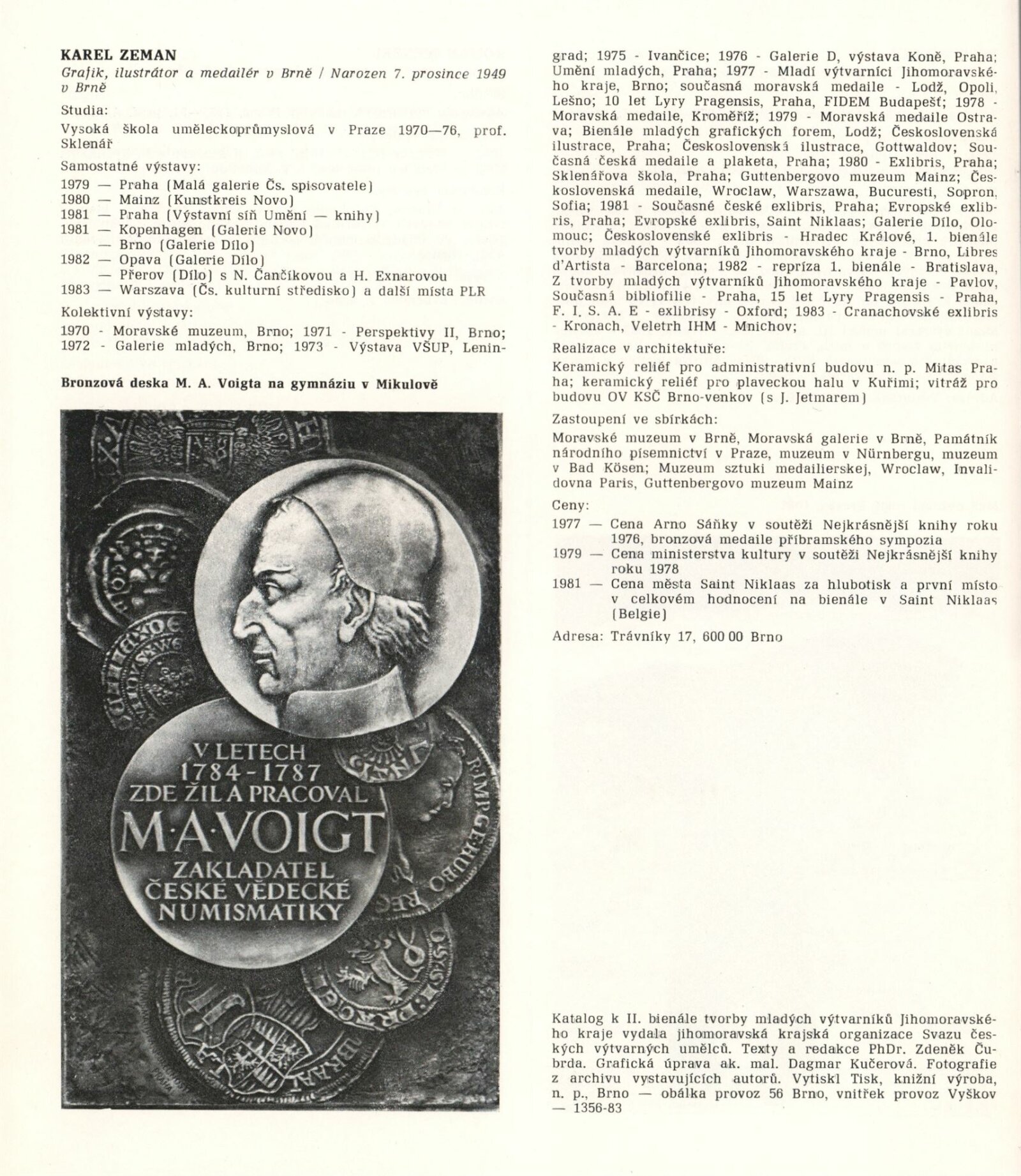 II. bienále tvorby mladých výtvarníků Jihomoravského kraje: Dům umění města Brna, 1. patro, 8. 7. – 7. 8. 1983 / Text: Zdeněk Čubrda. – Brno: SČVU, 1983. – 38 s., obr., životopisy vystavujících, DU 764. – MZK; MG
