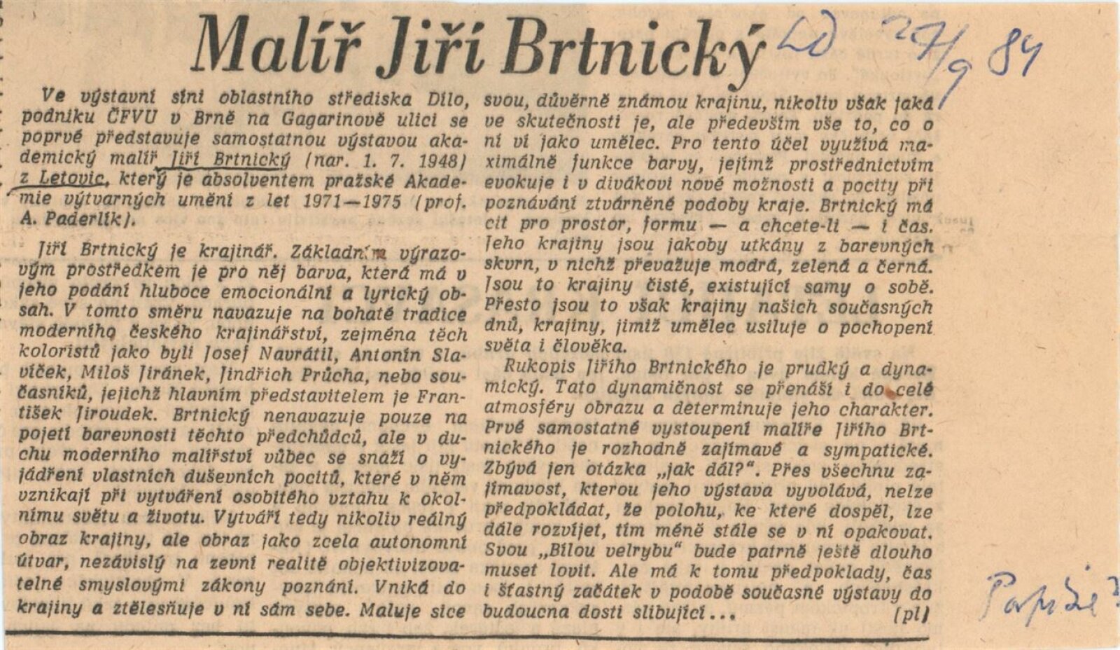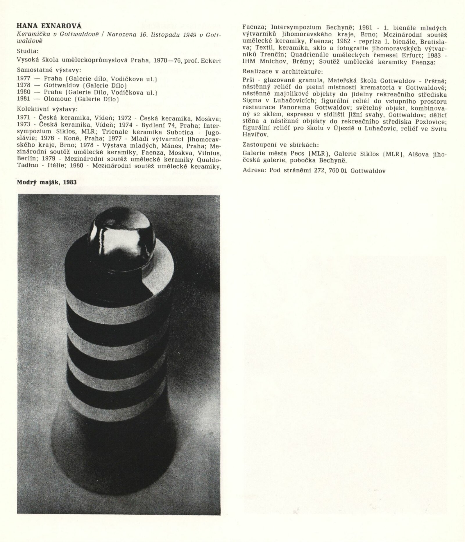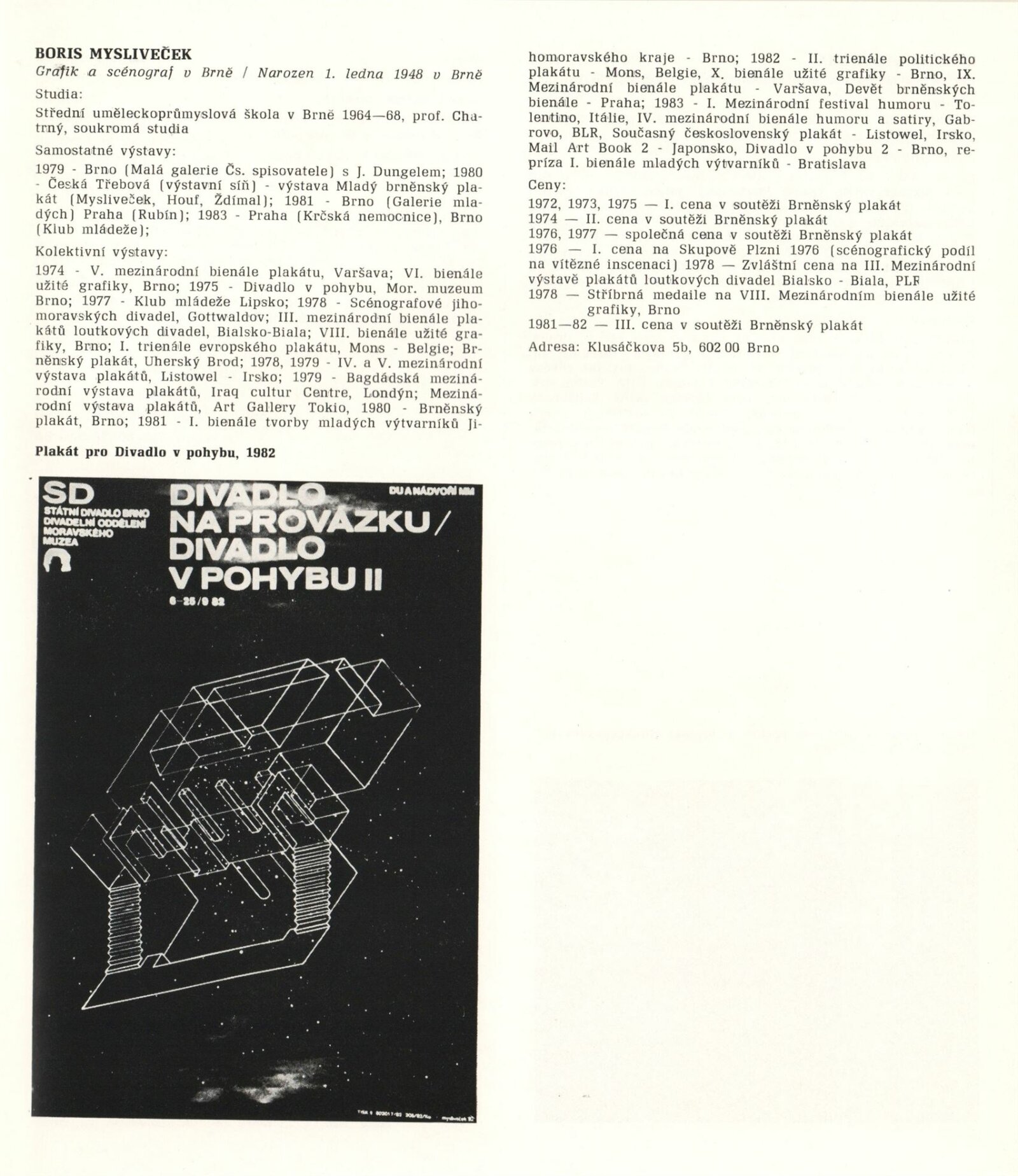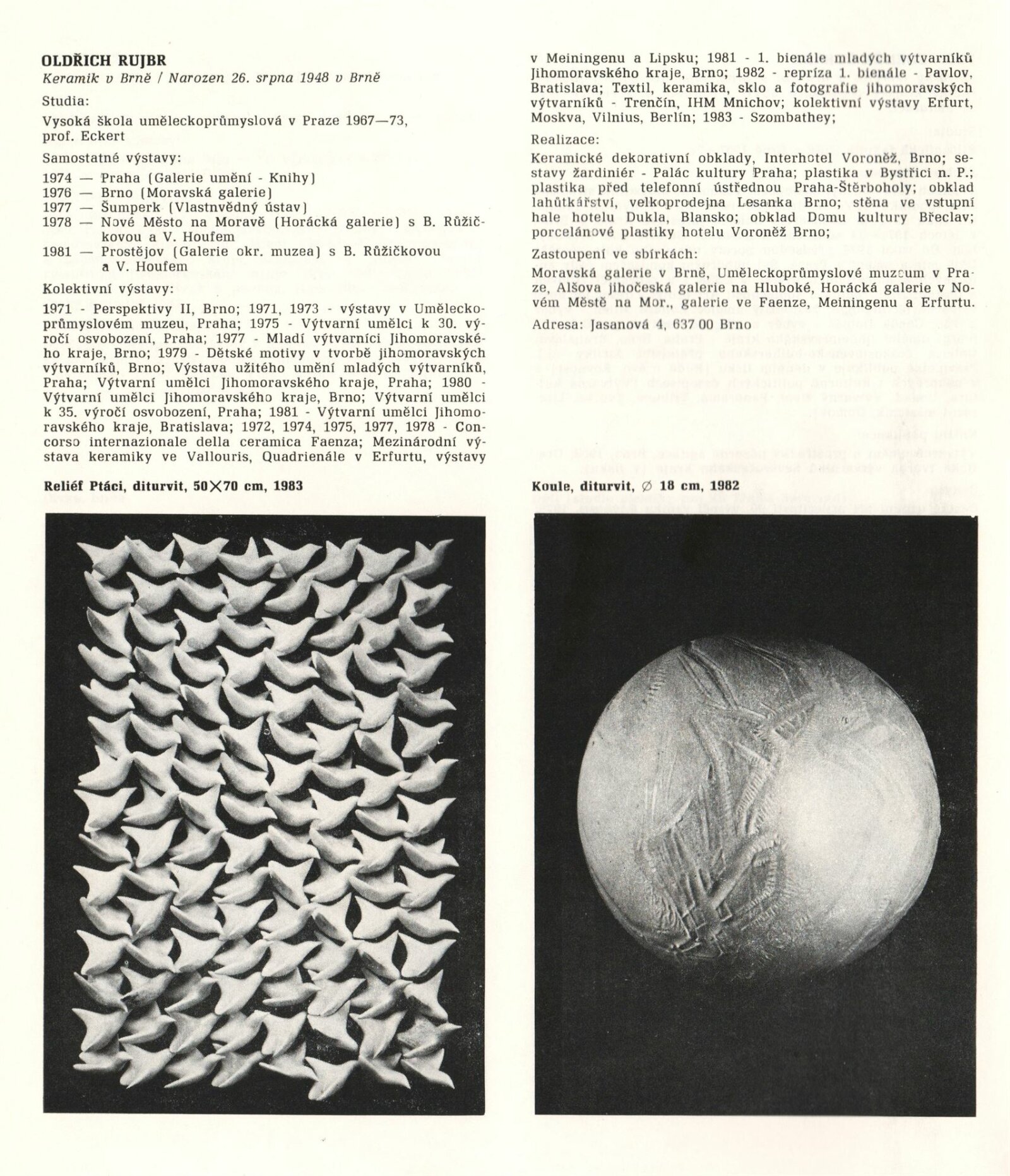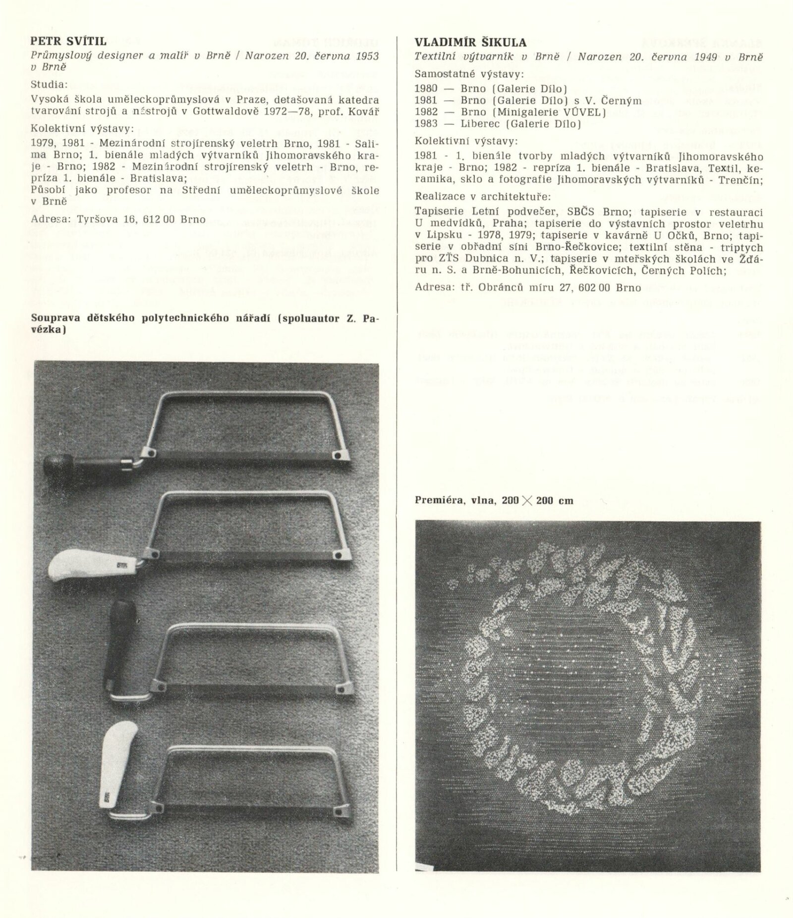 II. bienále tvorby mladých výtvarníků Jihomoravského kraje: Dům umění města Brna, 1. patro, 8. 7. – 7. 8. 1983 / Text: Zdeněk Čubrda. – Brno: SČVU, 1983. – 38 s., obr., životopisy vystavujících, DU 764. – MZK; MG