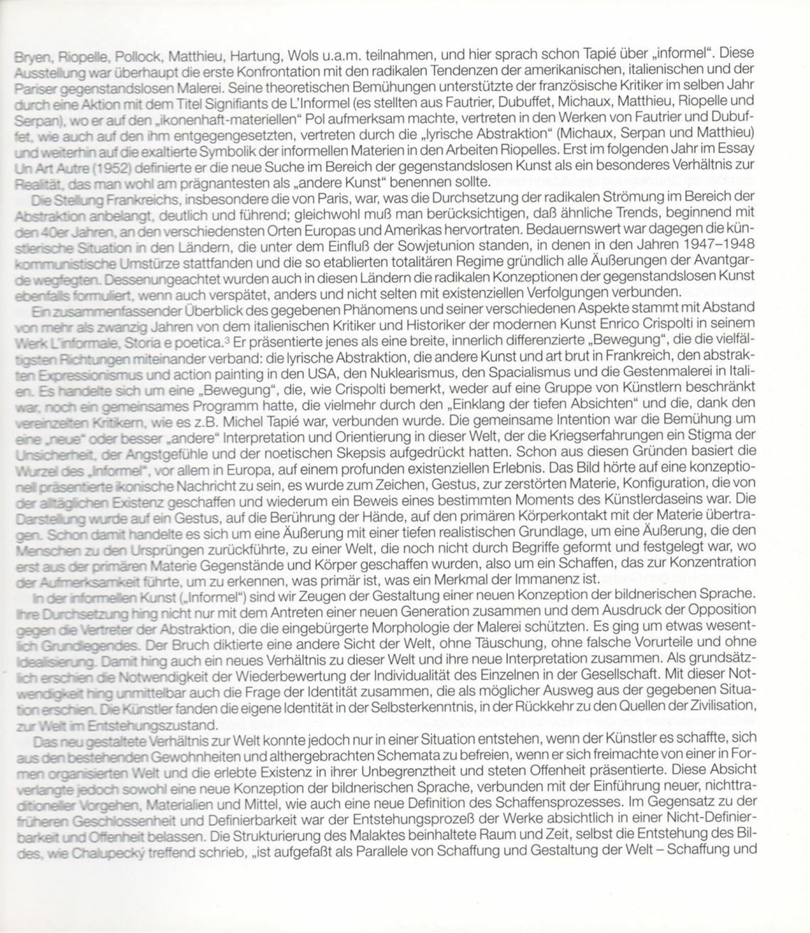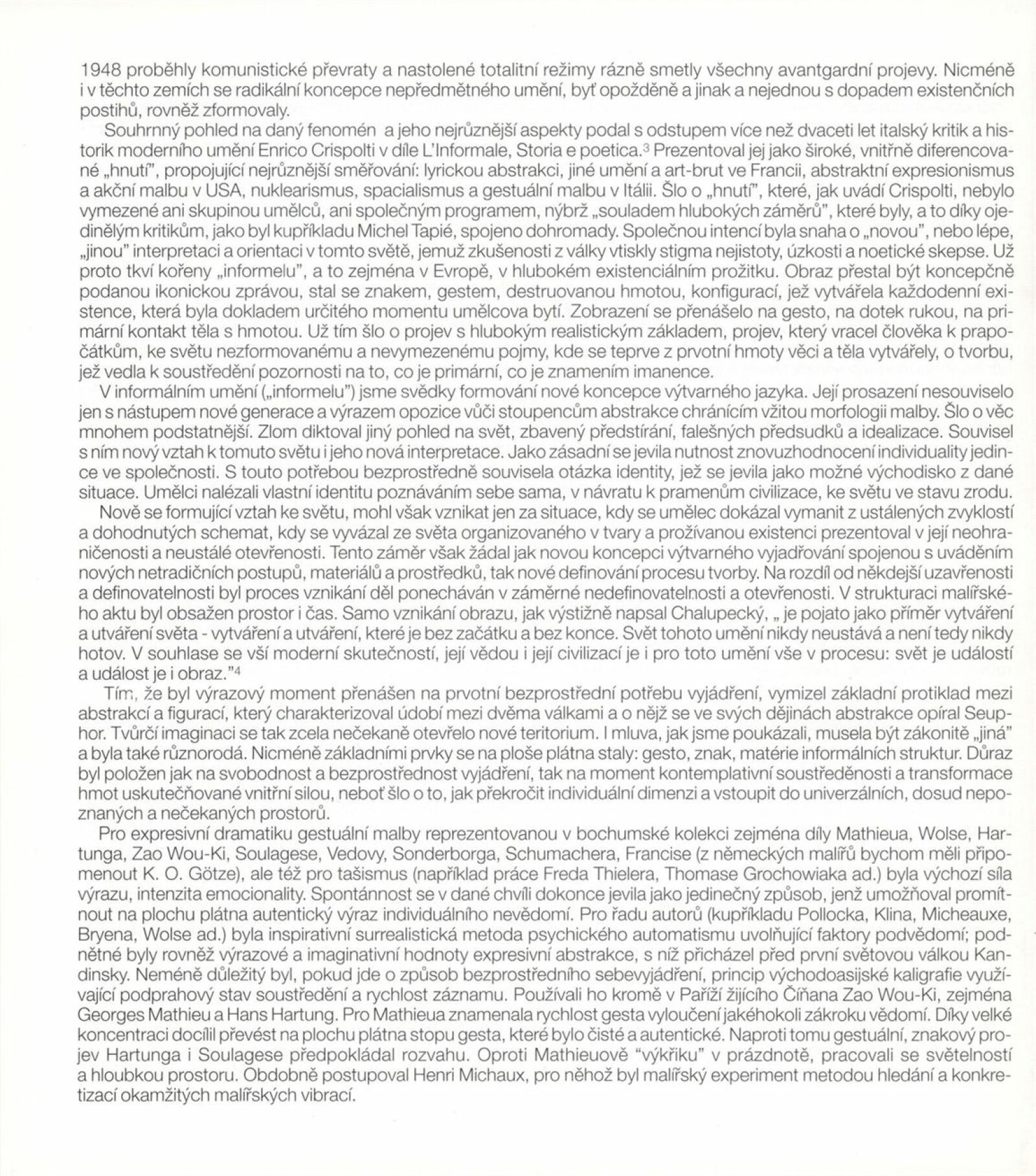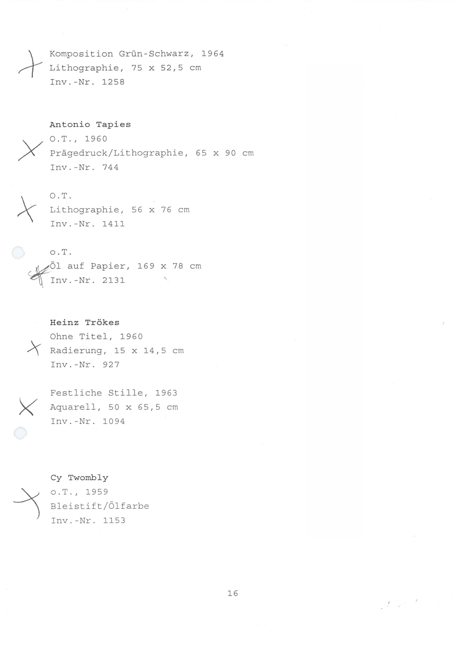 Carel Appel, Vladimír Boudník, Petr Brüning, Rolf Cavael, Constant (Nieuwenhuys), Corneille, Karl Fred Dahmen, Günter Drebusch, Jean Fautrier, Sam Francis, Johnny Friedländer, Thomas Grochowiak, Hans Hartung, Gerhard Hoehme, Asger Jorn, Horst Egon Kallinowski, Wassily Kandinsky, Yves Klein, Lucebert, Alfred Manessier, Georges Mathieu, Georg Meistermann, Ernst Wilhelm Nay, Otto Piene, Hans Platschek, Serge Poliakoff, Armin Sandig, Bernard Schultze, Emil Schumacher, Jaroslav Serpan, K. R. H. Sonderborg, Pierre Soulages, Kumi Sugai, Antonio Tapies, Heinz Trökes, Cy Twombly, Emilio Vedova, Bernd Völkle, Hans Werdehausen, Fritz Winter, Wolfgang Wols Schulze, Wou-Ki Zao