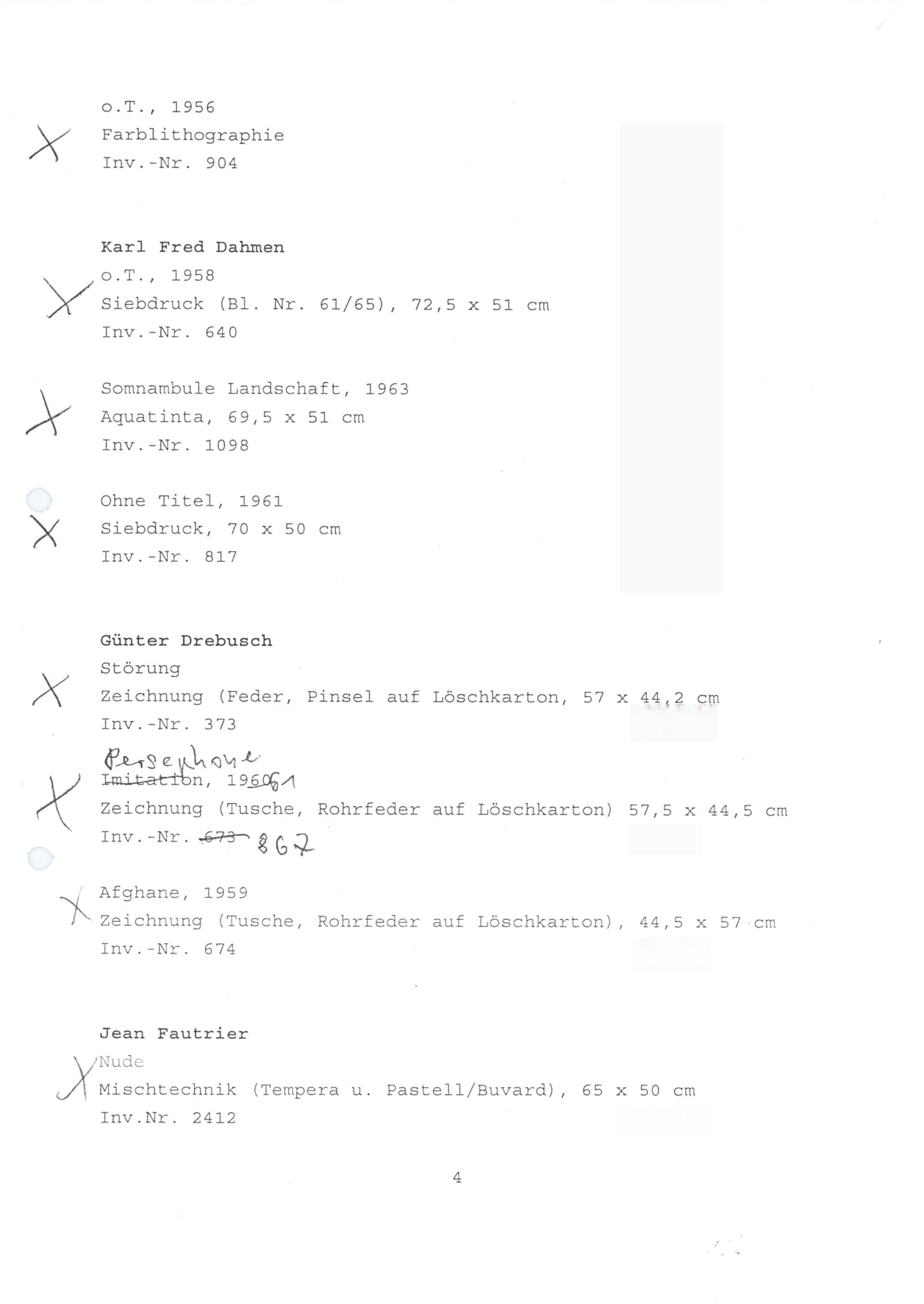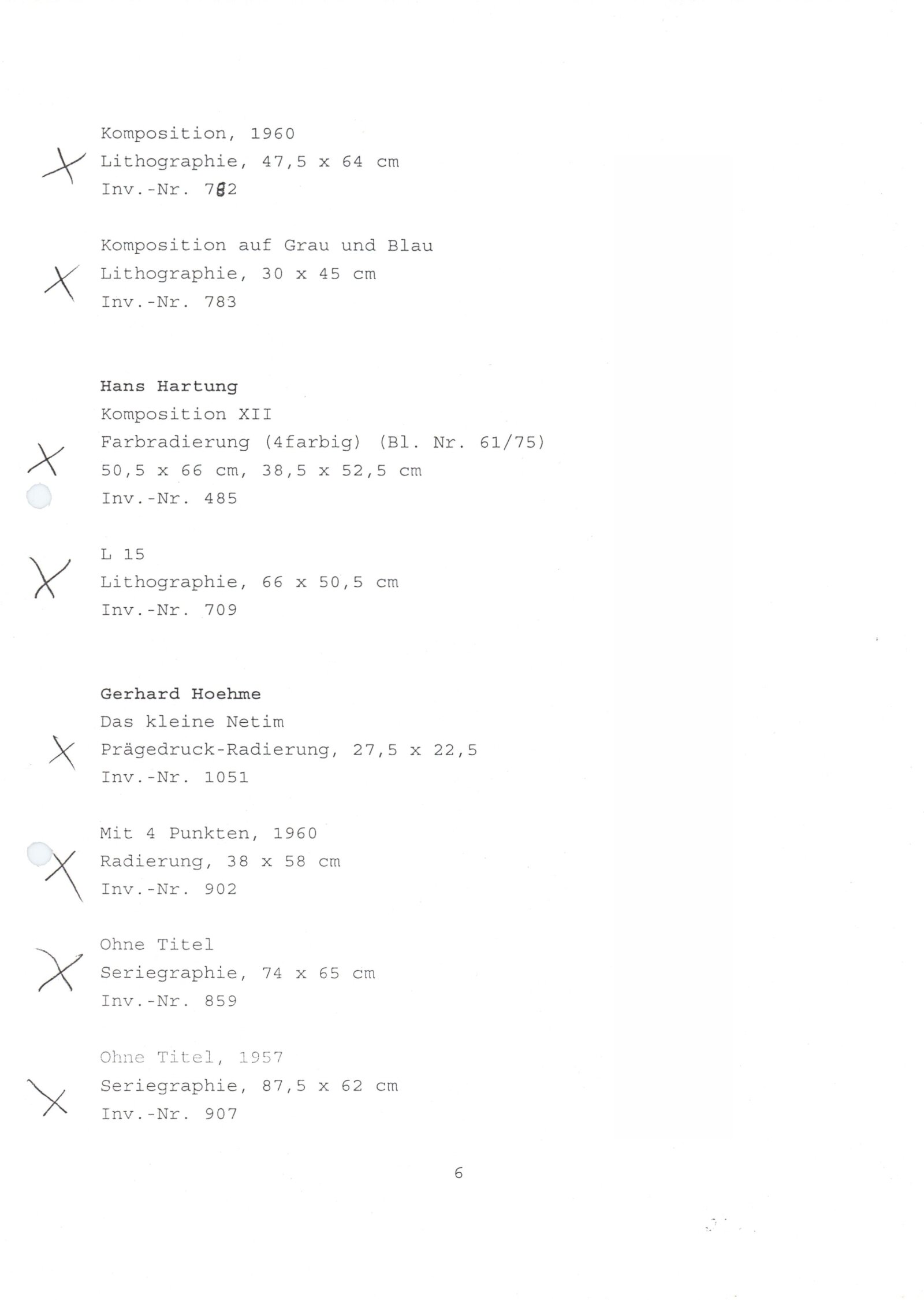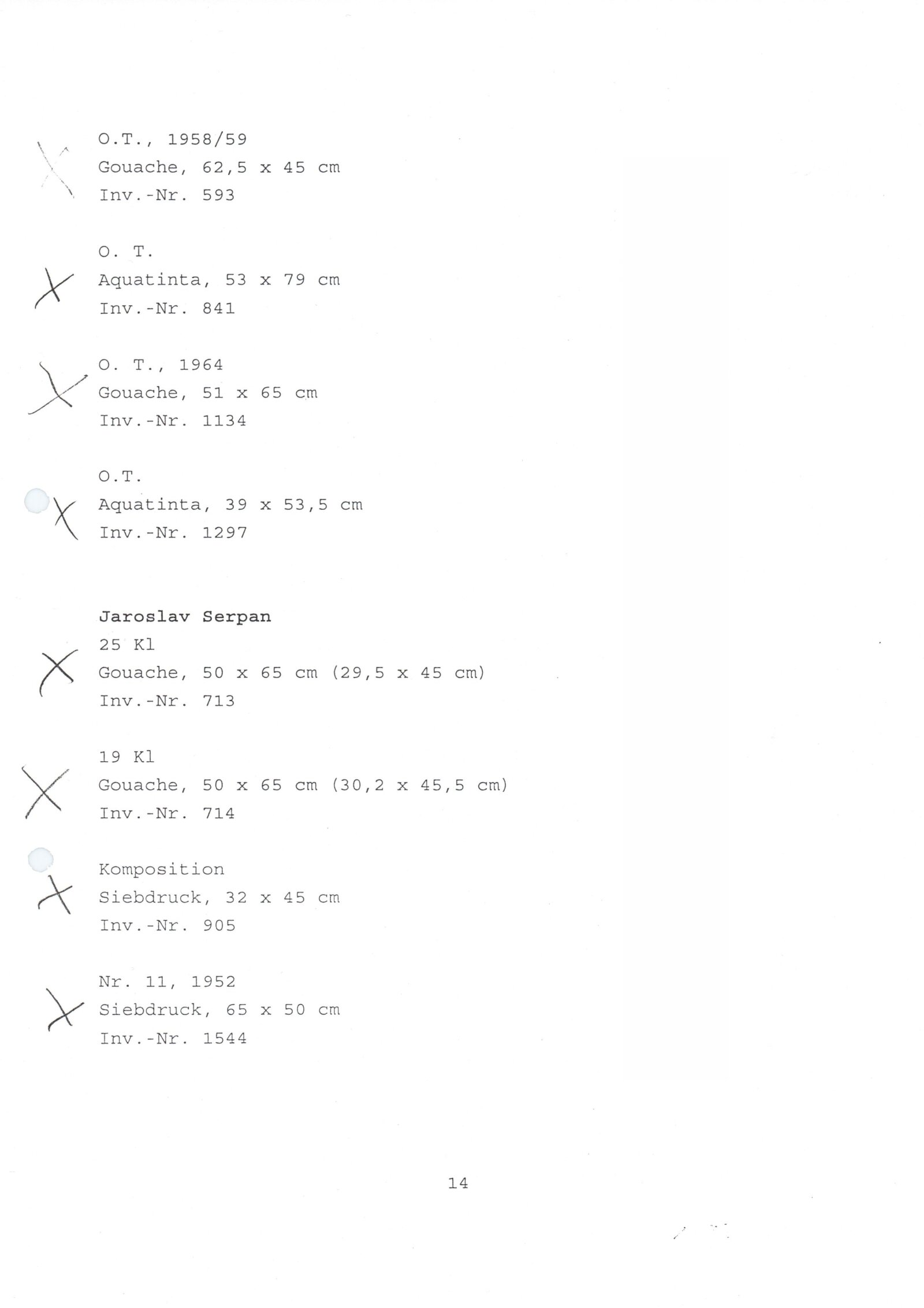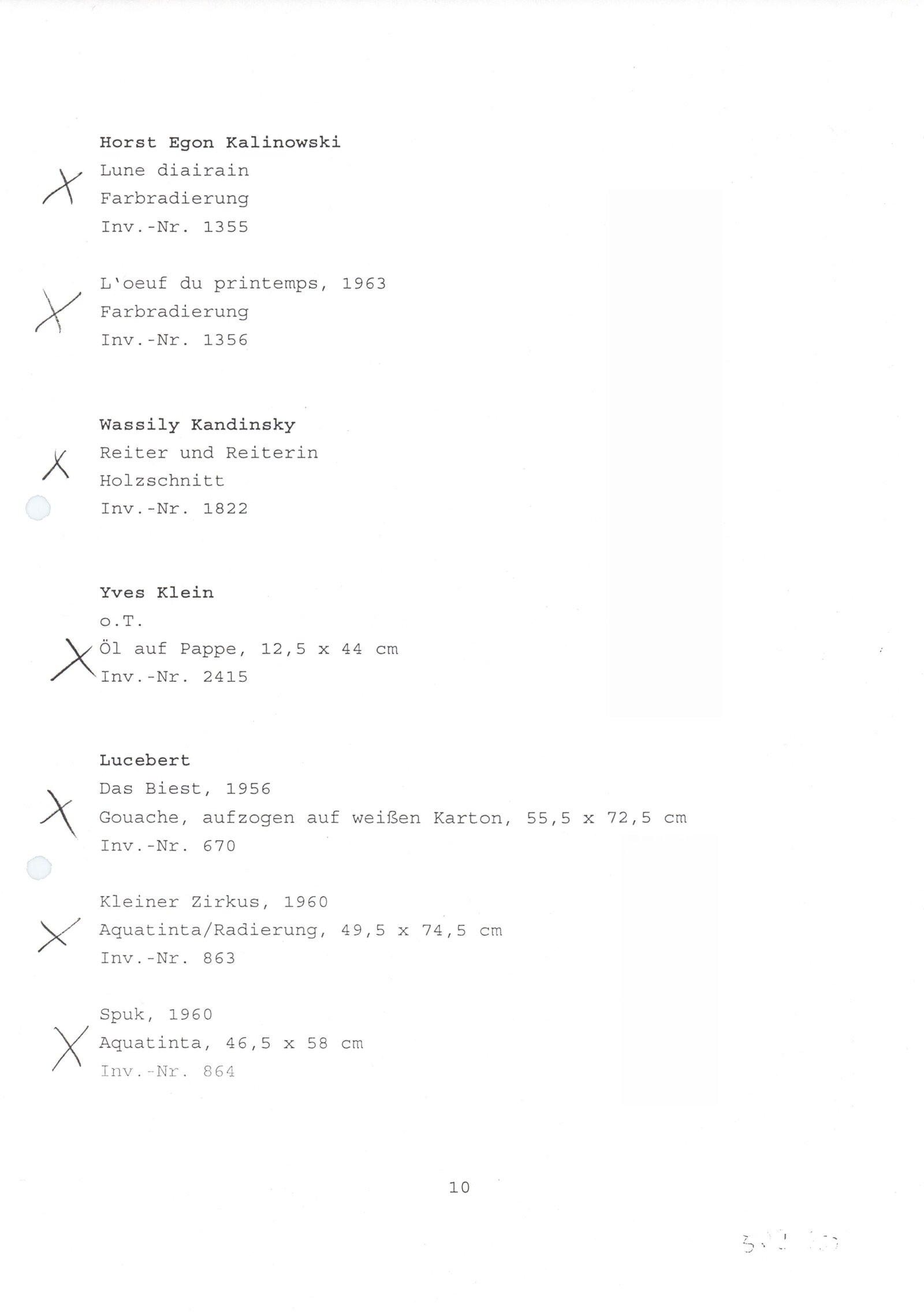 Carel Appel, Vladimír Boudník, Petr Brüning, Rolf Cavael, Constant (Nieuwenhuys), Corneille, Karl Fred Dahmen, Günter Drebusch, Jean Fautrier, Sam Francis, Johnny Friedländer, Thomas Grochowiak, Hans Hartung, Gerhard Hoehme, Asger Jorn, Horst Egon Kallinowski, Wassily Kandinsky, Yves Klein, Lucebert, Alfred Manessier, Georges Mathieu, Georg Meistermann, Ernst Wilhelm Nay, Otto Piene, Hans Platschek, Serge Poliakoff, Armin Sandig, Bernard Schultze, Emil Schumacher, Jaroslav Serpan, K. R. H. Sonderborg, Pierre Soulages, Kumi Sugai, Antonio Tapies, Heinz Trökes, Cy Twombly, Emilio Vedova, Bernd Völkle, Hans Werdehausen, Fritz Winter, Wolfgang Wols Schulze, Wou-Ki Zao