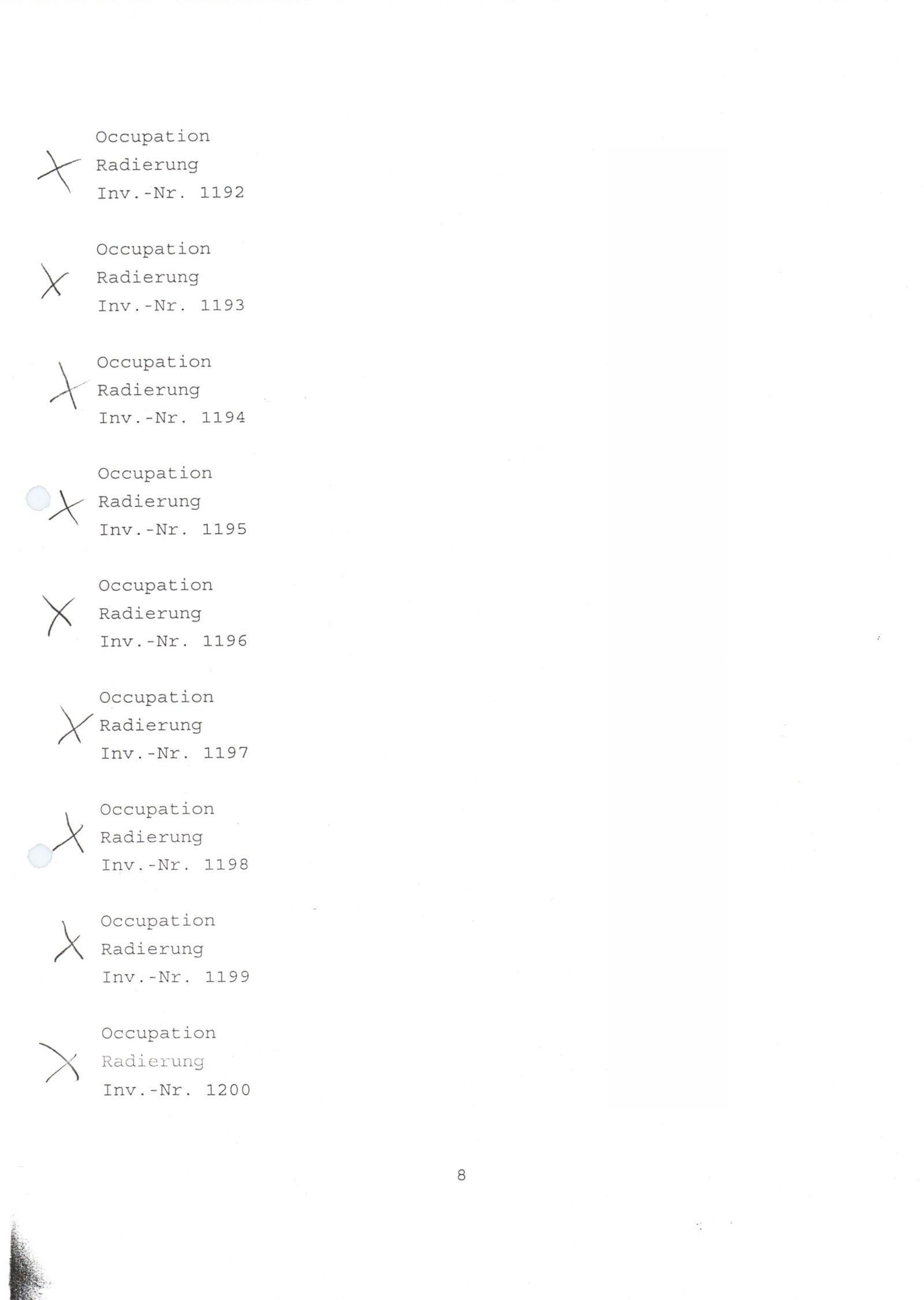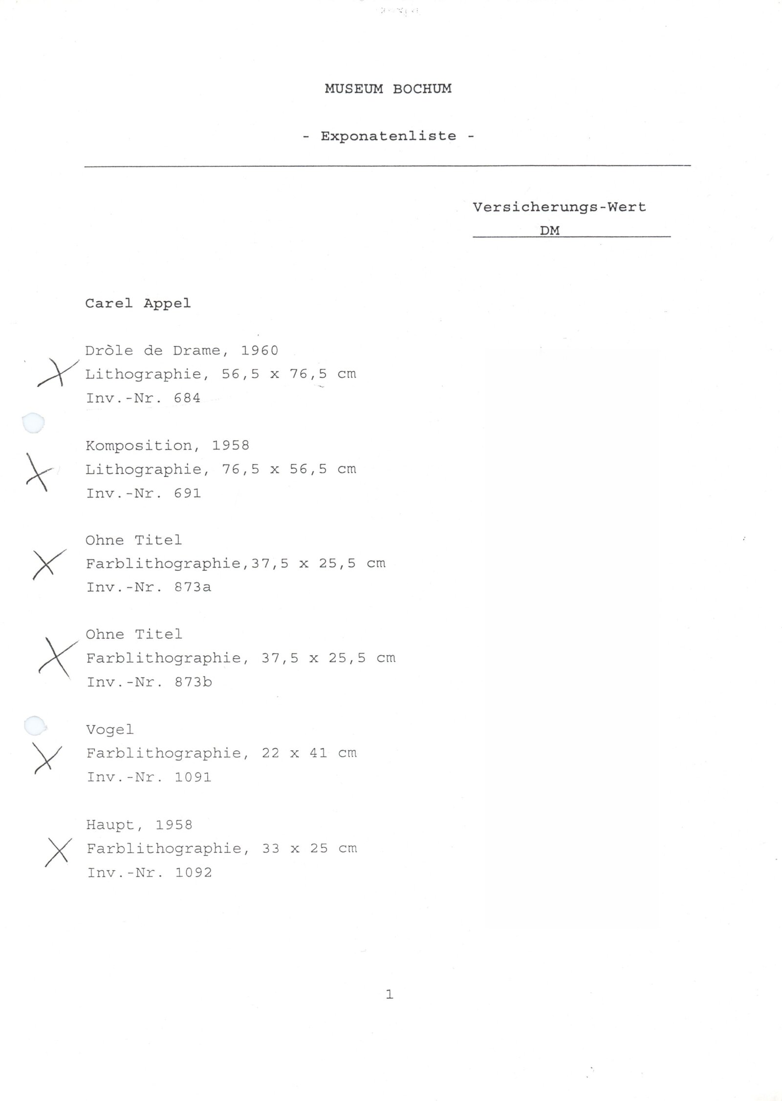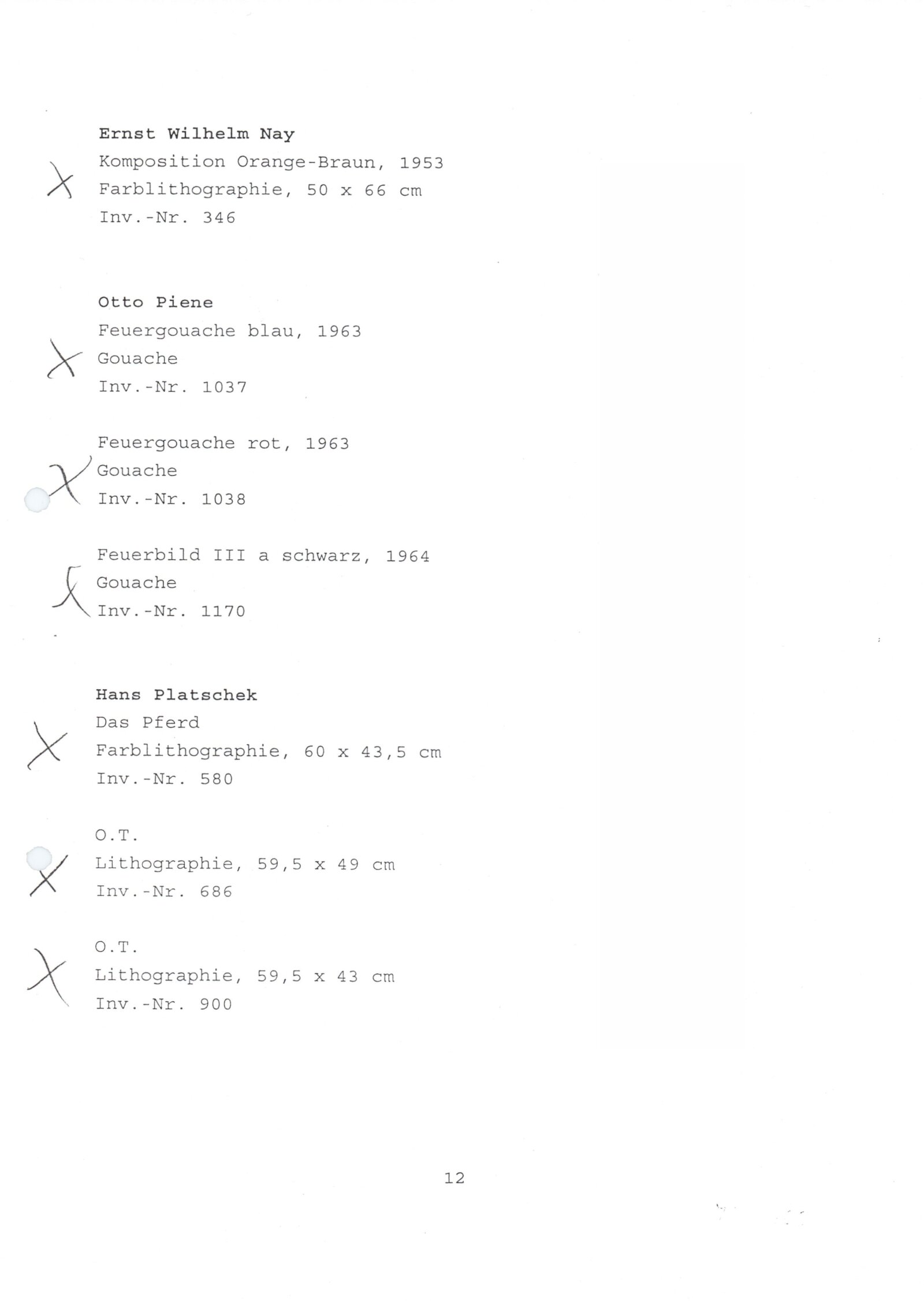 pozvánka, katalog, podklady pro katalog, fotografie vernisáže, seznamy vystavených děl, pojistné seznamy, provozní a institucionální korespondence, korespondence o realizaci výstavy, faktury, smlouvy Bochum, Cheb a DU, podmínky podpory IFA výstavám v zahraničí, věnované současnému německému umění, recenze v tisku, poznámky