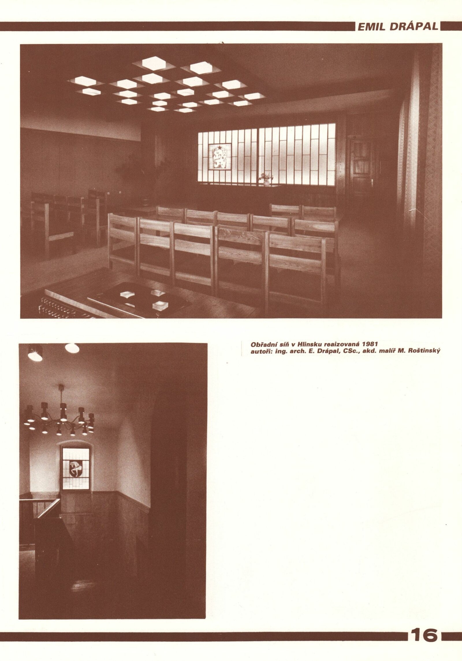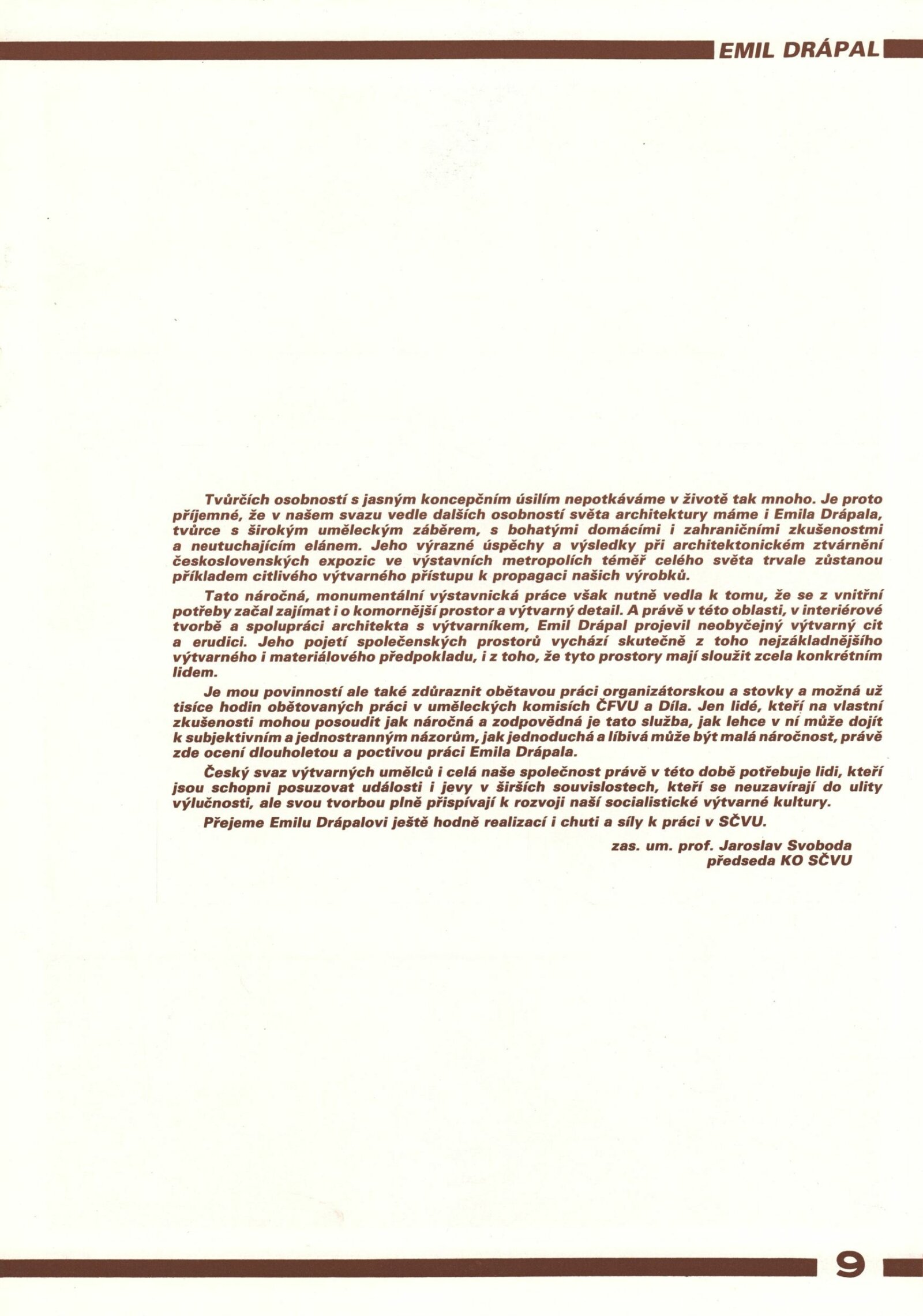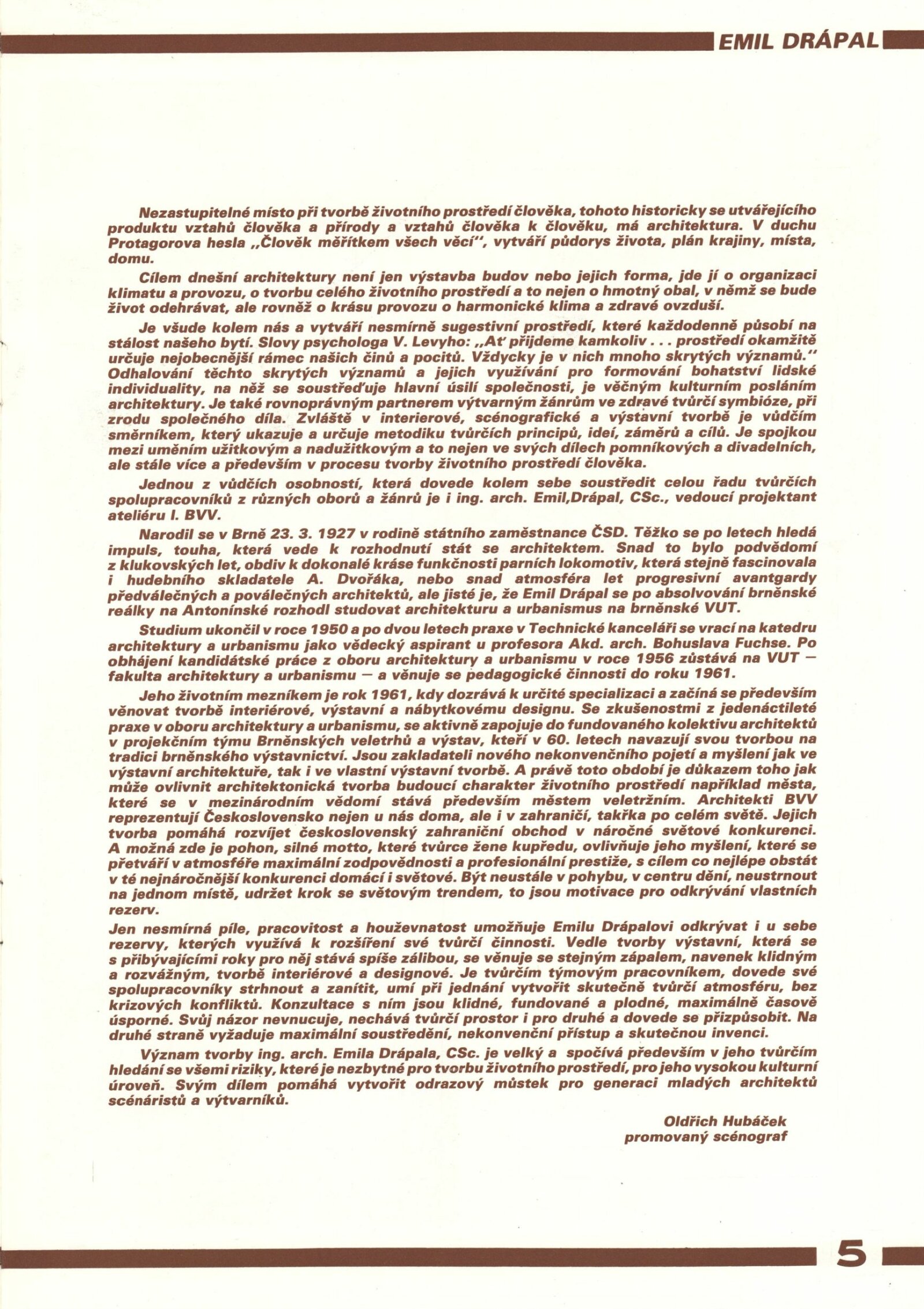 Ing. arch. Emil Drápal, CSc: Galerie Stará radnice, Kabinet architektury, 27. 4. – 29. 5. 1988 / Texty: Vladimír Meduna, Oldřich Hubáček, Jiří Pernes, Jaroslav Svoboda. – Brno: Svaz českých architektů, [1988.] – 24 s., obr., životopis, GSR 24