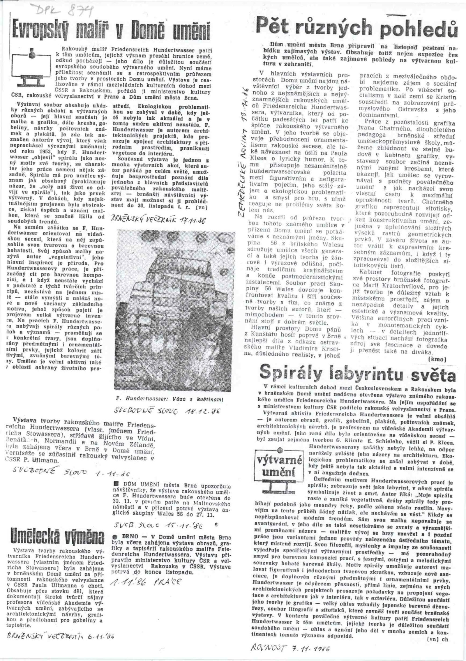 pozvánka, katalog, strojopis, žádost o povolení výstavy, recenze v tisku