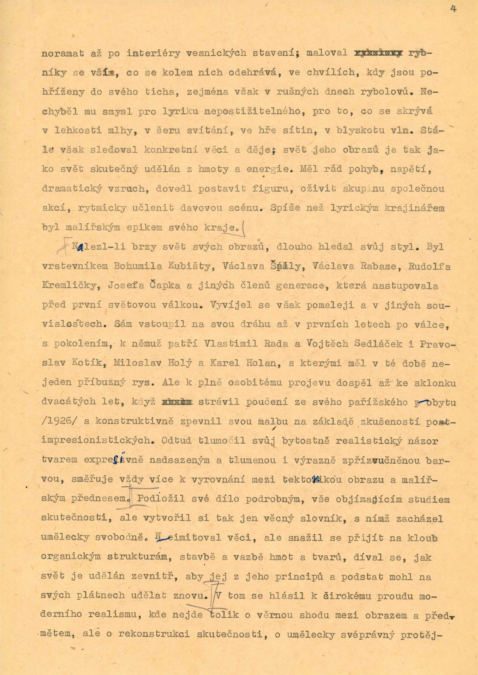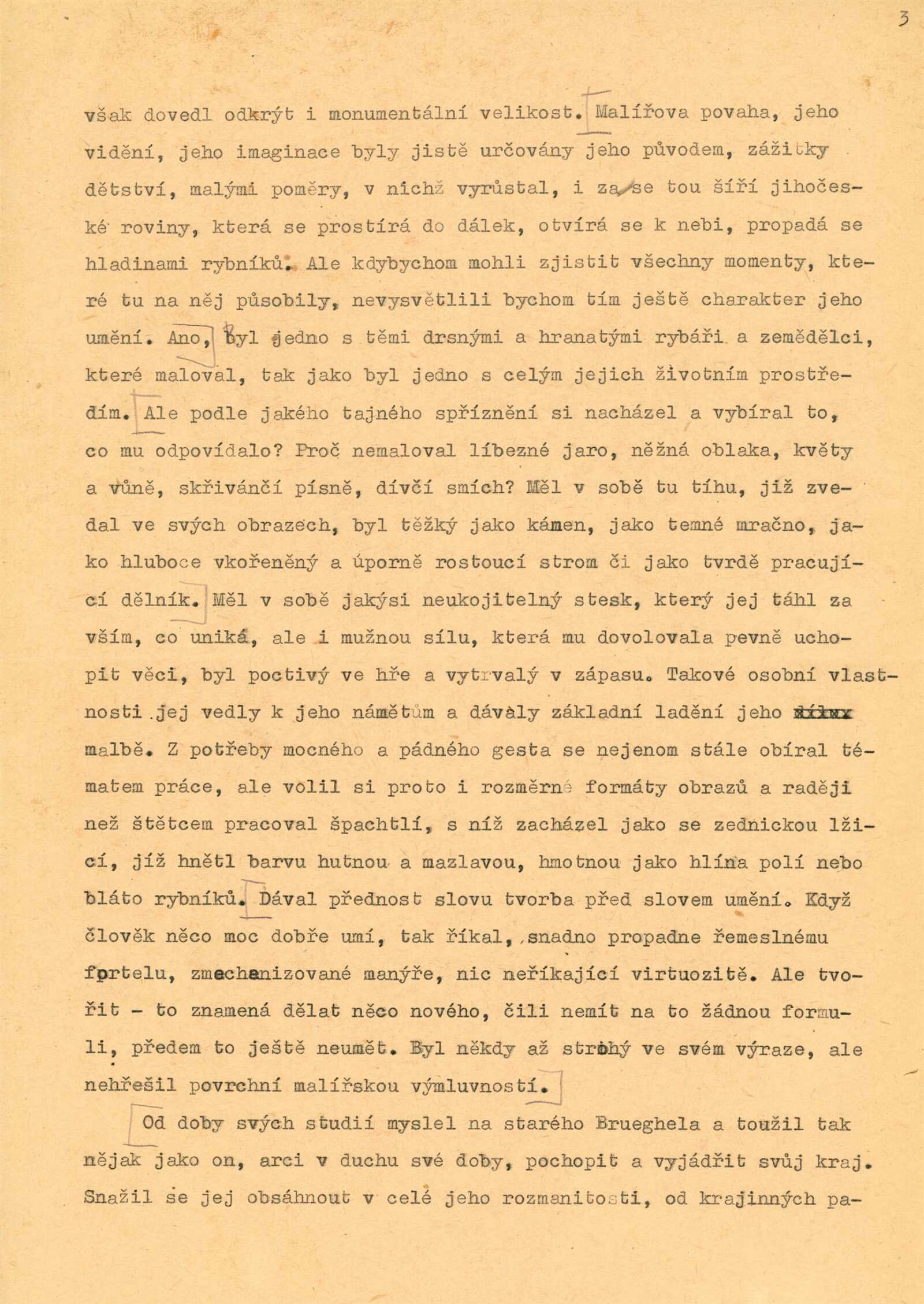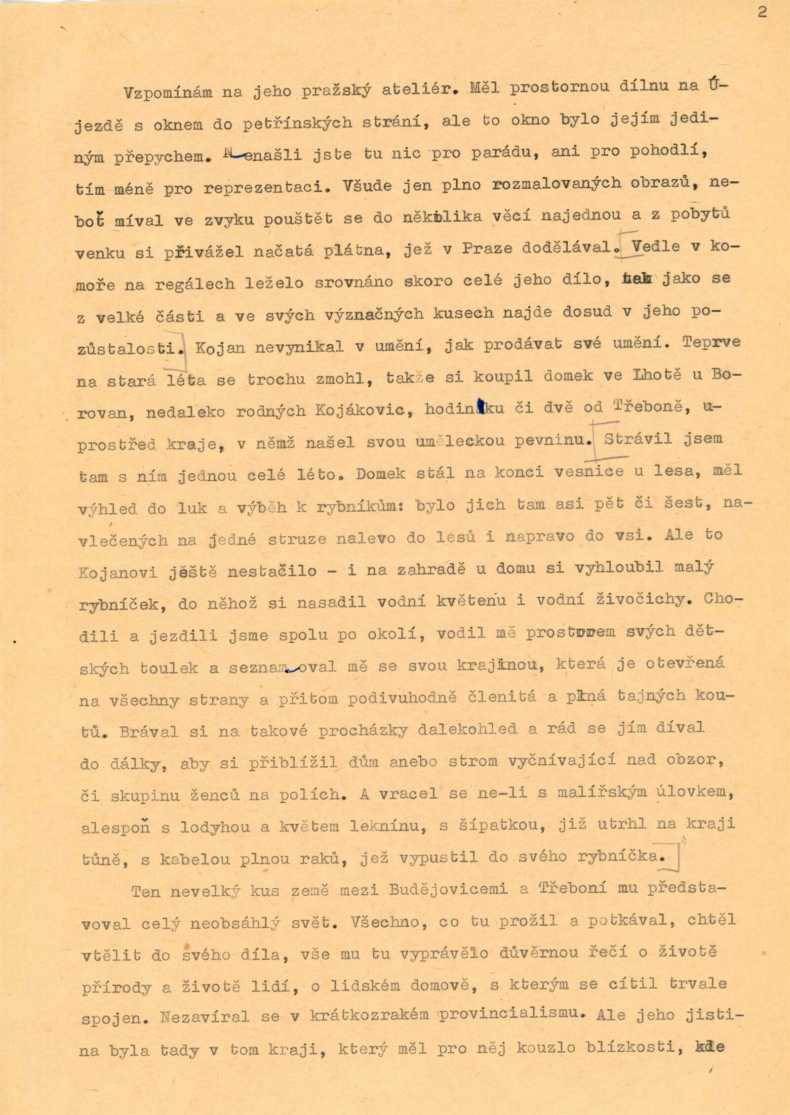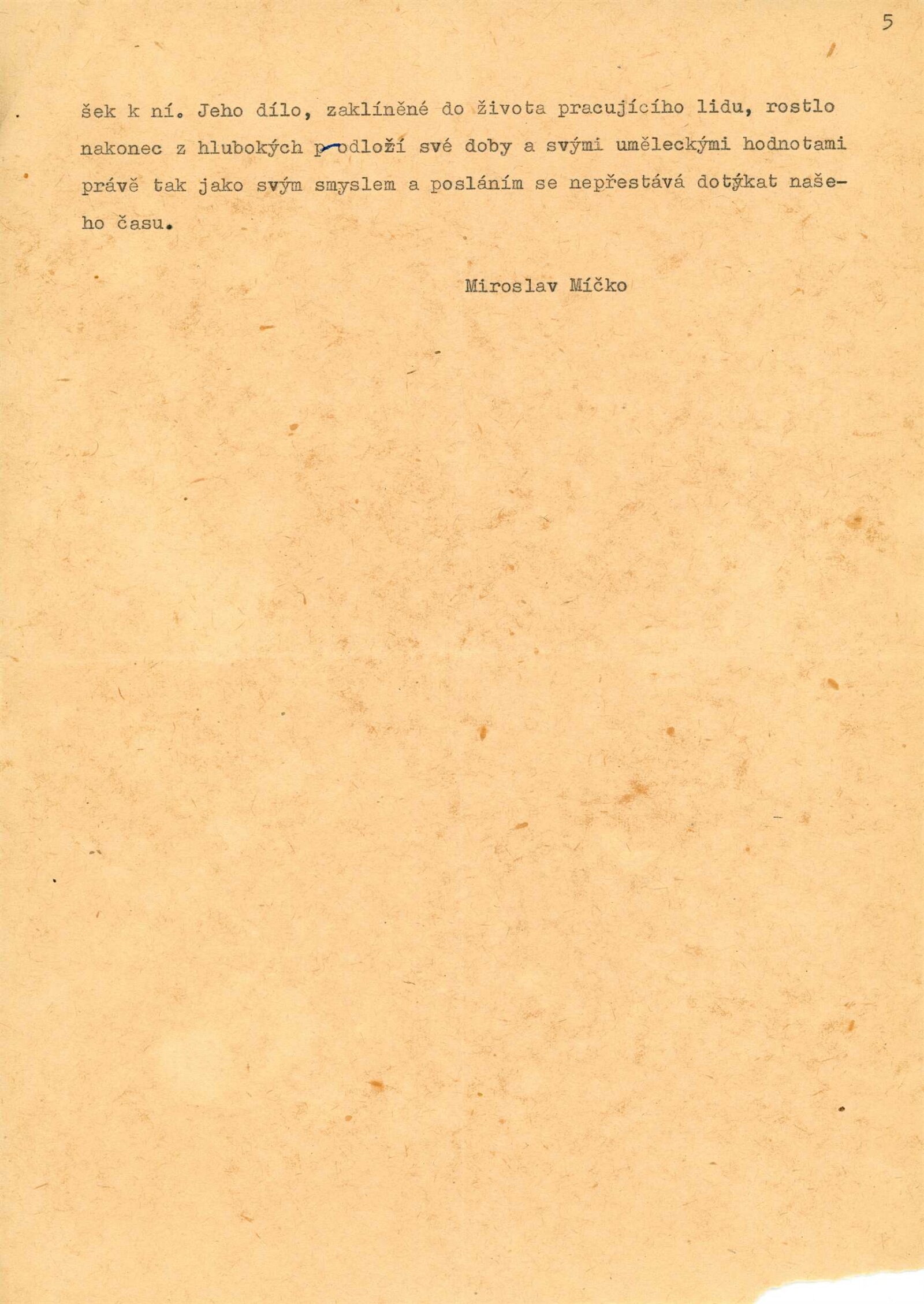 pozvánka, katalog, seznam vystavených děl, strojopis katalogu a proslovu na vernisáži (Miroslav Míčko), báseň (Jan Čarek), žádost o povolení výstavy, korespondence (o přípravě výstavy – Miroslav Míčko, Miroslav Krajný, dopis paní Kojanové o vrácení děl, provozní korespondence), potvrzení o převzetí a předání děl, recenze v tisku