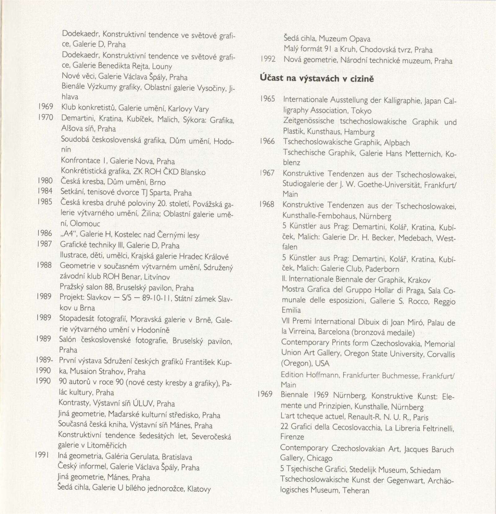 pozvánka, katalog, strojopis, časová osa s charakteristikou jednotlivých tvůrčích období od 1957 do 1989, rukopis umělce, fotografie instalace výstavy, seznam vystavených děl, pojistný seznam, žádost o zapůjčení, smlouva o zápůjčce, recenze v tisku, poznámky