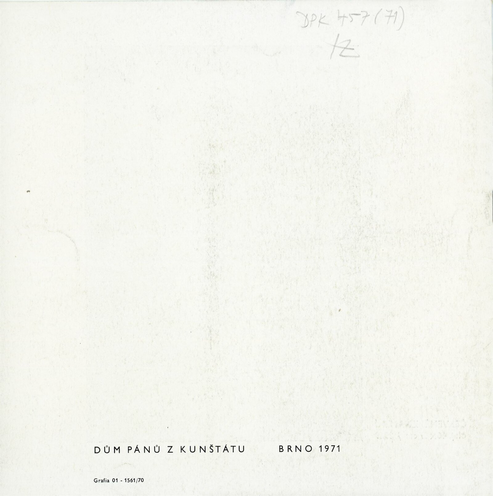 pozvánka, katalog, fotografie výstavy a z vernisáže, negativy fotografií DPK 455–457, plakát, provozní korespondence, smlouva výstavy, žádost o povolení výstavy, recenze v tisku, pozvánka (Brno MG Knihkupectví Čs. spisovatele, 1974), katalog „Umění doby“ (pozn. první samostatná výstavy umělce)