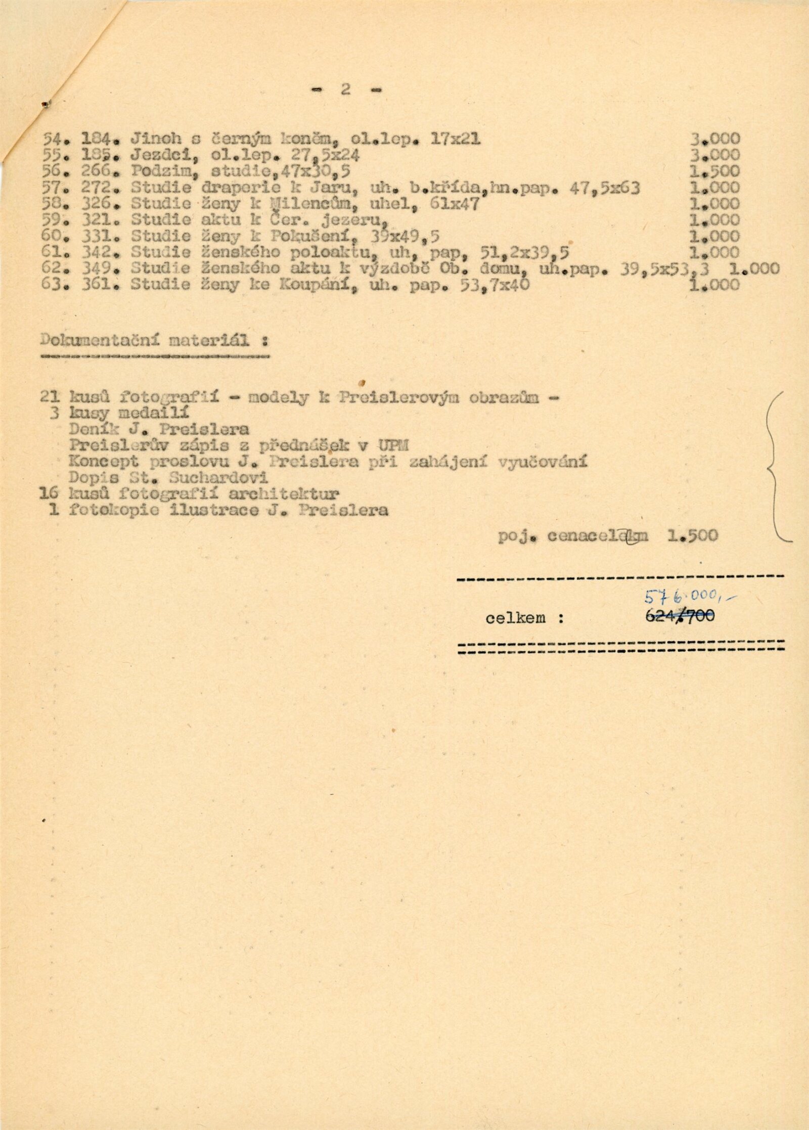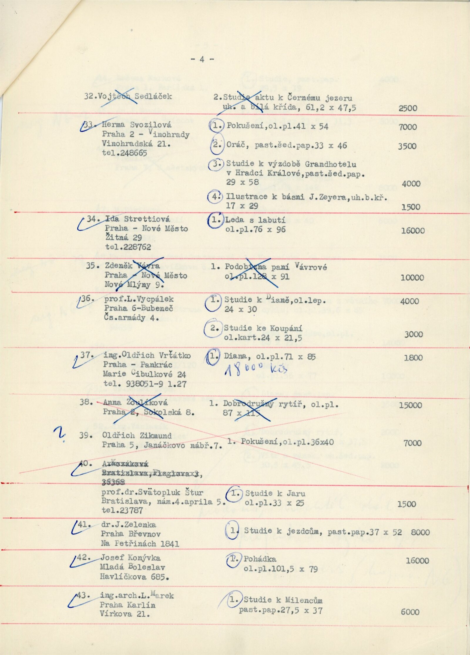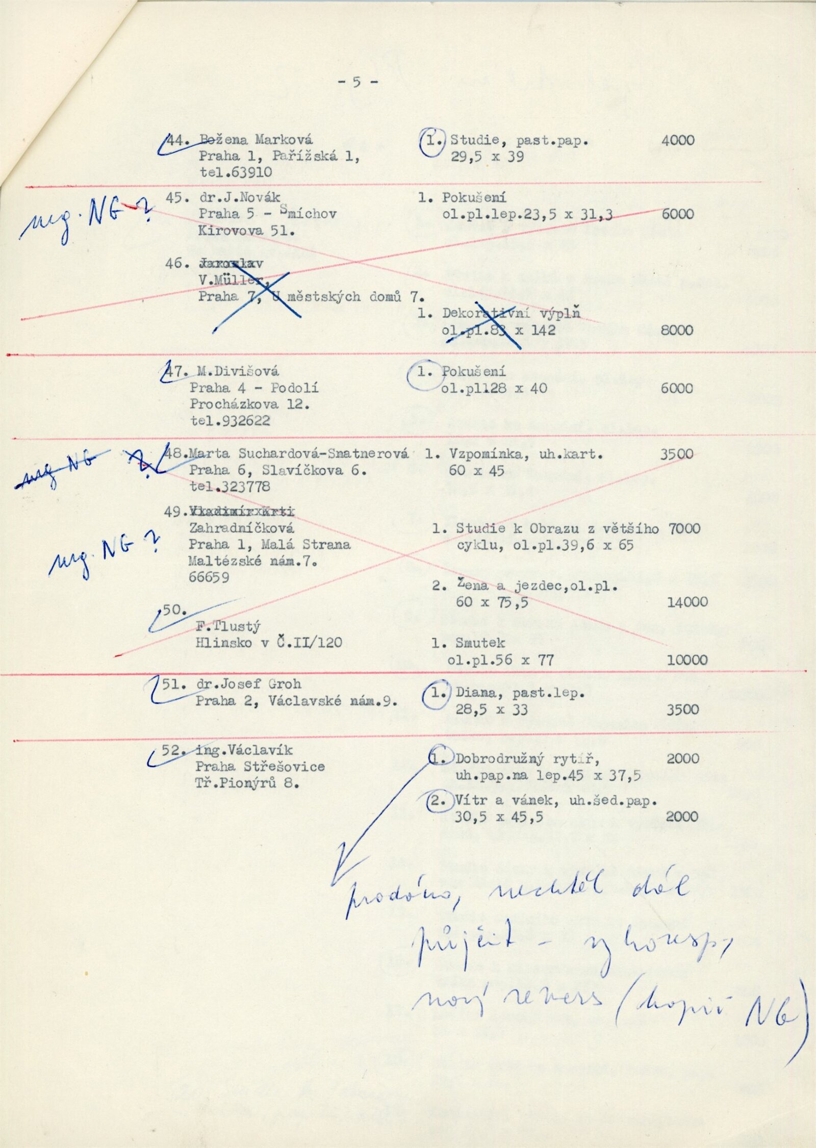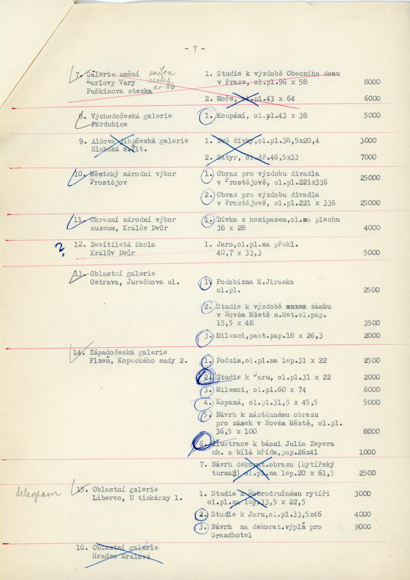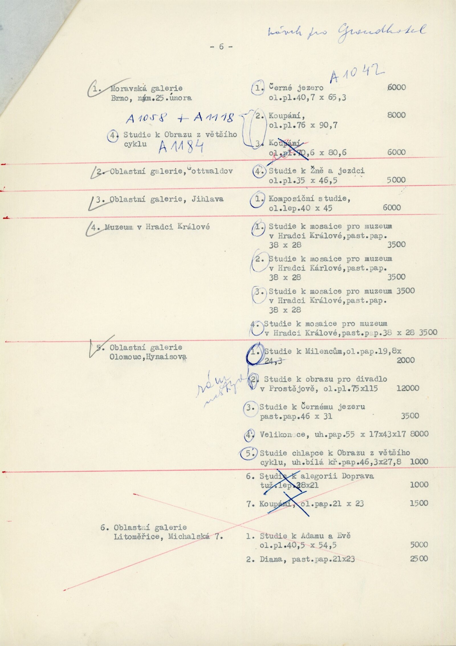 pozvánka, text k výstavě, seznam vystavených a nevystavených prací, soupis majitelů děl, fotografie děl, korespondence, reverzy, recenze v tisku