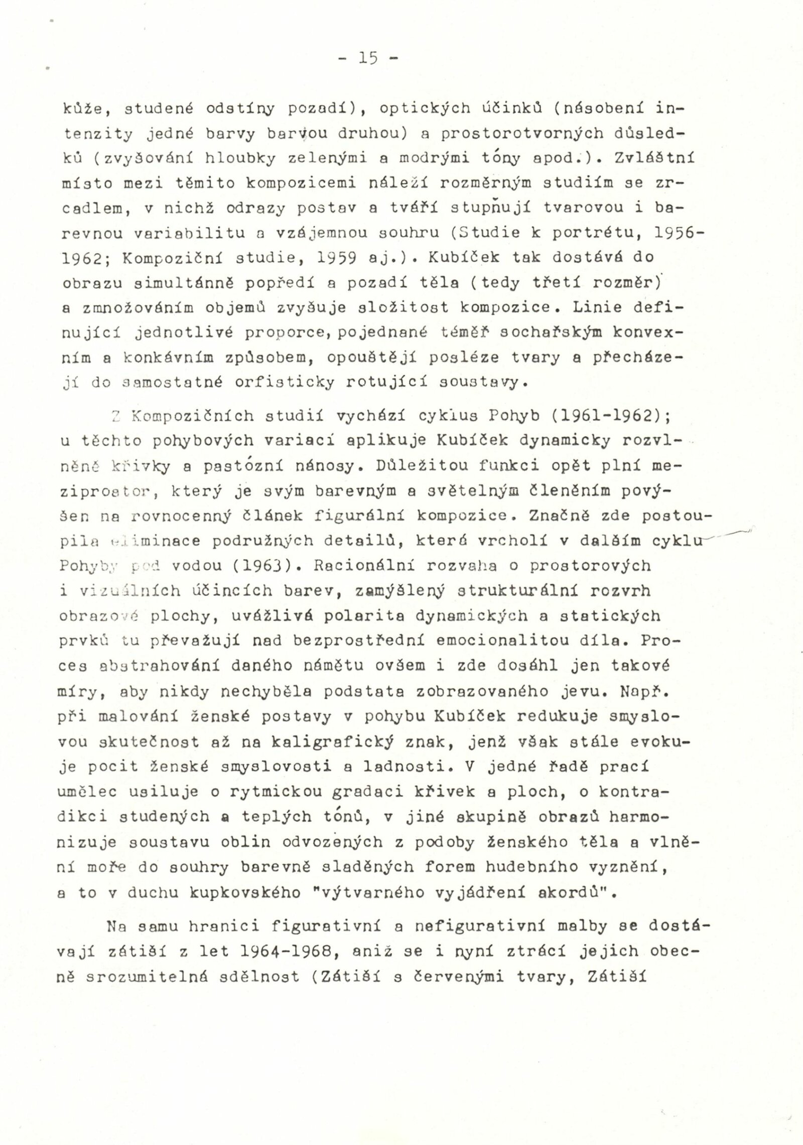 pozvánka, katalog + strojopis katalogu, fotografie výstavy a vernisáže výstavy, korespondence, smlouva o výpůjčce, žádost a potvrzení o konání výstavy, recenze v tisku, text B. Gabrielové o díle Jánuše Kubíčka, katalog výstavy J. Kubíčka v DUMB (1972), pozvánka na výstavu J. Kubíčka v Orleáns (1994), pohlednice s dílem J. Kubíčka, parte Jánuše Kubíčka (1993)
