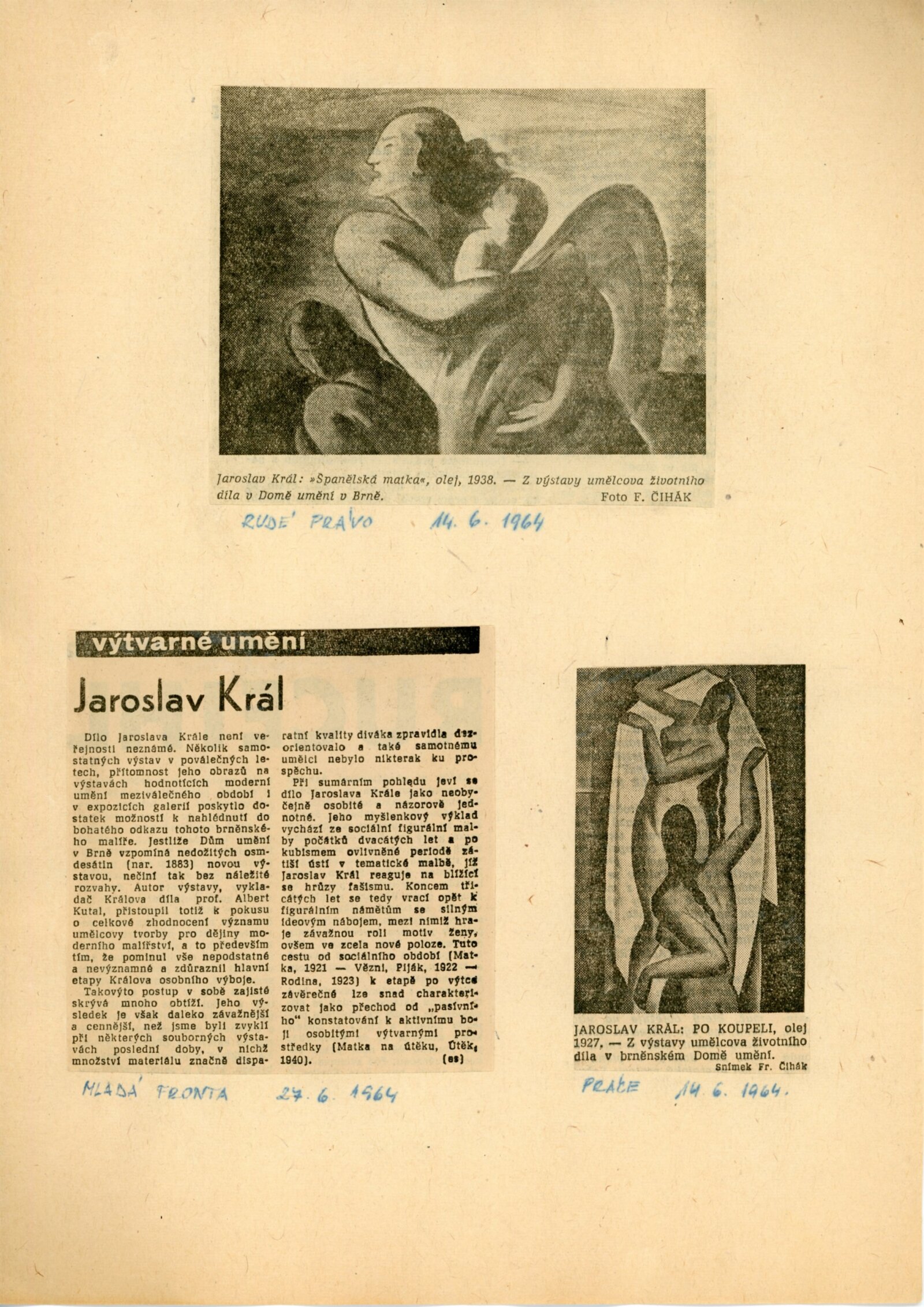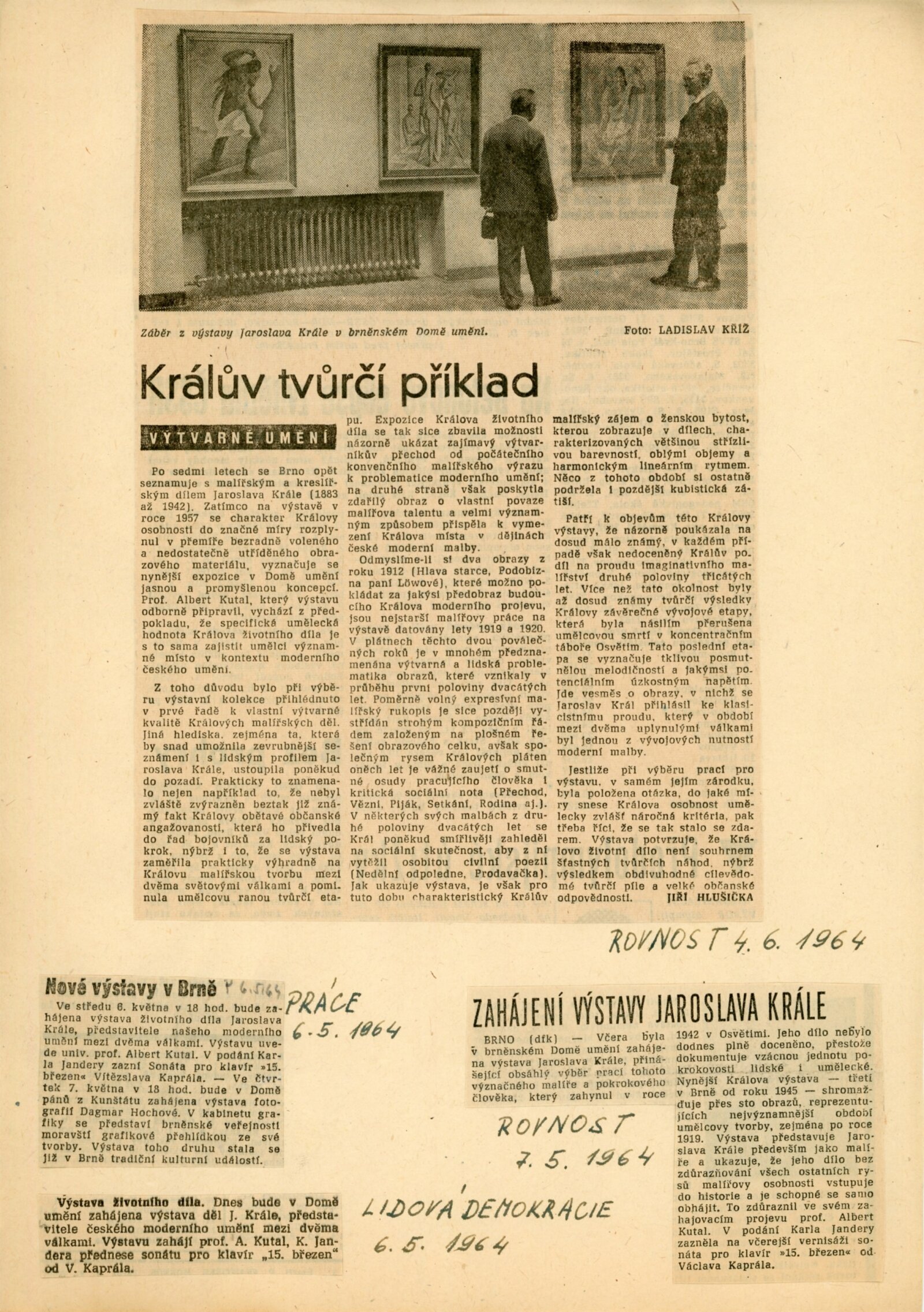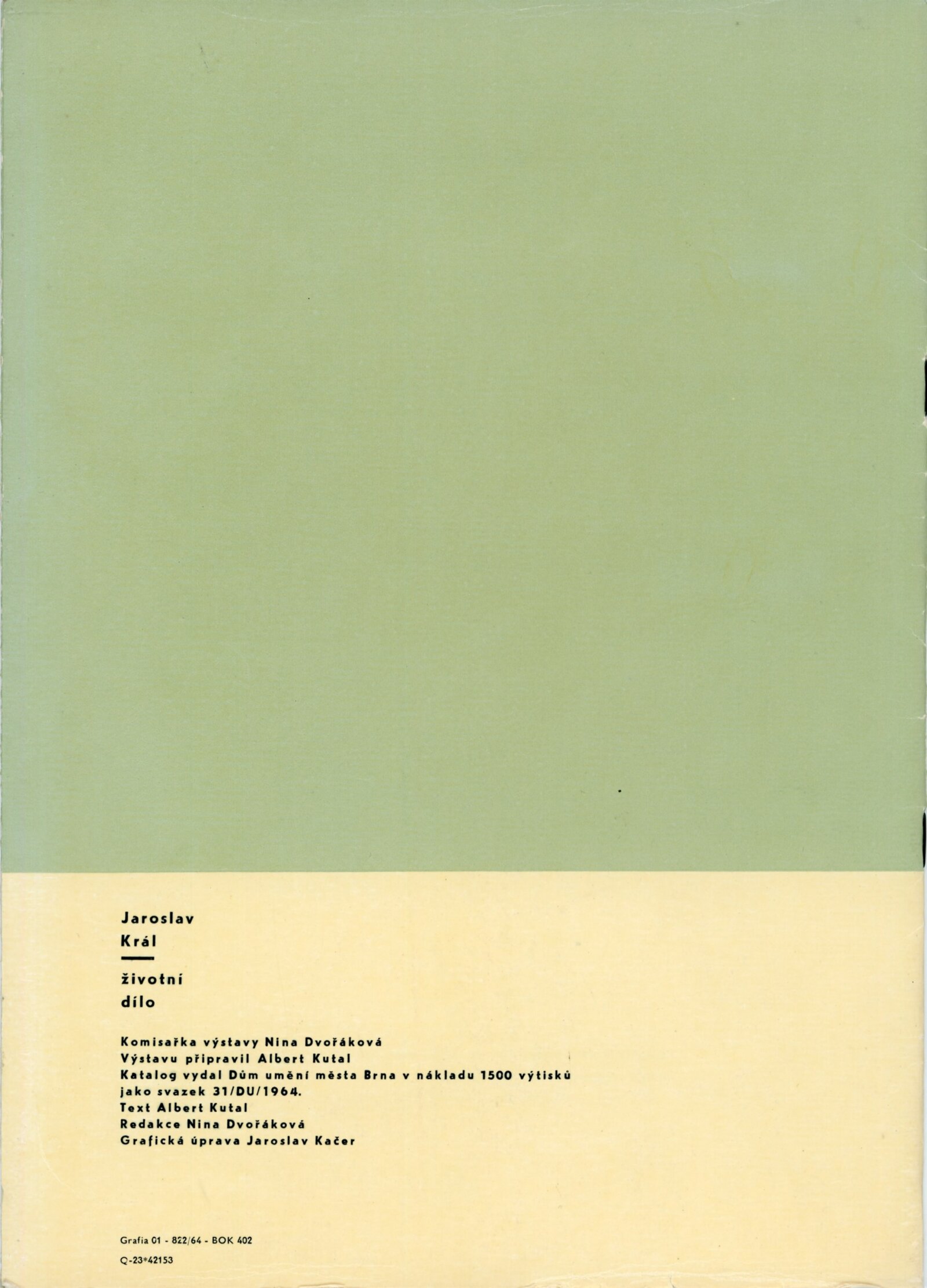 Jaroslav Král. Životní dílo: Dům umění města Brna, 1. patro, 6. 5. – 28. 6. 1964 / Text: Albert Kutal. – Brno: DUmB, 1964. – 16 s., obr., DU 430. – MZK; MG