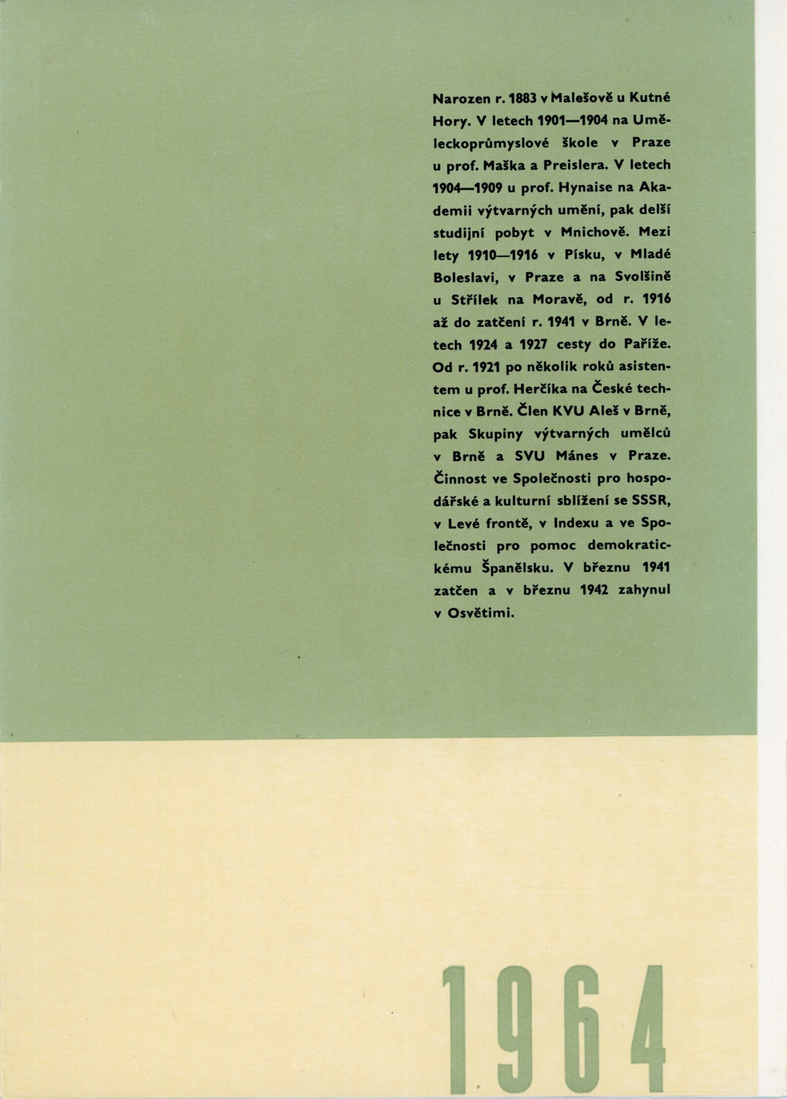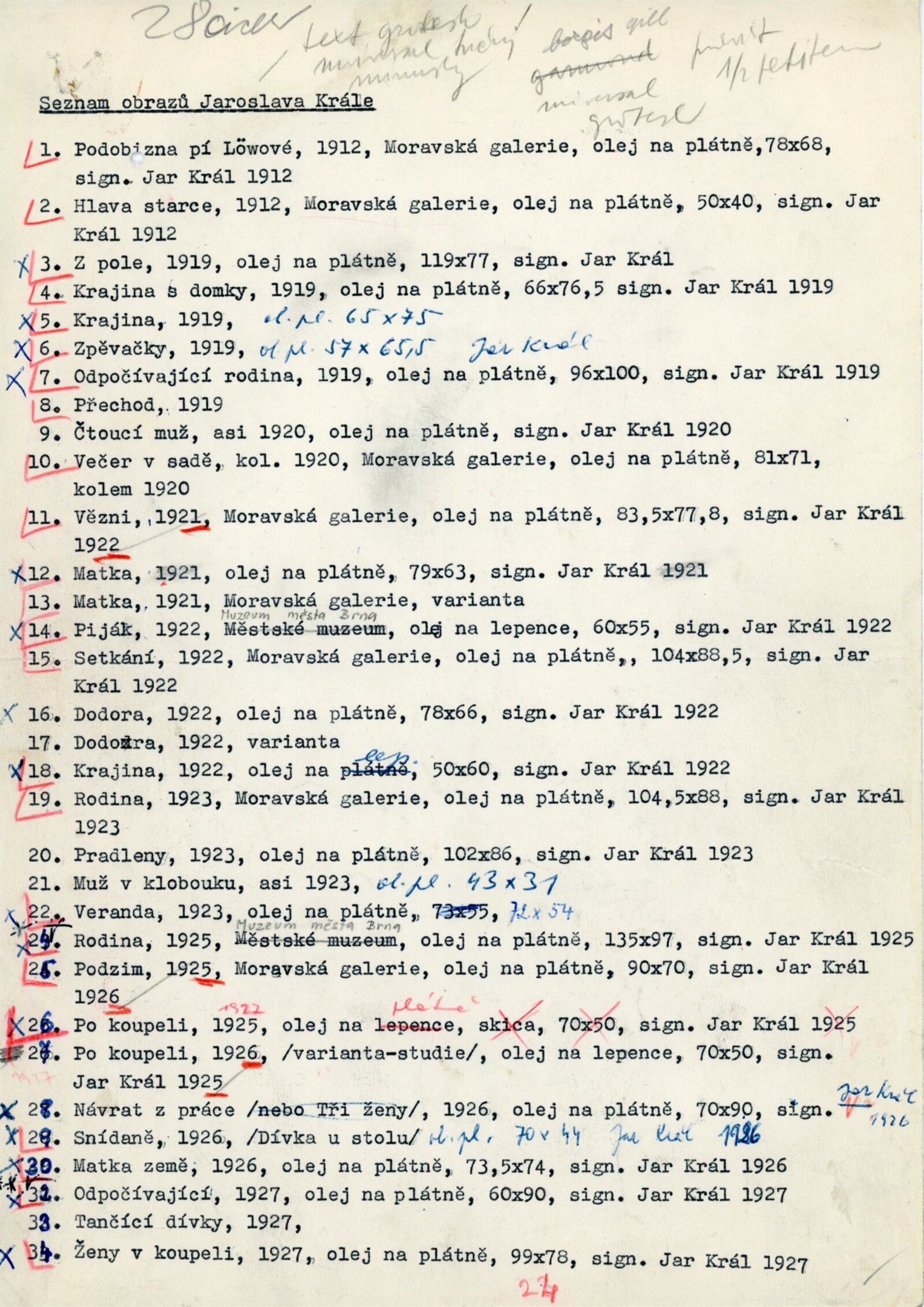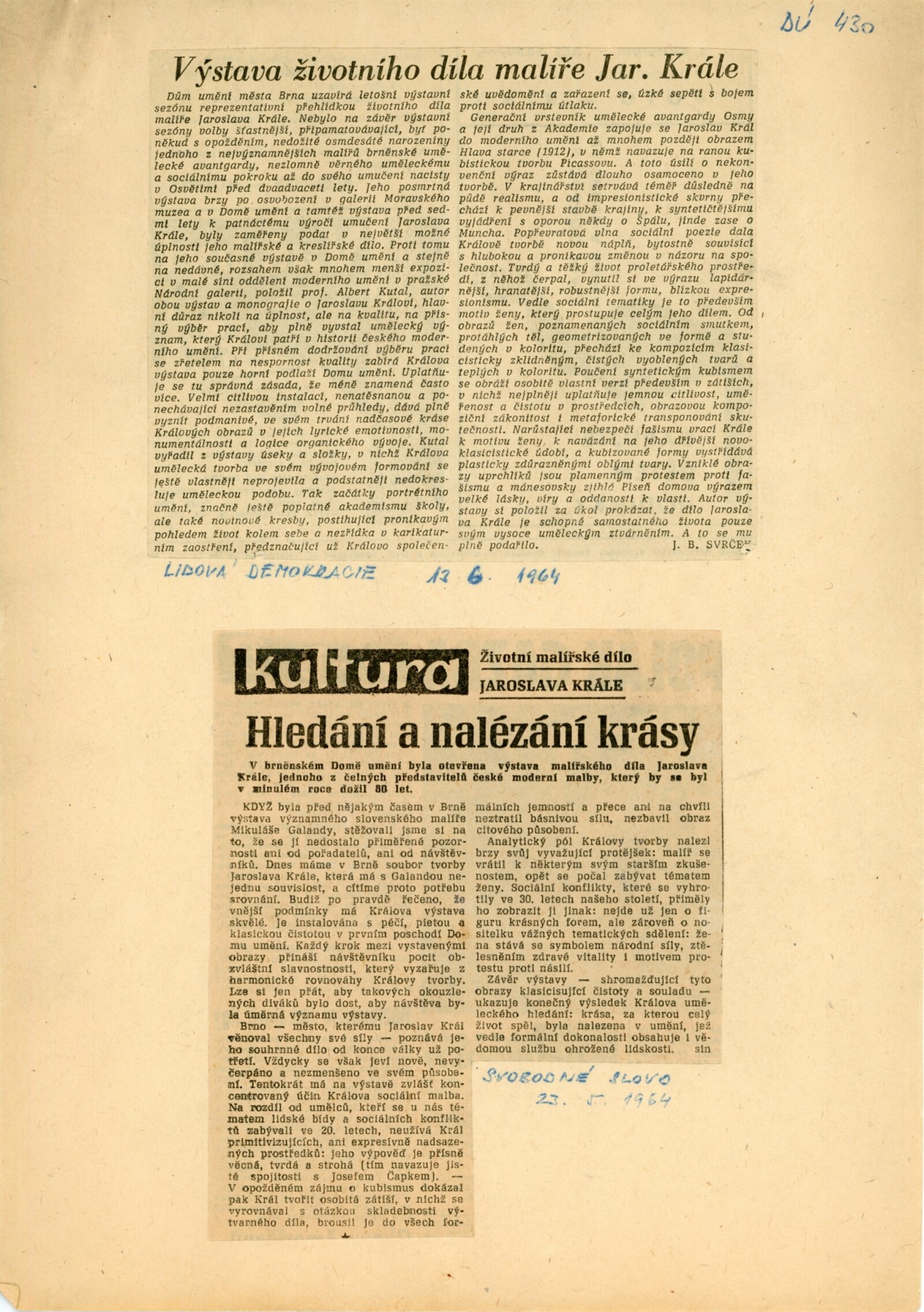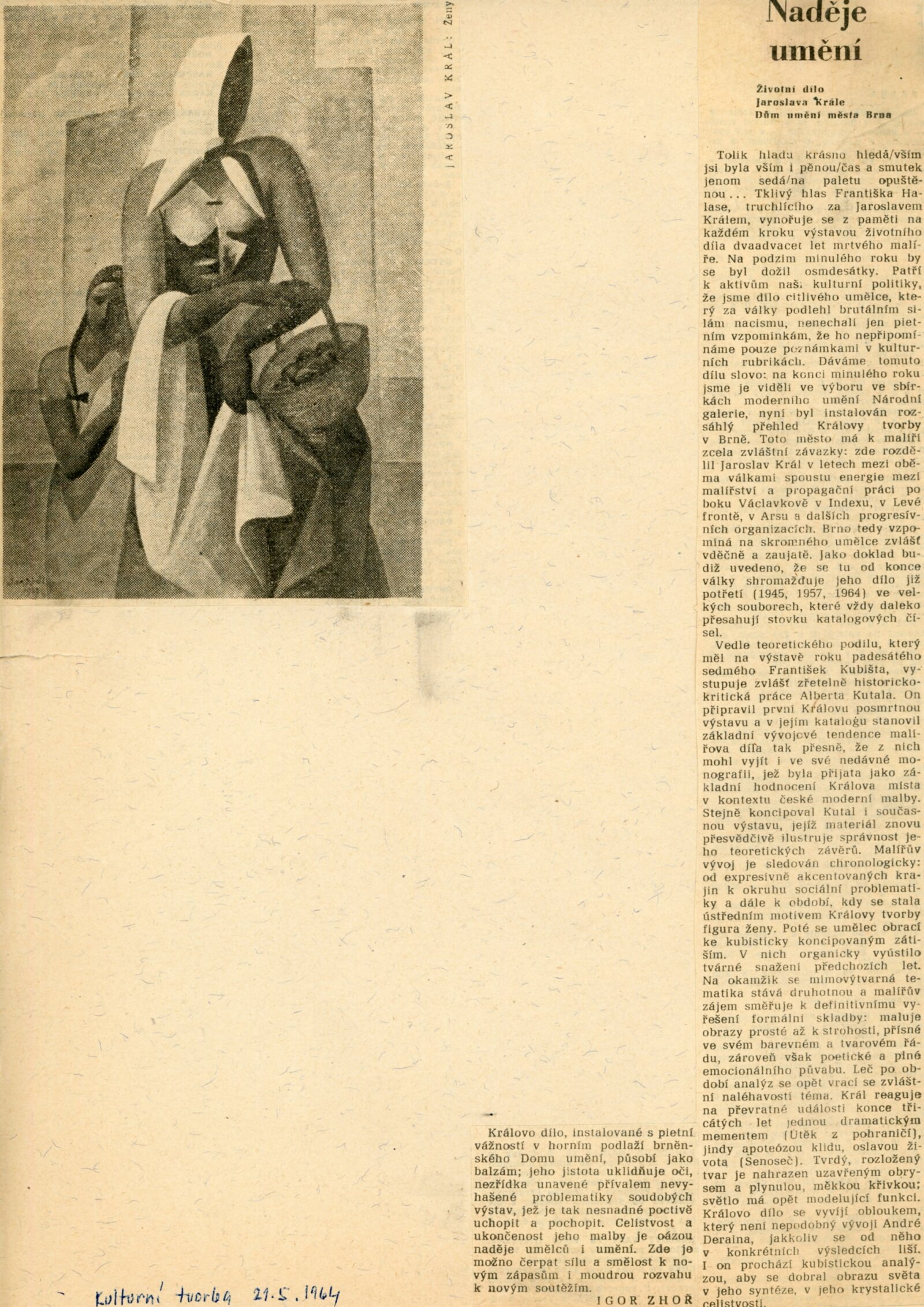 Jaroslav Král. Životní dílo: Dům umění města Brna, 1. patro, 6. 5. – 28. 6. 1964 / Text: Albert Kutal. – Brno: DUmB, 1964. – 16 s., obr., DU 430. – MZK; MG