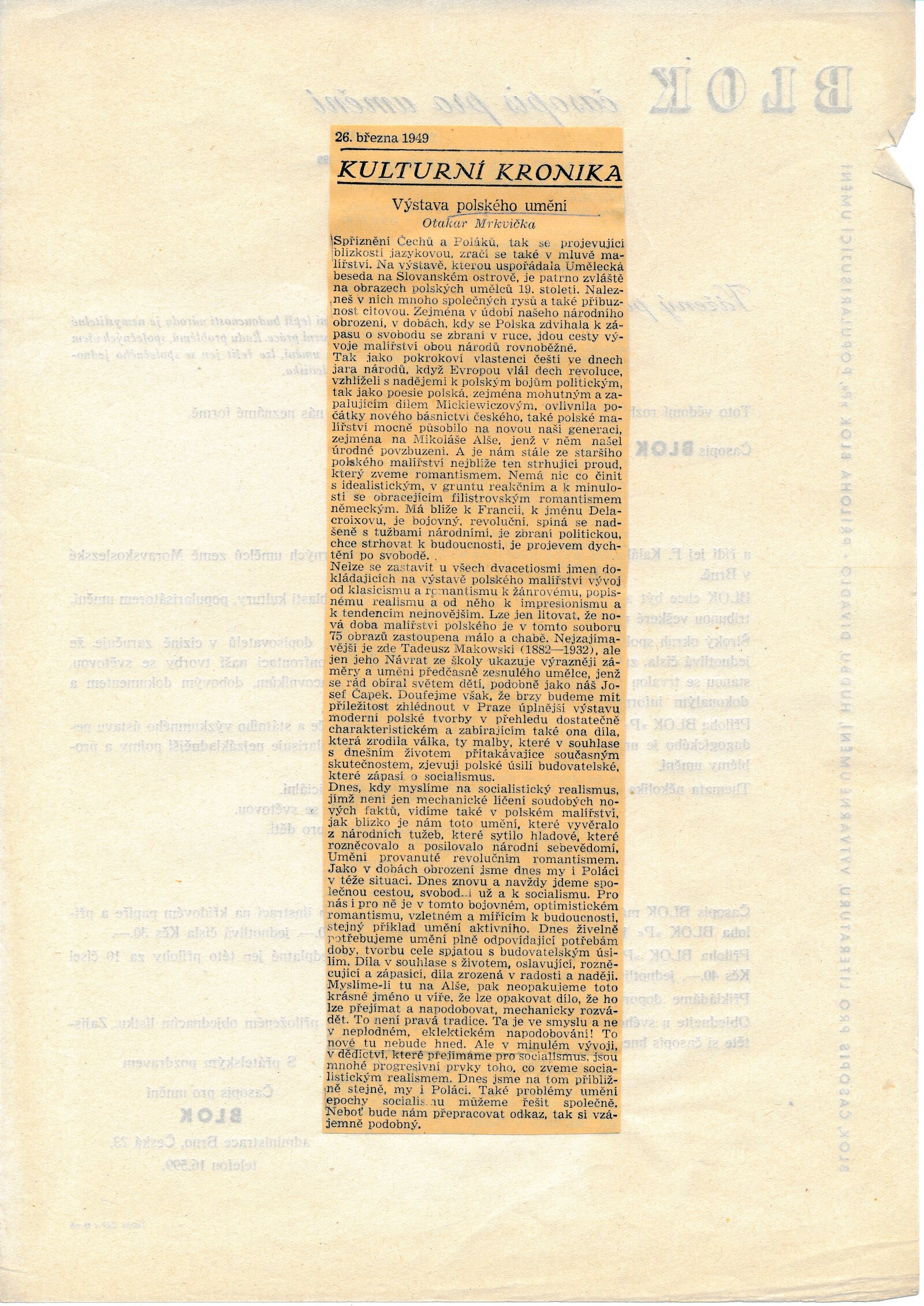 pozvánka, seznam vystavených prací, foto děl Františka Illeka a Alex. Paula, korespondence (dopisy od Jaroslava Paura, zpráva o zahájení výstav Ministerstvu informací a osvěty 11. 2. 1949), provozní korespondence, potvrzení o převzetí a předání výstavy, recenze v tisku, katalog z Topičova salonu
