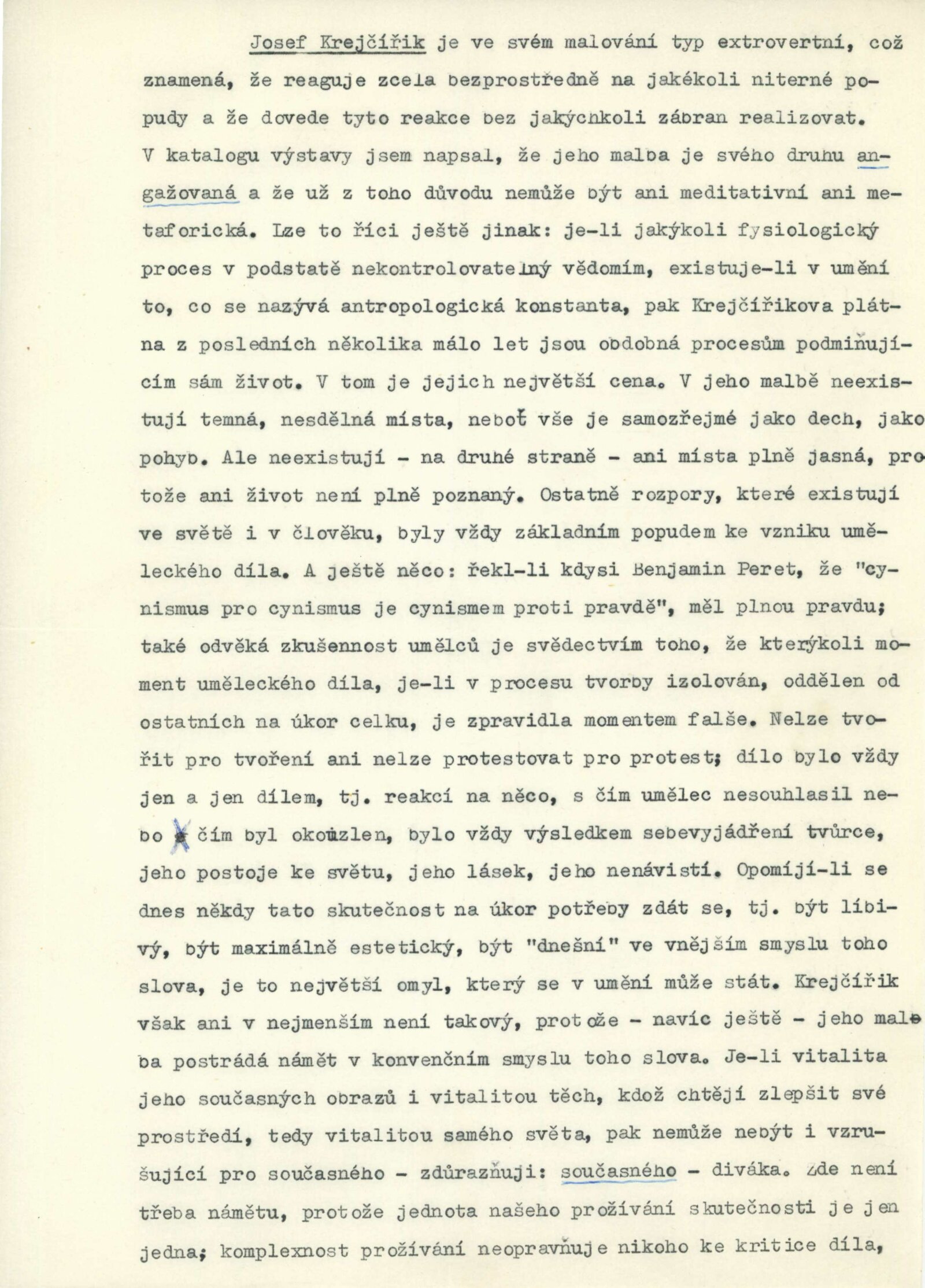 Jasroslav Škarohlíd. Josef Krejčiřík: Dům umění města Brna / Dům pánů z Kunštátu, 19. 12. 1965 – 12. 1. 1966 / Text: Václav Zykmund. – Brno: DUmB, 1965. – skládačka, 14 s., obr., DPK 293. – MZK; MG; MMB