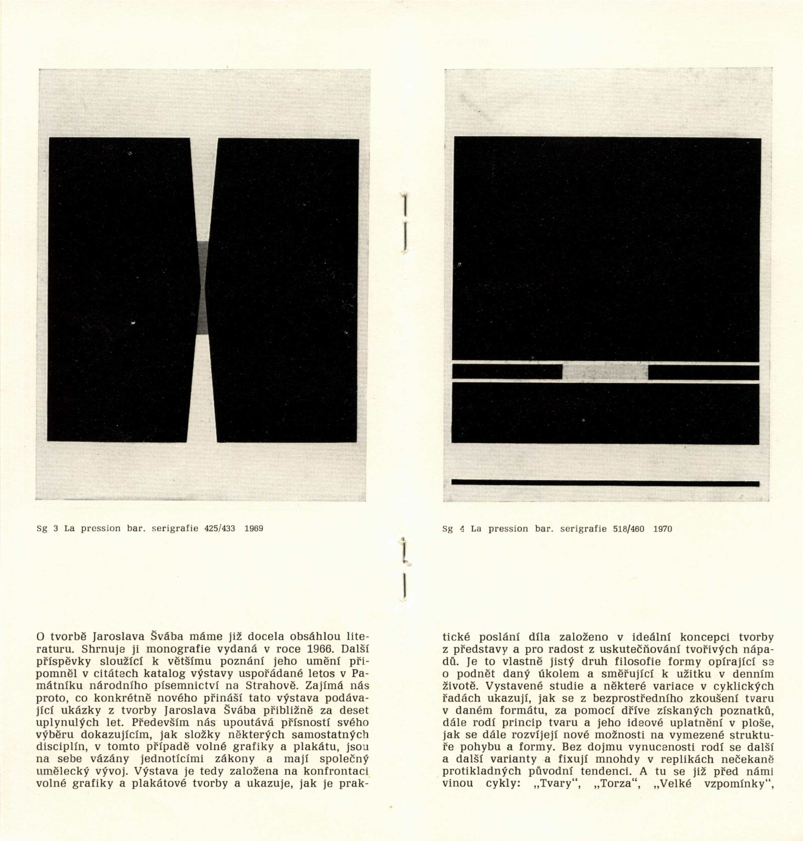 pozvánka, katalog, „Ideogram“ v knize Jaroslava Švába (tisk), fotografie vernisáže, provozní korespondence, dopis (rukopis umělce), smlouva k výstavě, žádost o výstavu od Jaroslava Švába, žádost o povolení výstavy, recenze v tisku