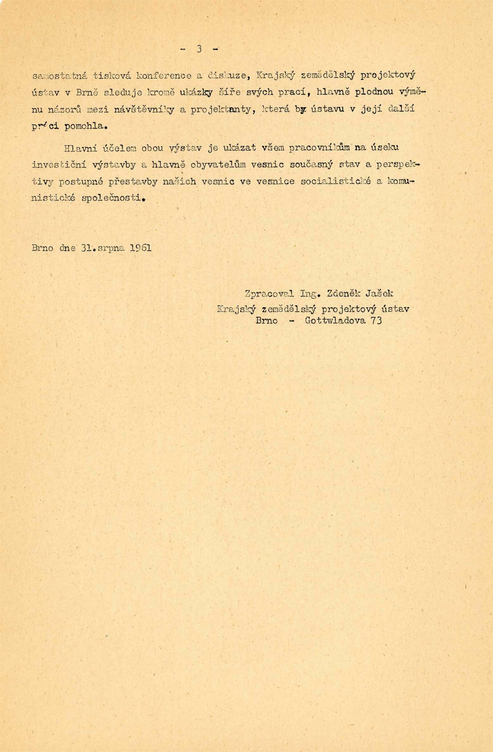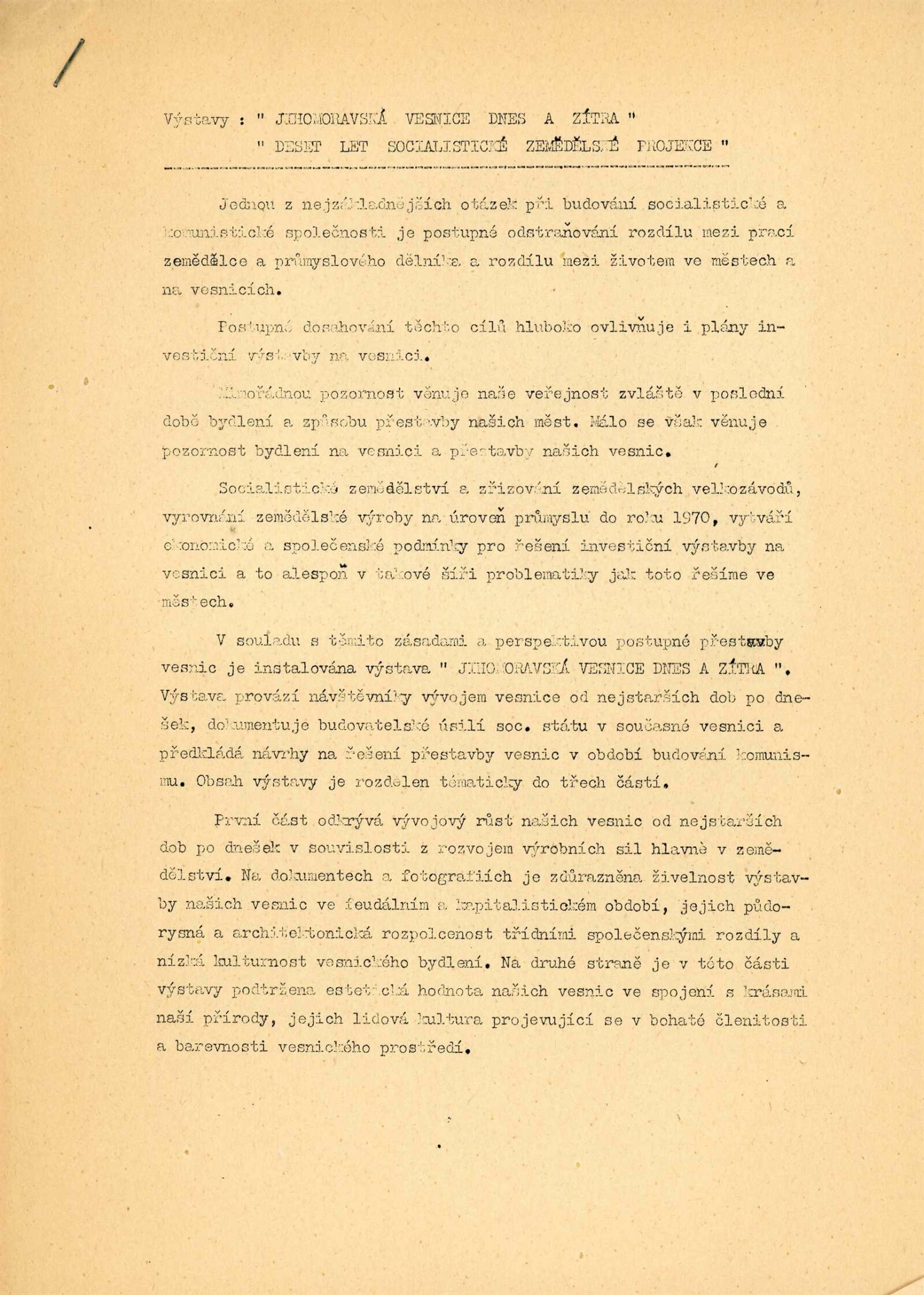 Jihomoravská vesnice dnes a zítra: Dům umění města Brna / Dům pánů z Kunštátu, Kabinet architektury Svazu architektů ČSSR, 7. 9. – 1. 10. 1961 / Brno: Svaz architektů ČSSR,1961. – 4 s., obr., DPK 124