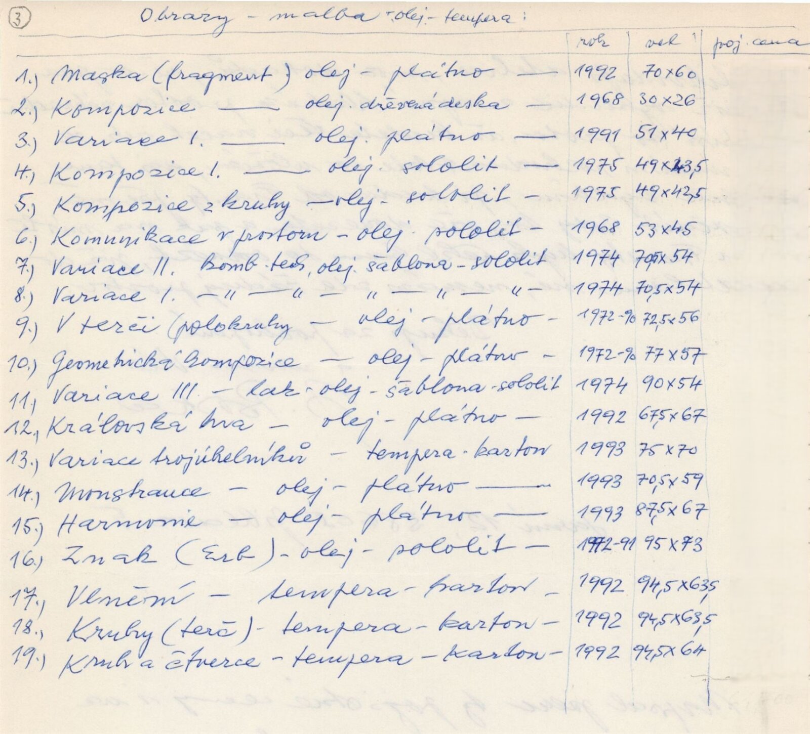 pozvánka, katalog, strojopis pozvánky, fotografie díla, seznam vystavených děl, recenze v tisku