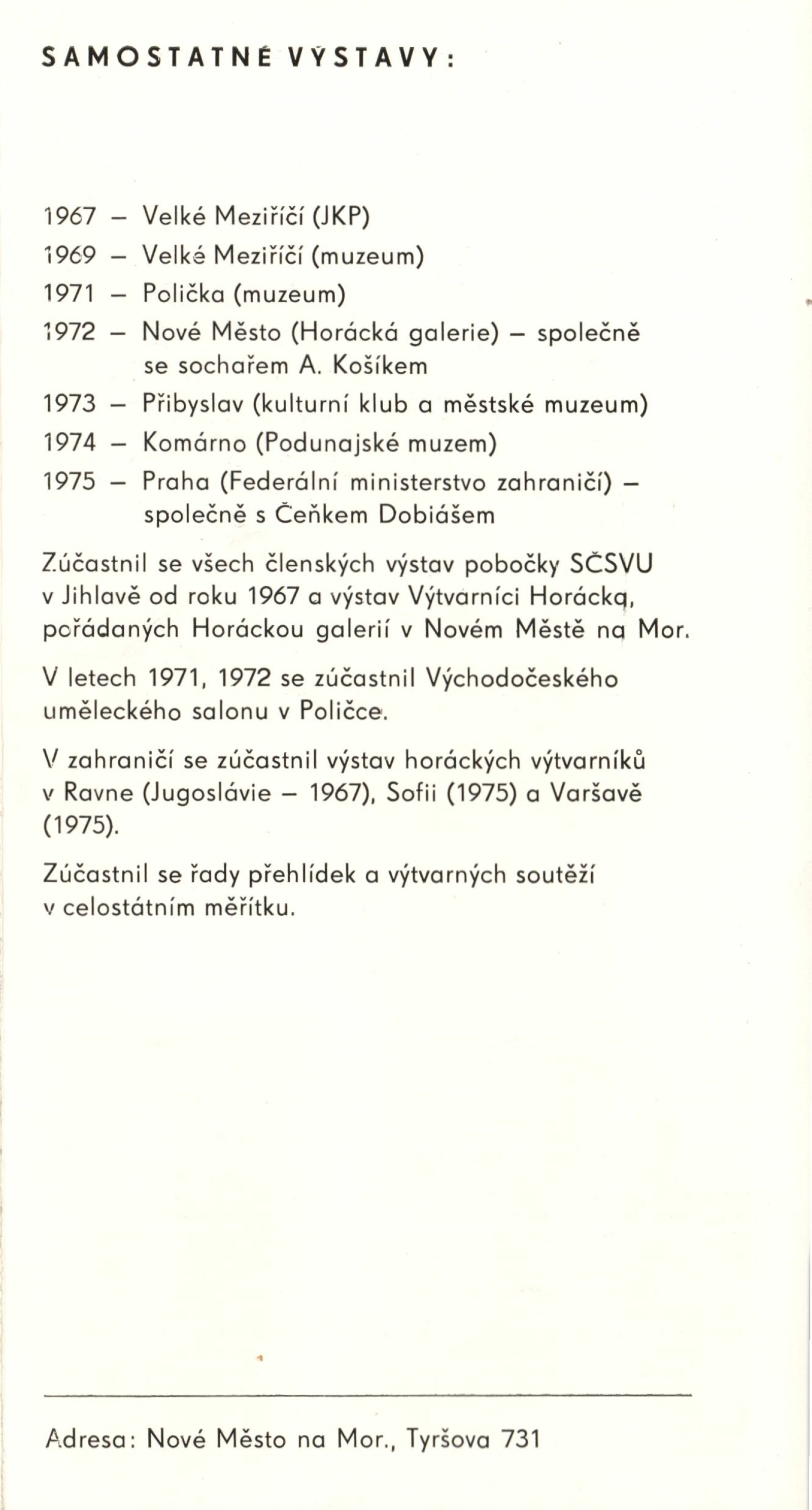 pozvánka, katalog, seznam vystavených děl, recenze v tisku
