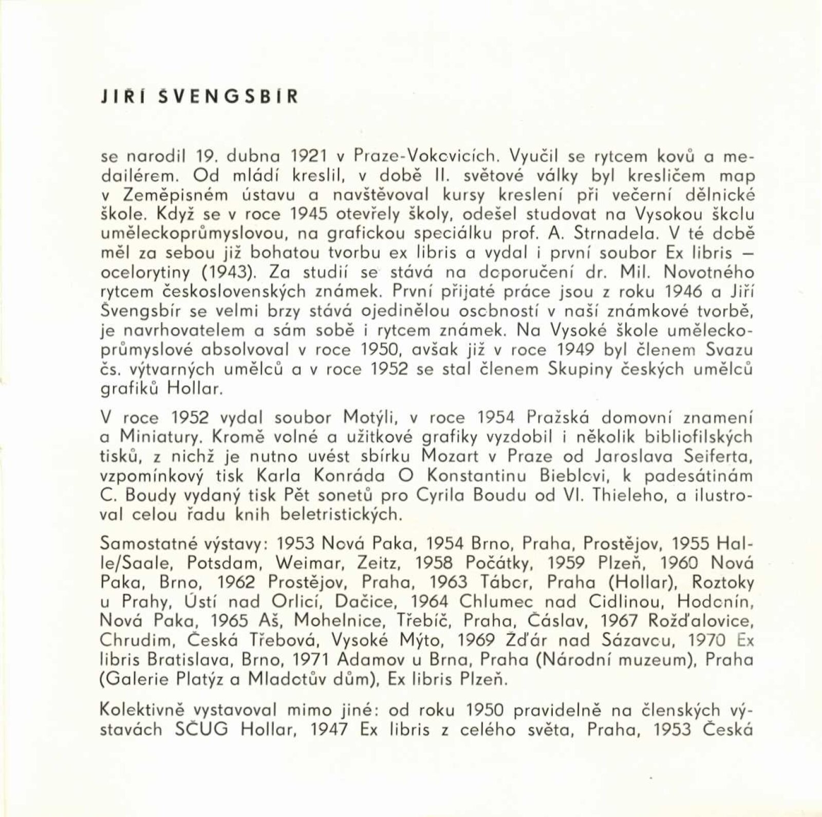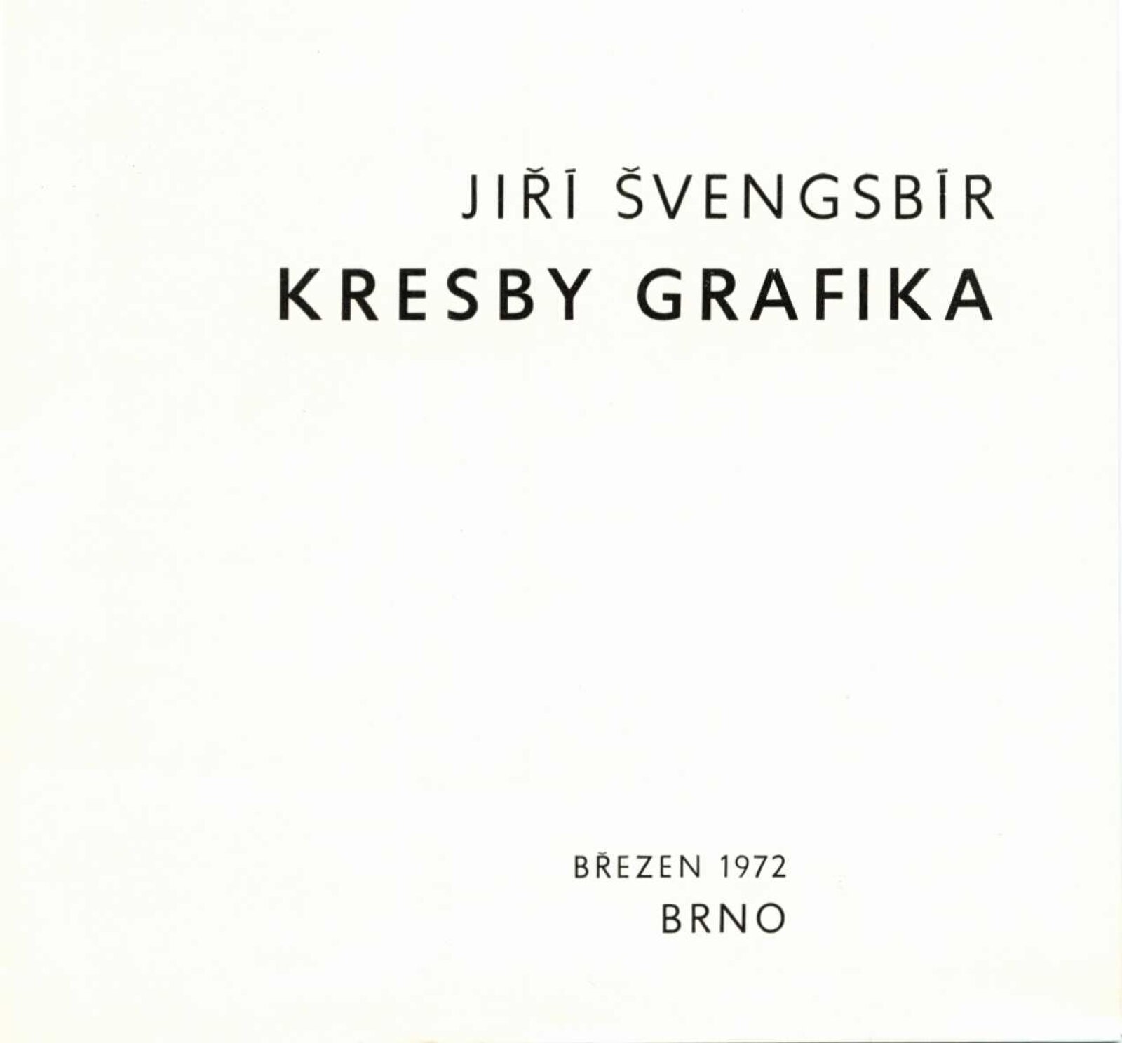 Jiří Antonín Švengsbír. Kresby, grafika: Dům umění města Brna / Dům pánů z Kunštátu, 130. výstava Kabinetu grafiky, 3. 3. – 2. 4. 1972 / Texty: Luboš Hlaváček, Stanislav Straka. – Brno: DUmB, 1972. – 13 s., obr., DPK 500. – MZK; MMB