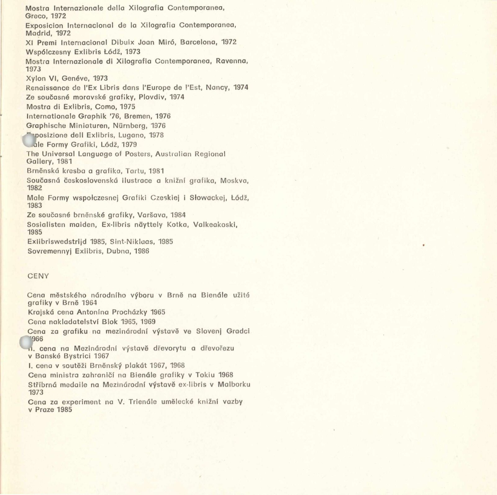 Jiří Hadlač 1957–1987: Dům umění / Dům pánů z Kunštátu, Kabinet grafiky, 10. 3. – 12. 4. 1987 / Text: Igor Zhoř. – Brno: DUmB, 1987. – [16] s., obr., seznam vystavených prací [4] s., životní data, výstavy, ceny, DPK 886. – MZK; MMB