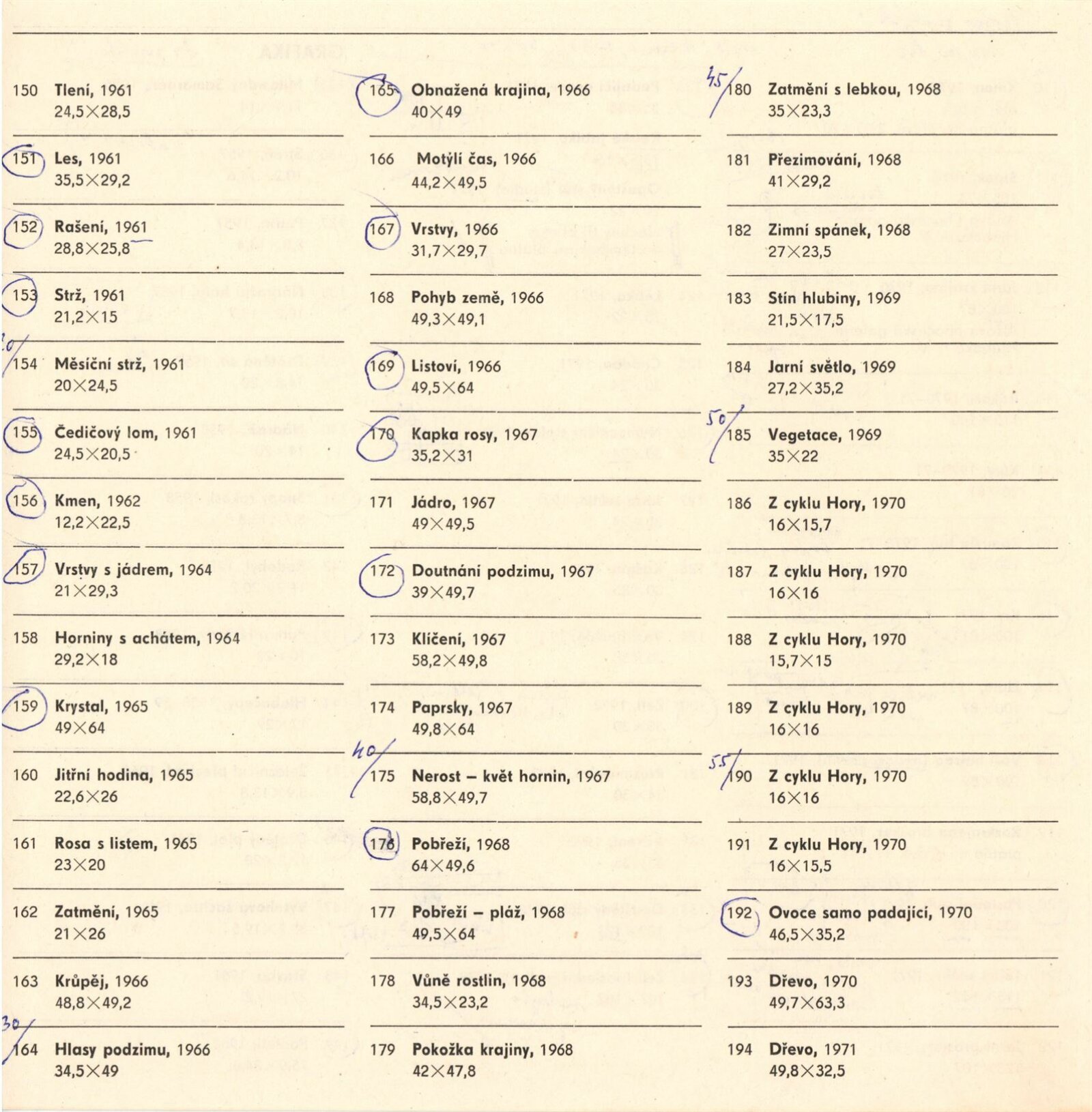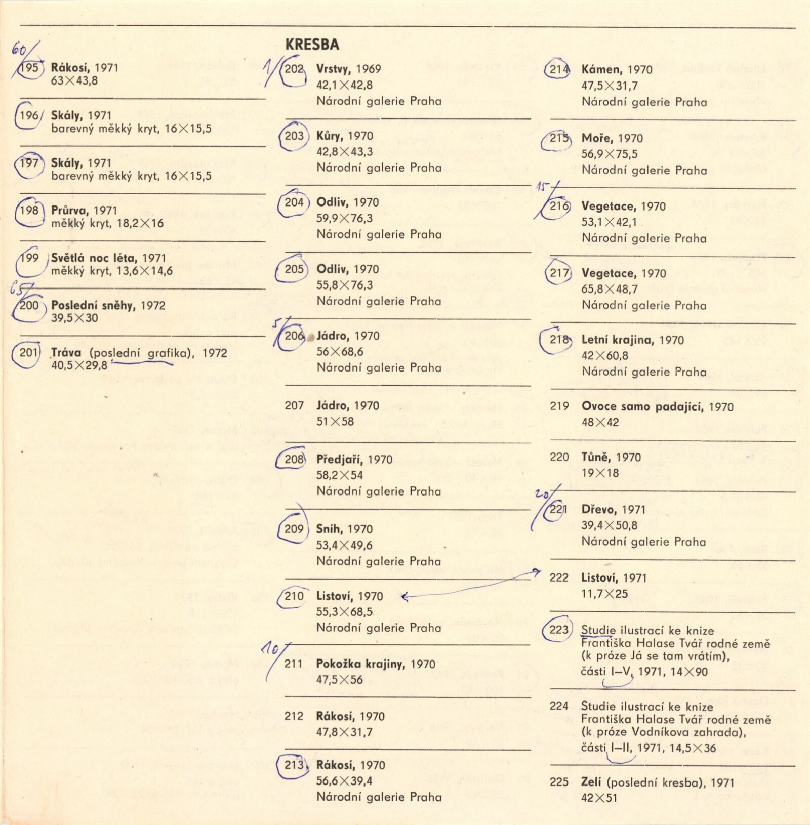 pozvánka na výstavu, pozvánka na prosincové výstavy DU a DPK, katalog s přílohou, plakát, pozvánka na výstavu v Chebu, katalog výstavy v Chebu, pozvání na výstavu od výboru MPVU, báseň Josefa Weimanna k výstavě, strojopis textu katalogu, seznamy vystavených děl a pojistné seznamy, korespondence (s Jaroslavem Zeminou), provozní korespondence o výpůjčkách (galerie a soukromí majitelé), žádost o povolení výstavy, reversy, recenze v tisku, ručně psané poznámky