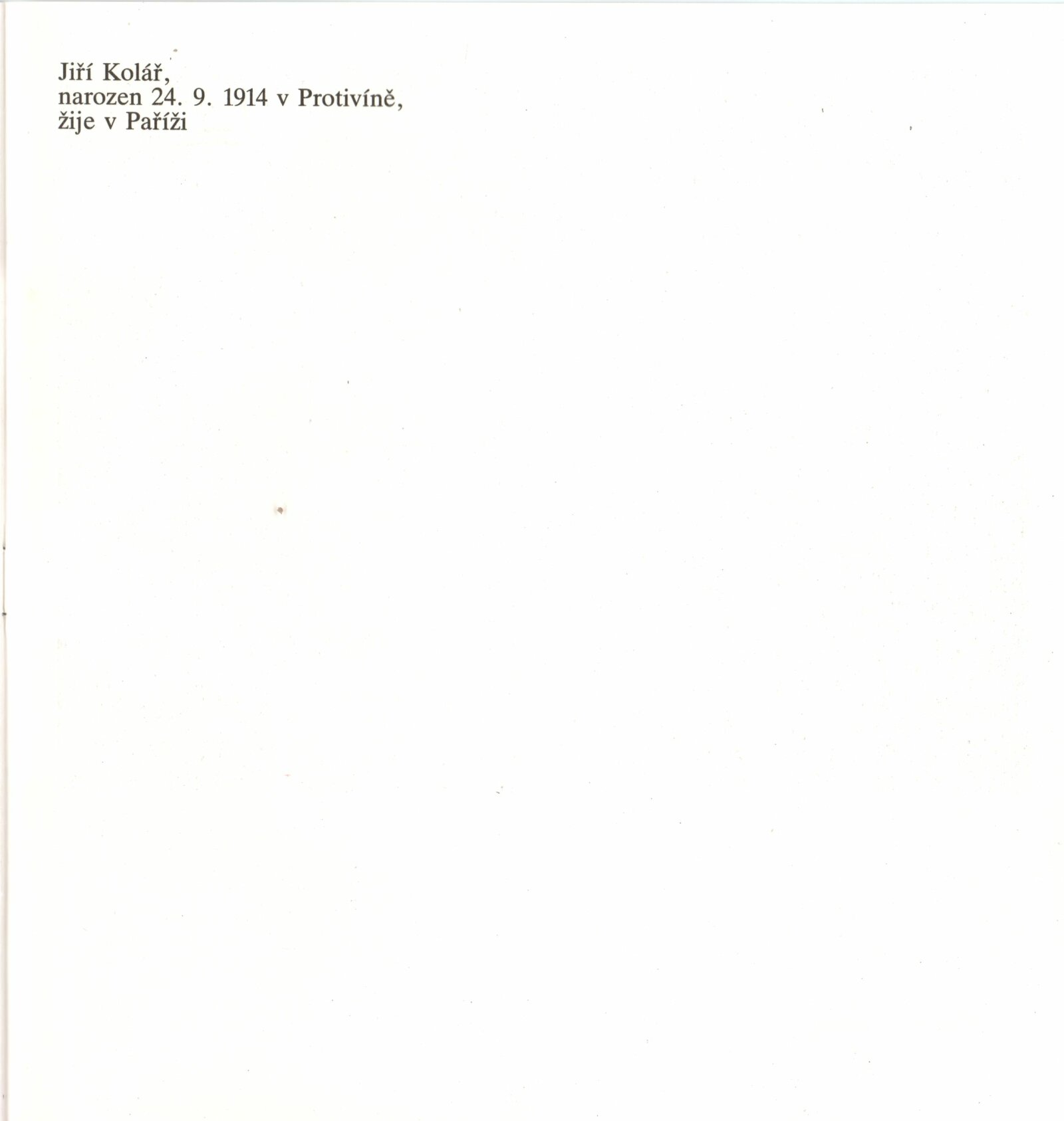 Jiří Kolář. Práce z počátku šedesátých let ze sbírky Ladislava Nováka: Dům umění / Dům pánů z Kunštátu, Kabinet fotografie Jaromíra Funka, 12. 12. 1989 – 14. 1. 1990 / Text: Jiří Valoch. – Brno: DUmB, 1989. – [16 ] s., obr., DPK 927. – MZK