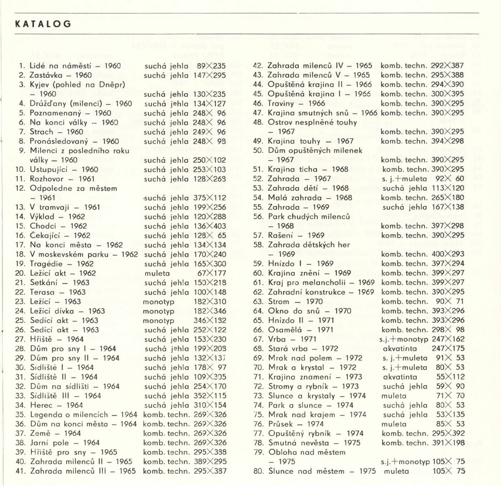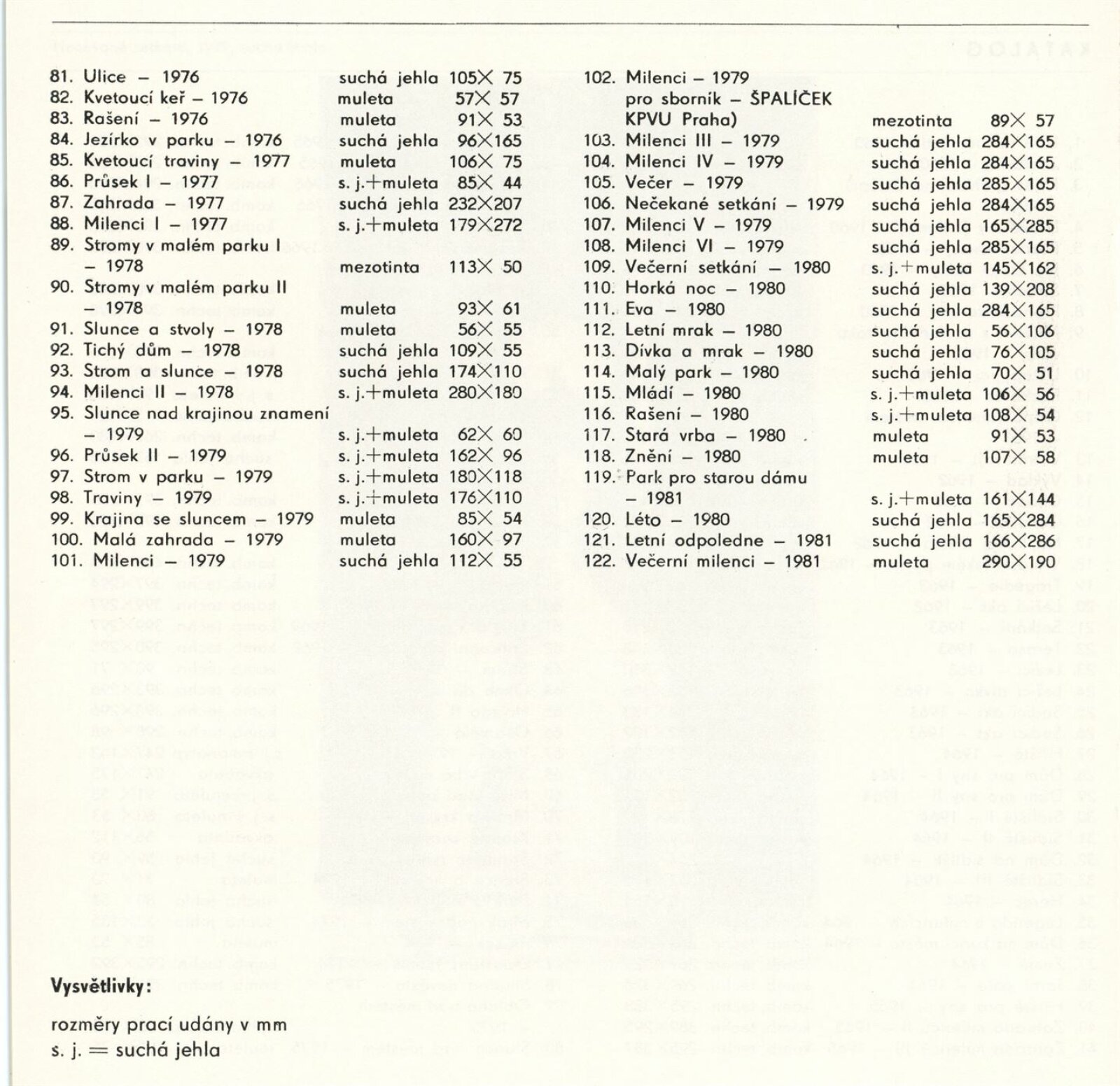 Jiří Vláčil. Grafika: Dům umění / Dům pánů z Kunštátu, Kabinet grafiky, 23. 4. – 23. 5. 1982 / Text: Nina Dvořáková. – Brno: DUmB, 1982. – 13 s., obr., životní data, výstavy, DPK 777. – MZK; MG; MMB
