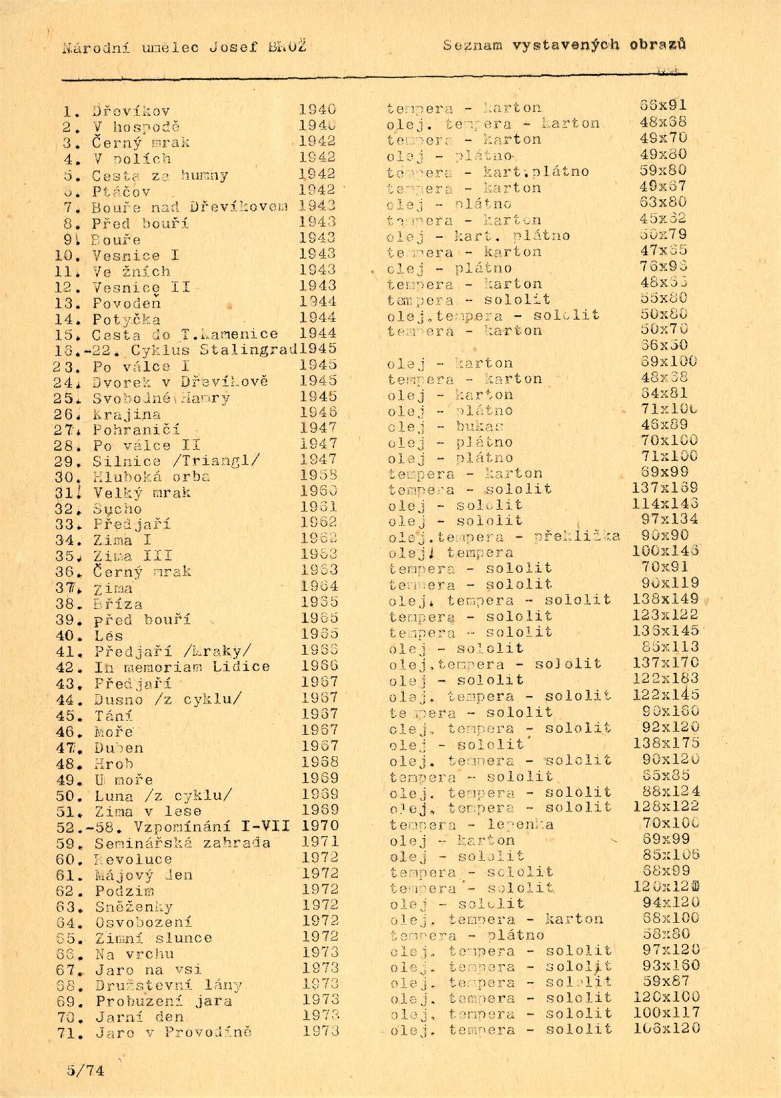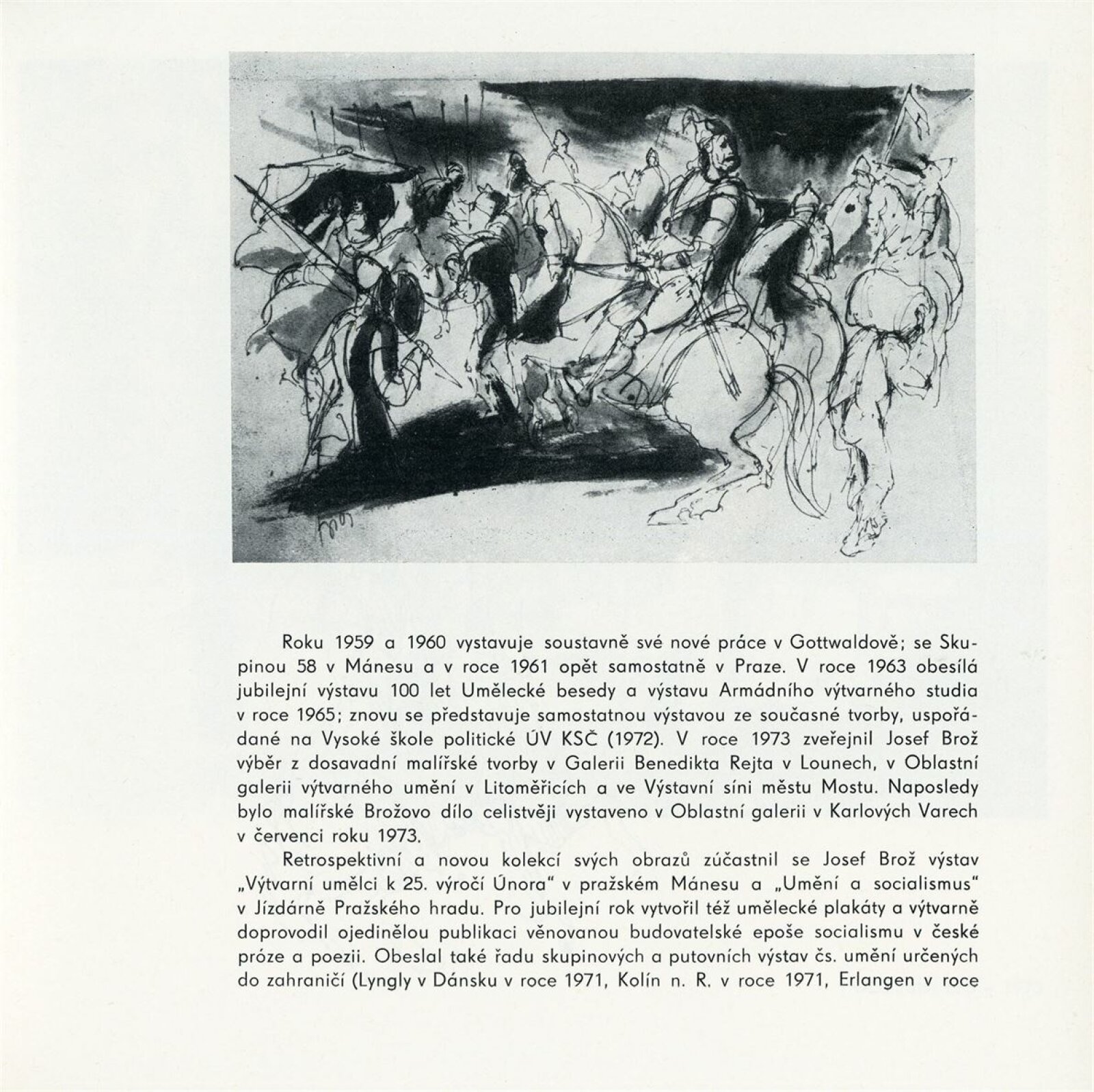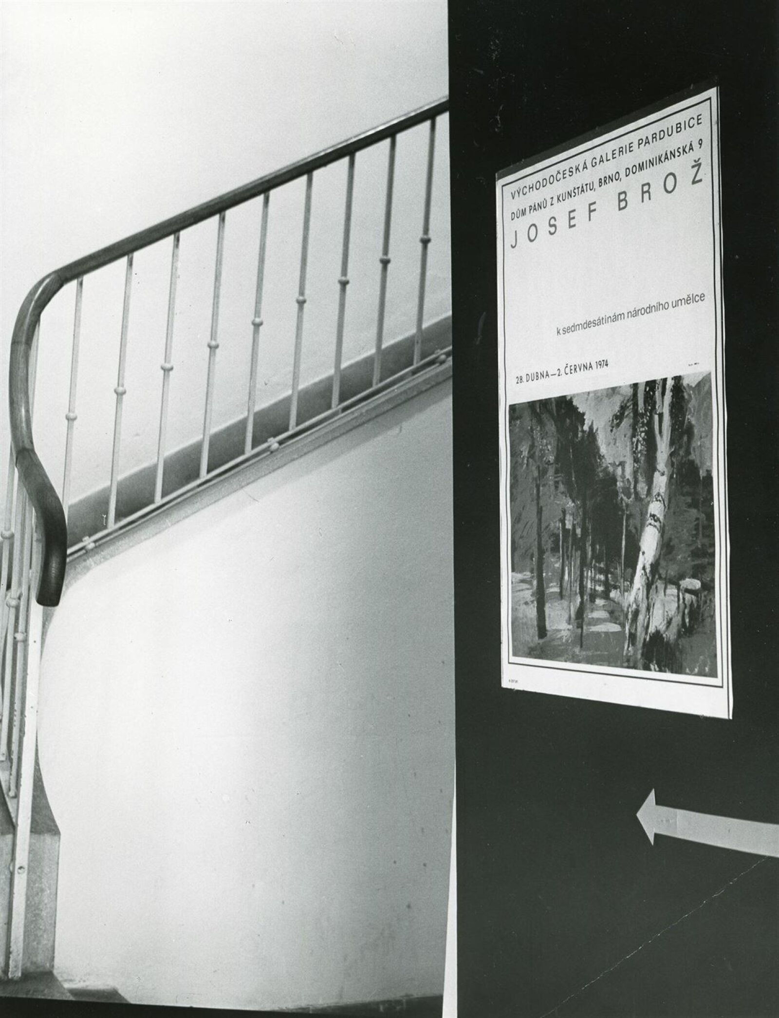 Josef Brož: Dům umění / Dům pánů z Kunštátu, 28. 4. – 31. 5. 1974 / Převzatý katalog. Josef Brož. Výbor z díla: Východočeská galerie, Pardubice, 1974 / Text: Vladimír Řeřucha, Miroslav Kudrna, báseň František Halas. – Pardubice: Východočeská galerie, 1974. – 32 s., obr., životopis, DPK 570. – MZK; MG