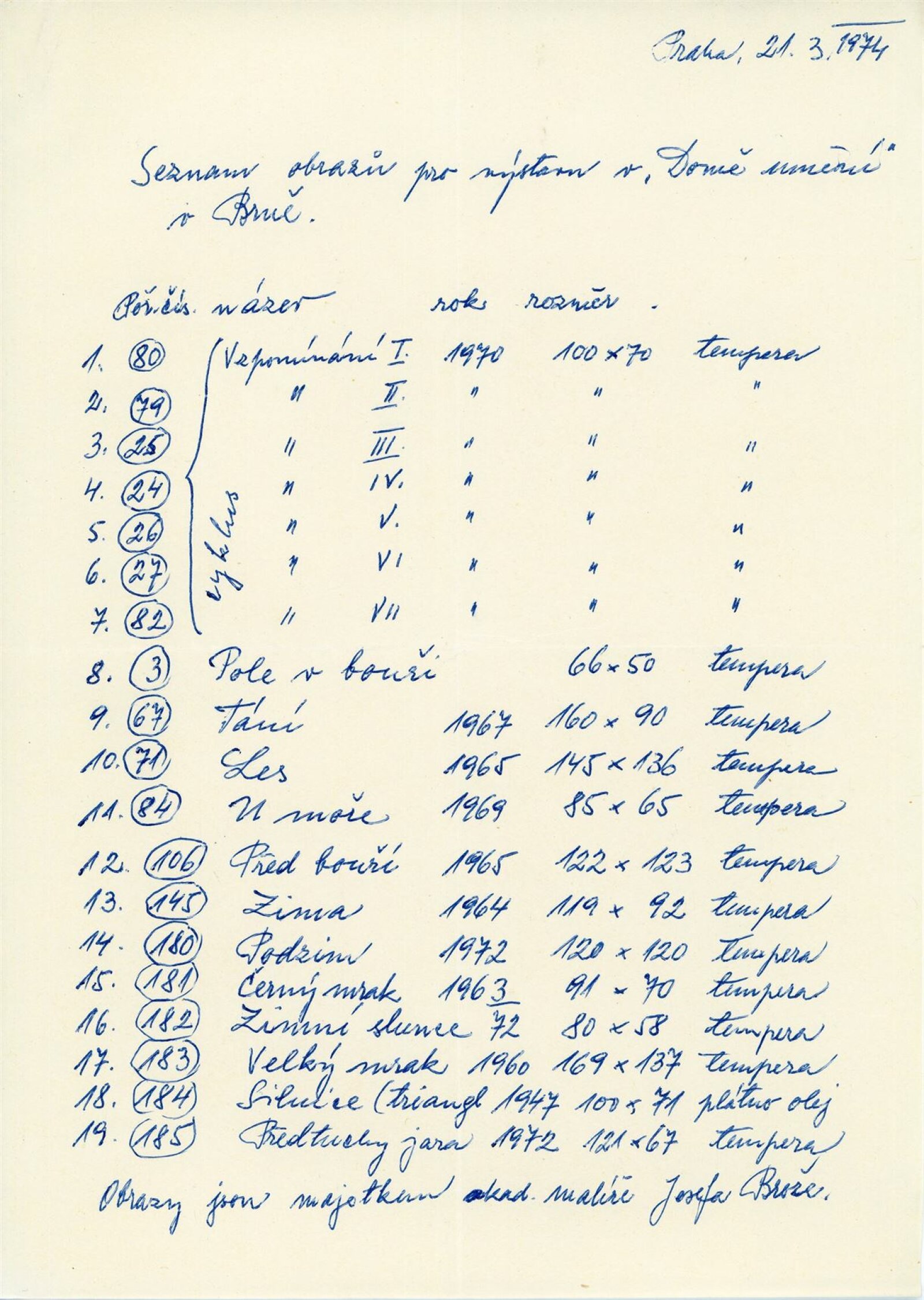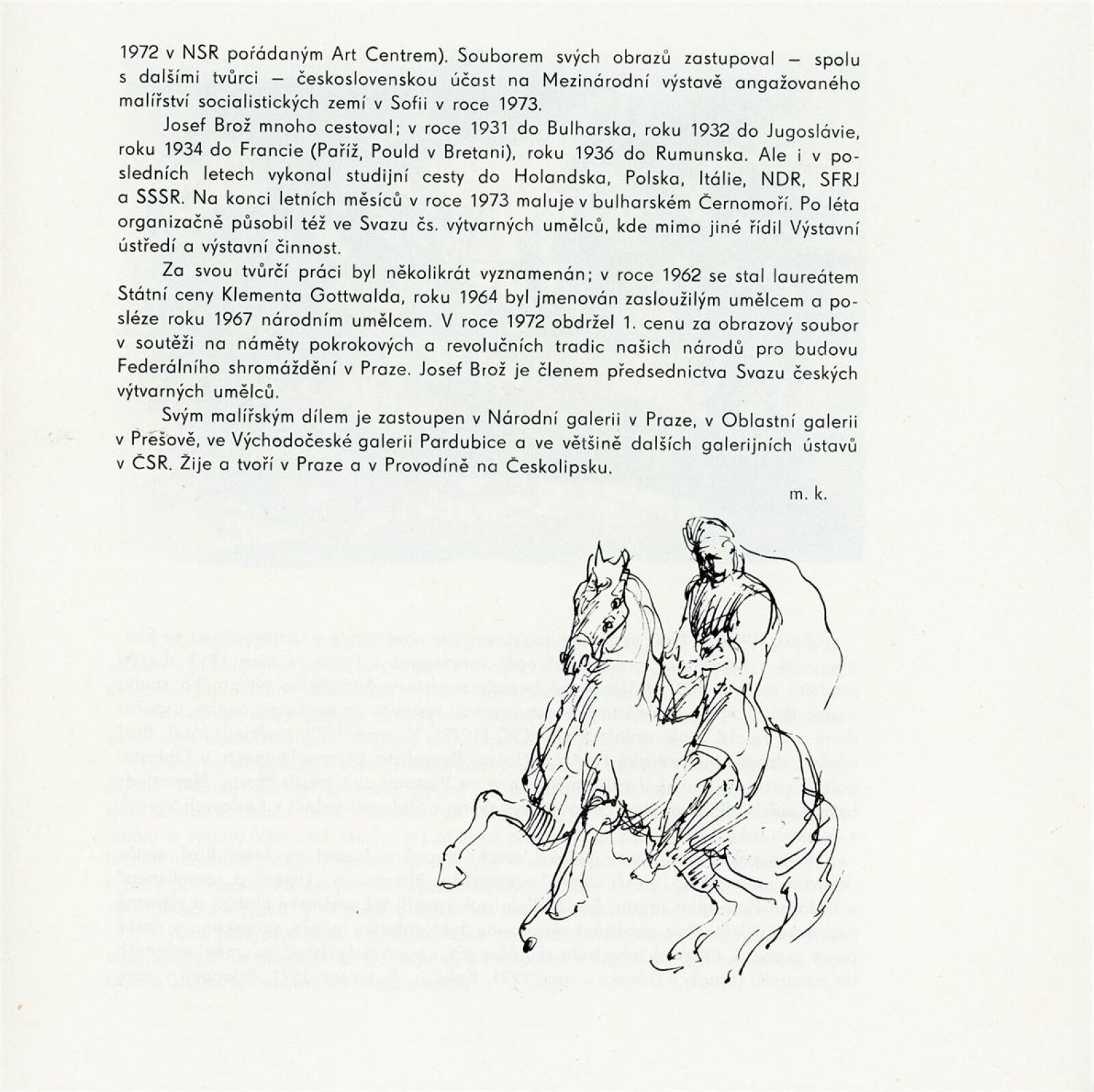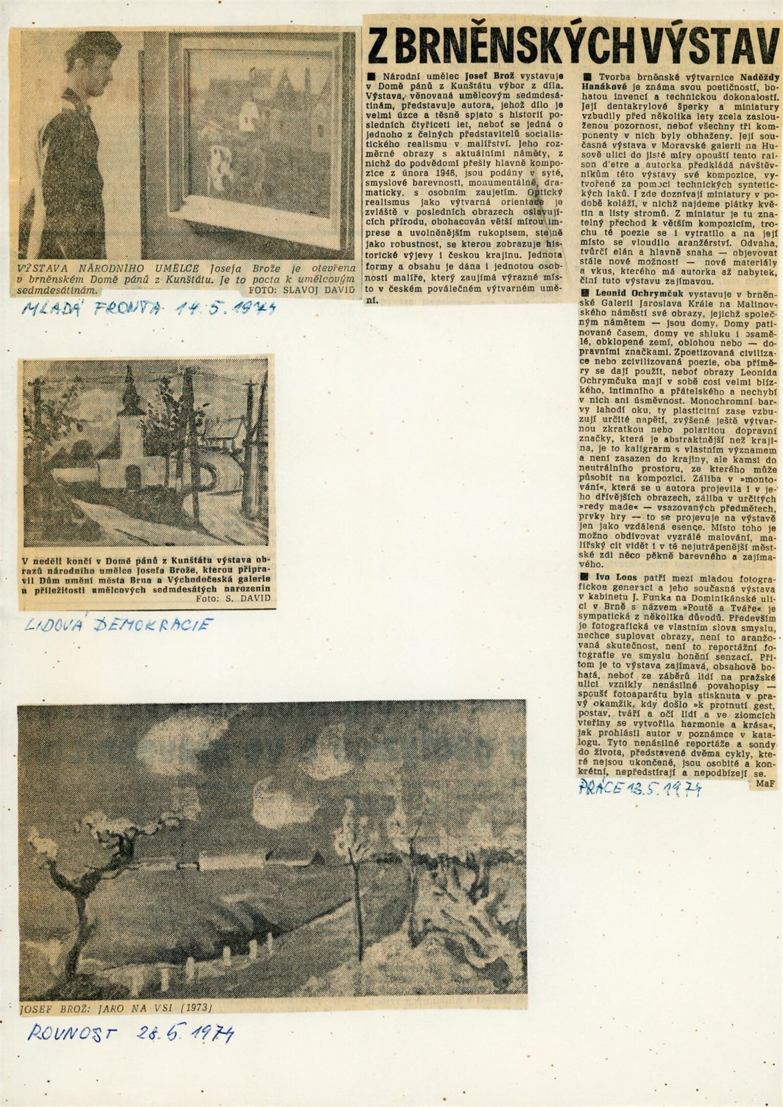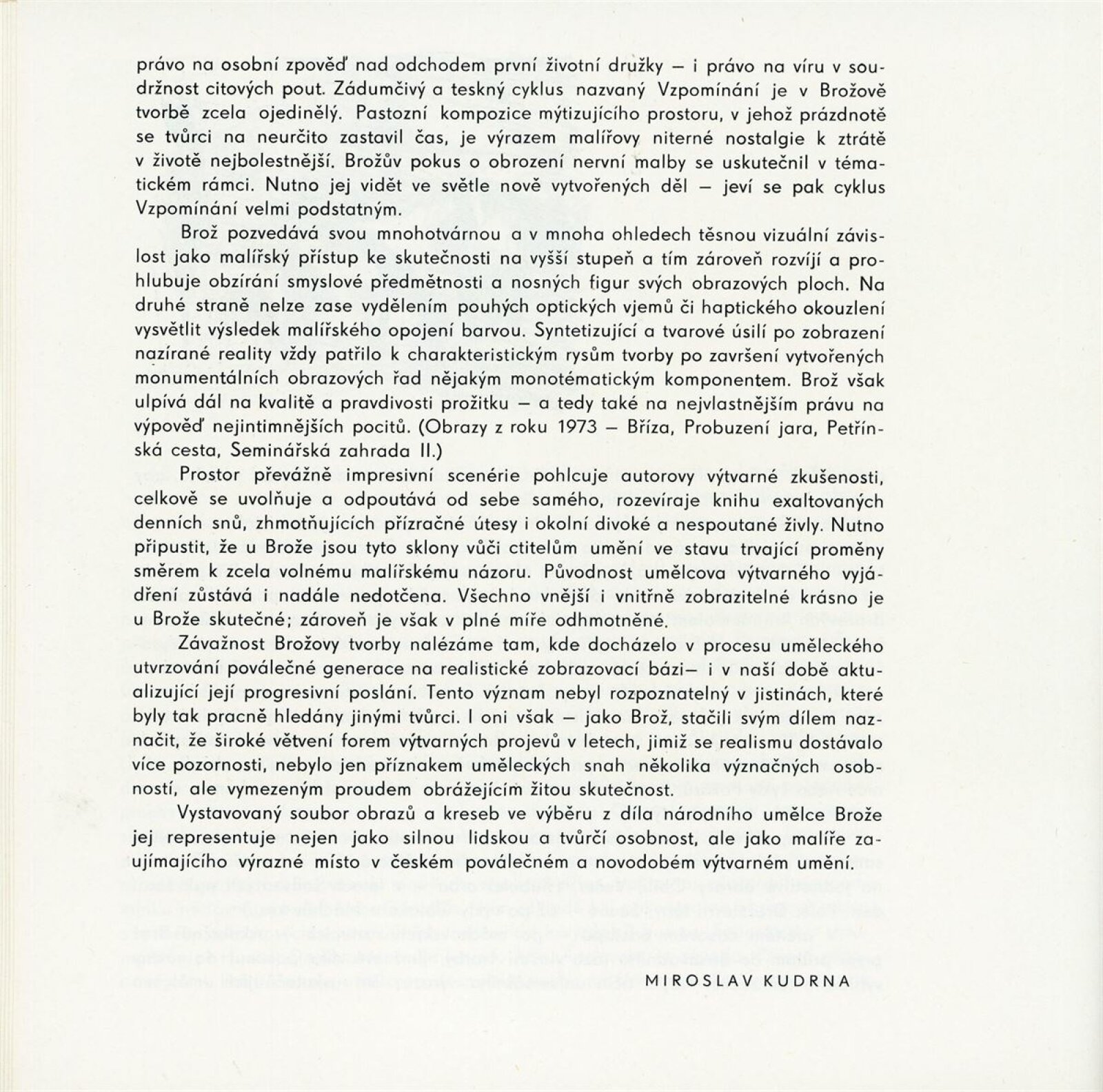 Josef Brož: Dům umění / Dům pánů z Kunštátu, 28. 4. – 31. 5. 1974 / Převzatý katalog. Josef Brož. Výbor z díla: Východočeská galerie, Pardubice, 1974 / Text: Vladimír Řeřucha, Miroslav Kudrna, báseň František Halas. – Pardubice: Východočeská galerie, 1974. – 32 s., obr., životopis, DPK 570. – MZK; MG