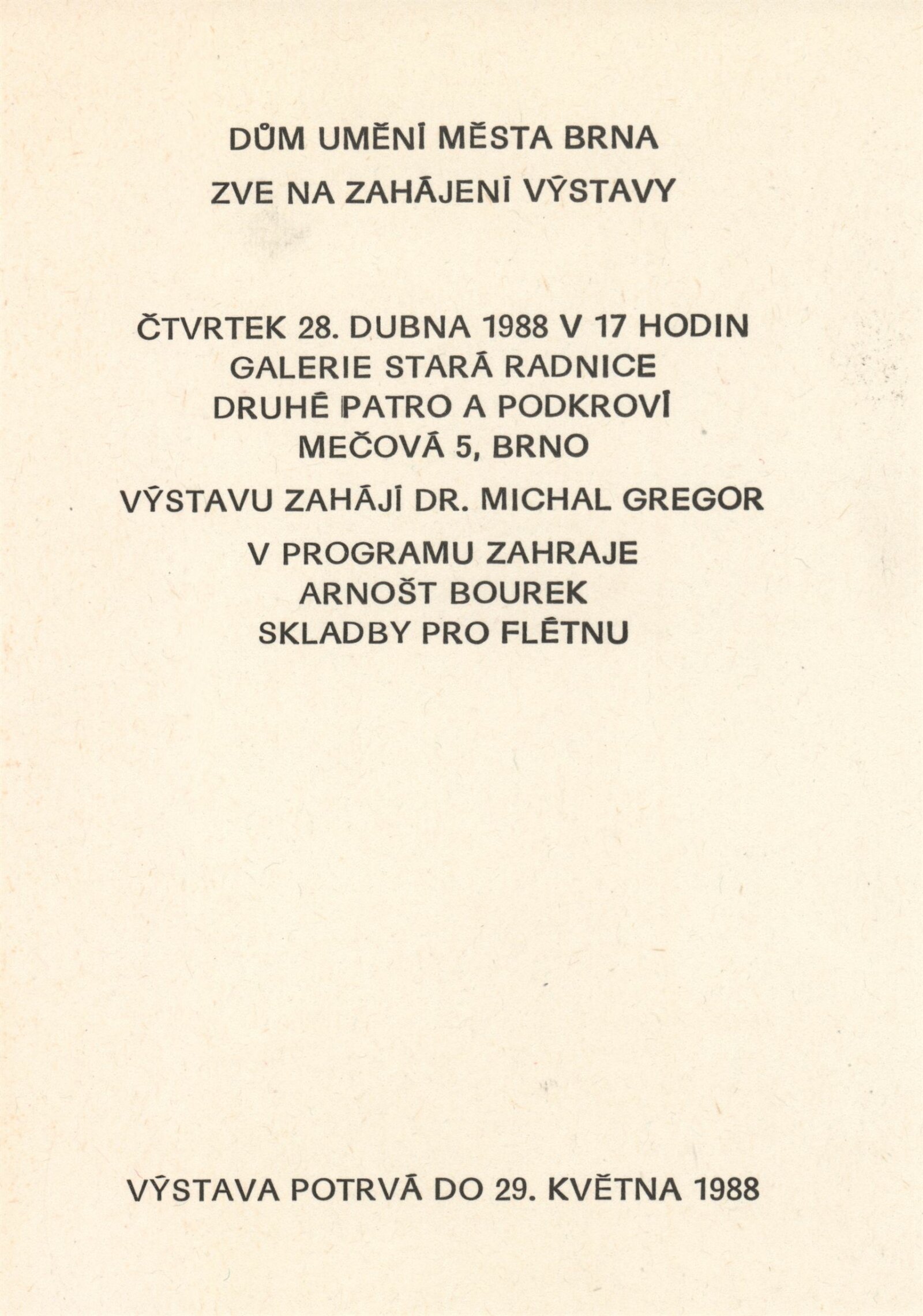 pozvánka, katalog, strojopis pozvánky, katalogu a grafického listu, fotografie ke katalogu, seznam vystavených prací, báseň Ludvíka Kundery ke grafickému listu, korespondence, žádost a potvrzení o konání výstavy, recenze v tisku