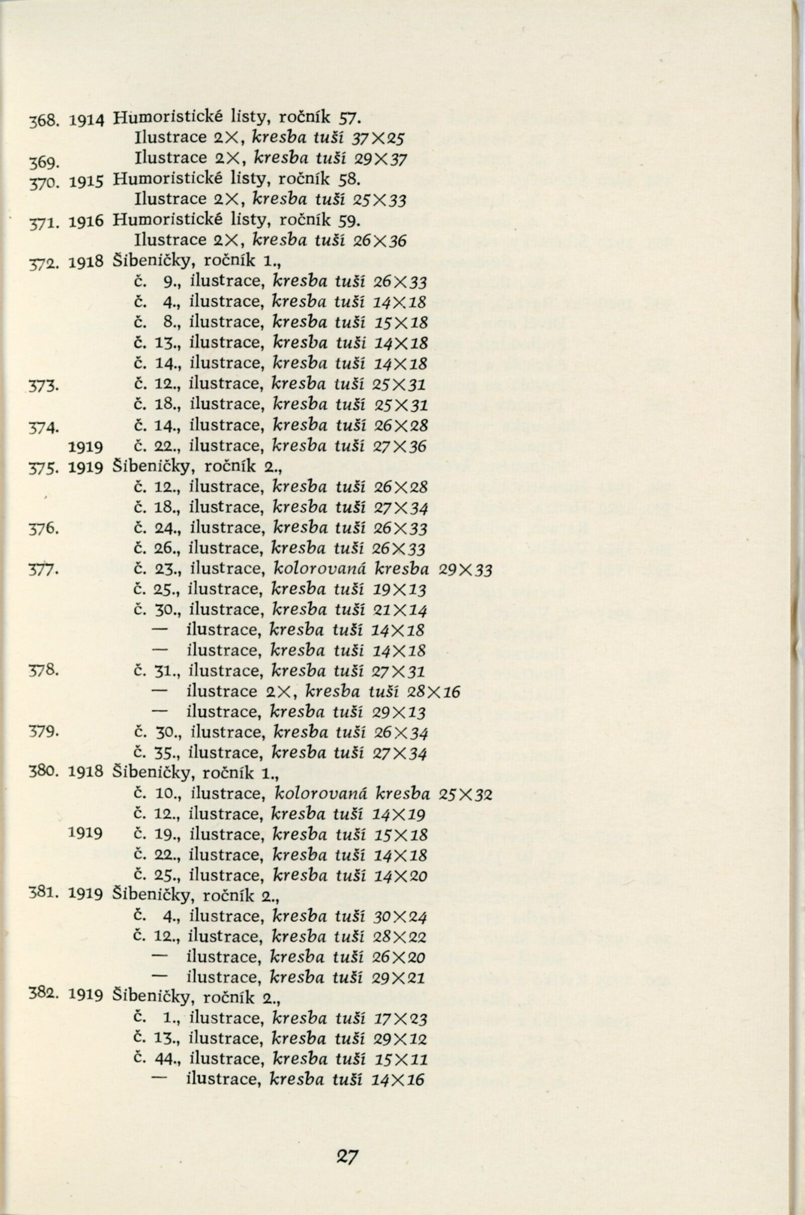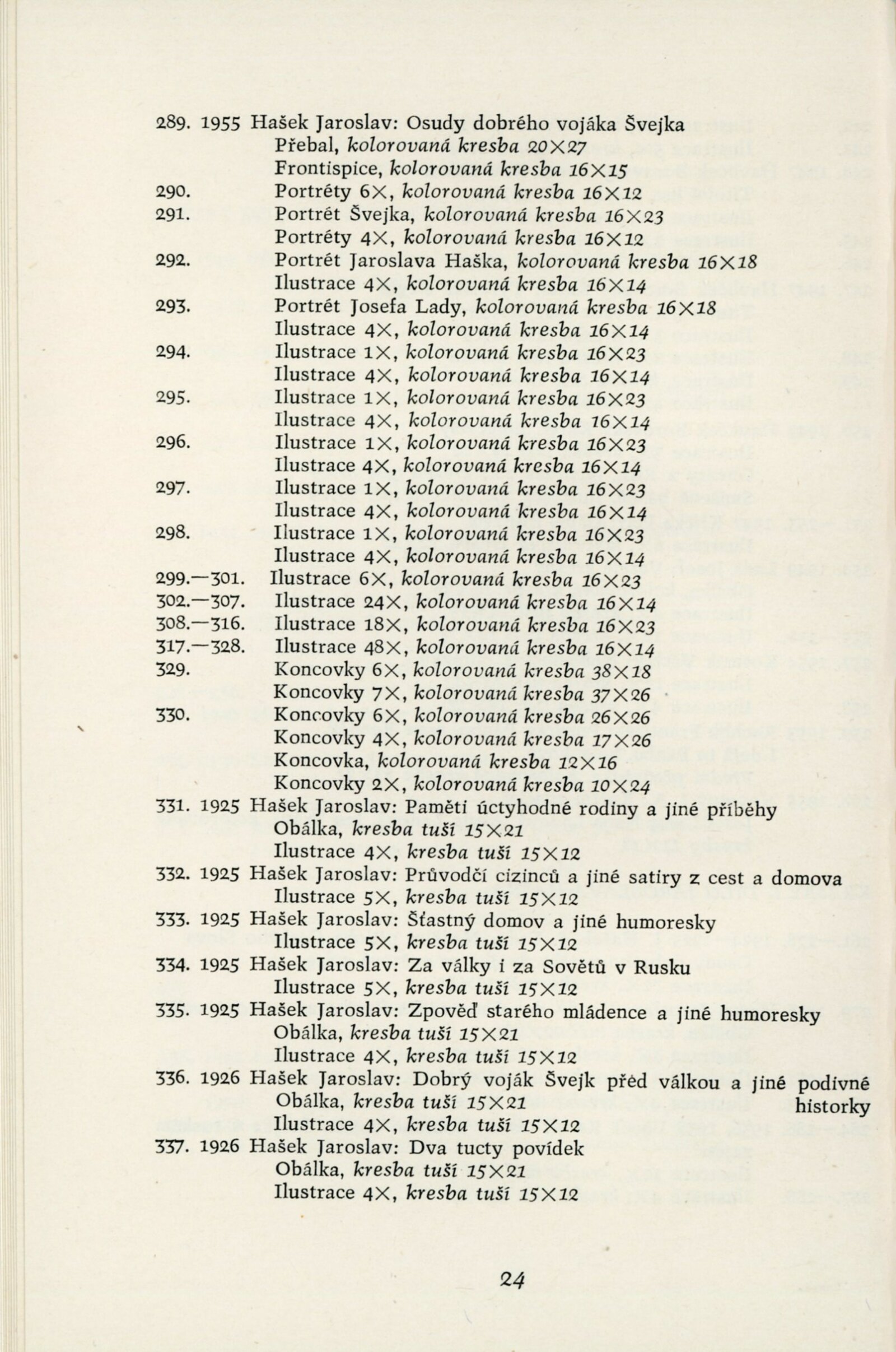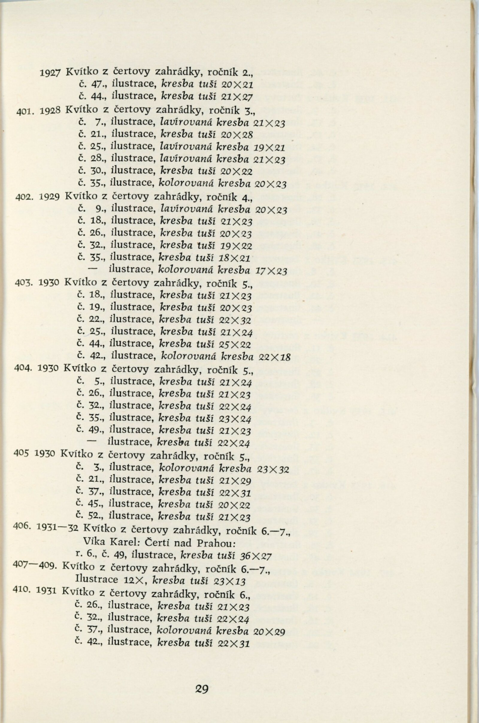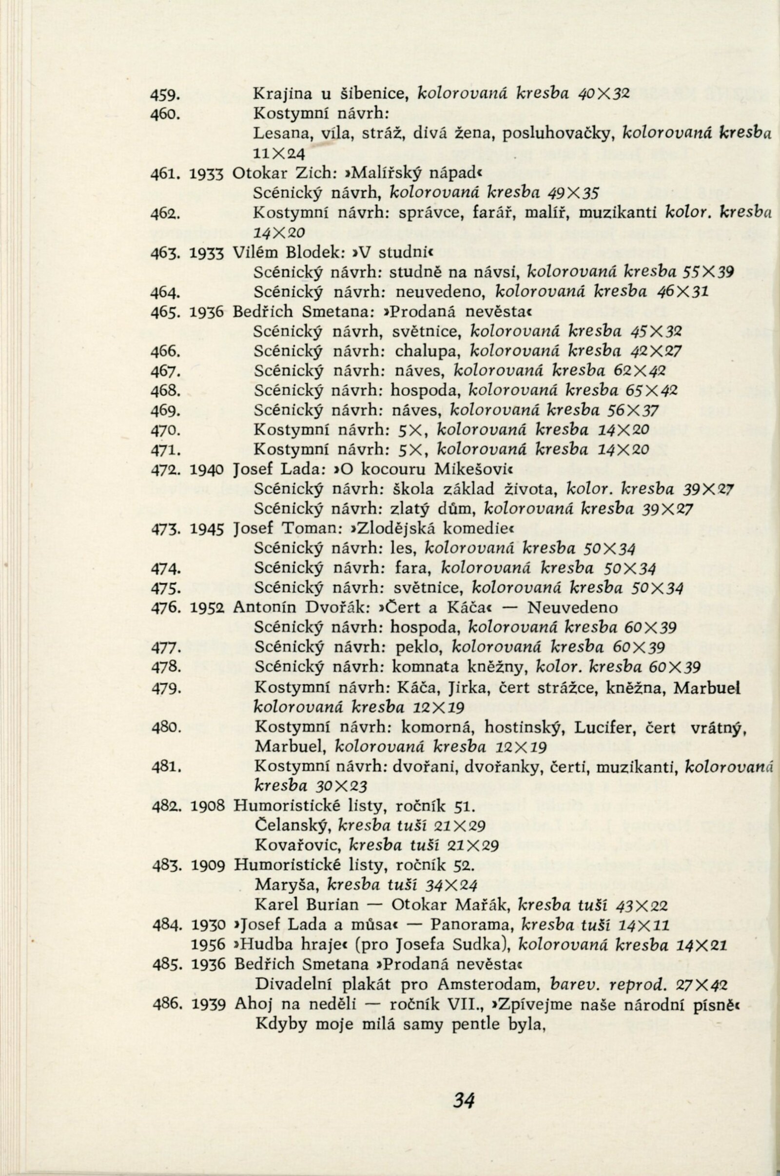 Josef Lada: Dům umění v Brně / Dům pánů z Poděbrad, 13. 4. – 18. 5. 1958 / Převzatý katalog. Národní umělec Josef Lada. Souborná výstava k jeho sedmdesátým narozeninám: Slovanský ostrov, Praha, prosinec 1957 – únor 1958 / Text: Jaromír Pečírka. – Praha: SČSVU, 1958. – 40 s., 32 s. obr. přil. 2 s. jednobar. obr. přil., báseň Ladislav Stehlík, DPK 3. – MG