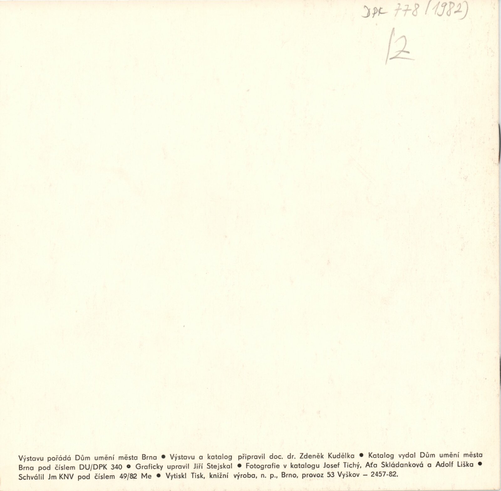 pozvánka, katalog, počet děl, seznam vystavených děl, potvrzení převzetí děl, zápůjční revers, korespondence provozní i s institucemi (MMB, DUO), žádost o výstavu (DuMB, Dům umění Opava, rovněž jménem autora), recenze v tisku
