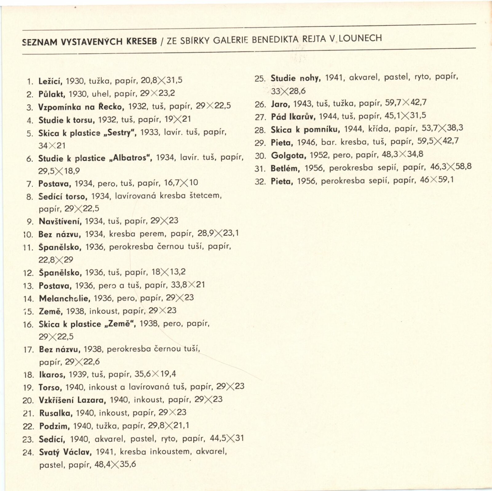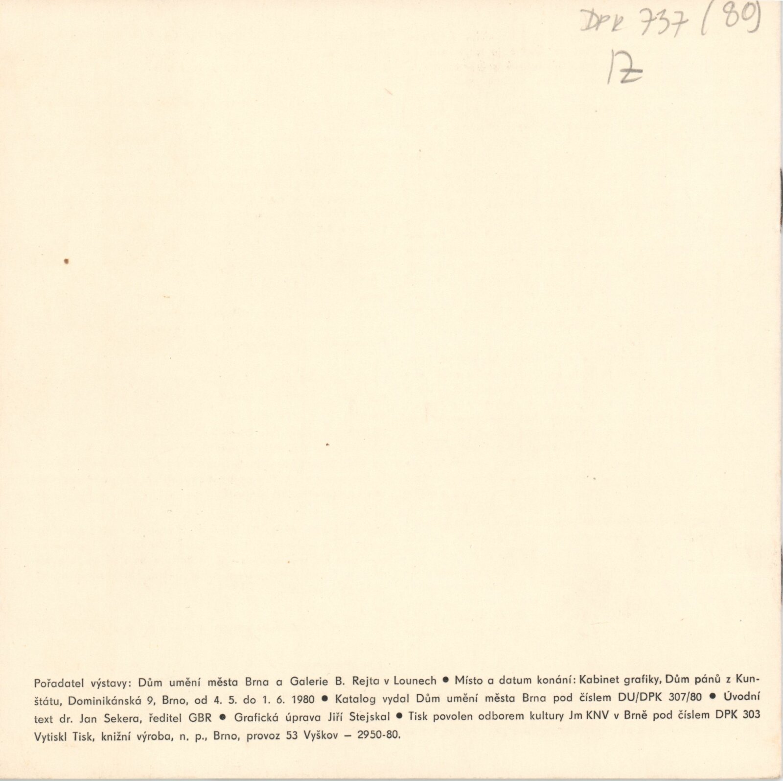 pozvánka společná pro DPK 737, 738 a 739, katalog, strojopis, fotografie děl, seznam vystavených prací, provozní korespondence (Galerie Benedikta Rejta v Lounech), smlouvy o výpůjčce, recenze v tisku