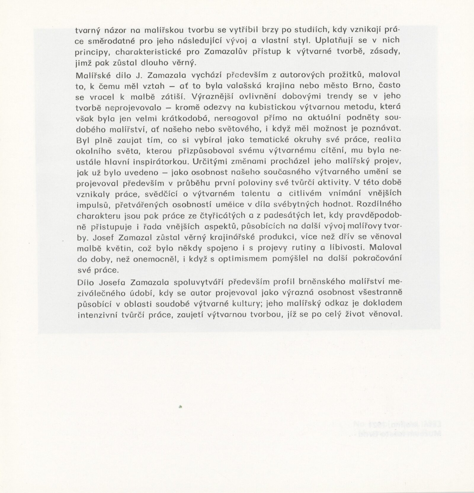Josef Zamazal: Galerie Stará radnice, Kabinet grafiky, podkroví, 13. 3. – 15. 4. 1990 / Text: Jana Vránová. – Brno: DUmB, 1990. – [16] s., obr., životopis, výstavy, zastoupení ve sbírkách, GSR 68. – MZK; MG