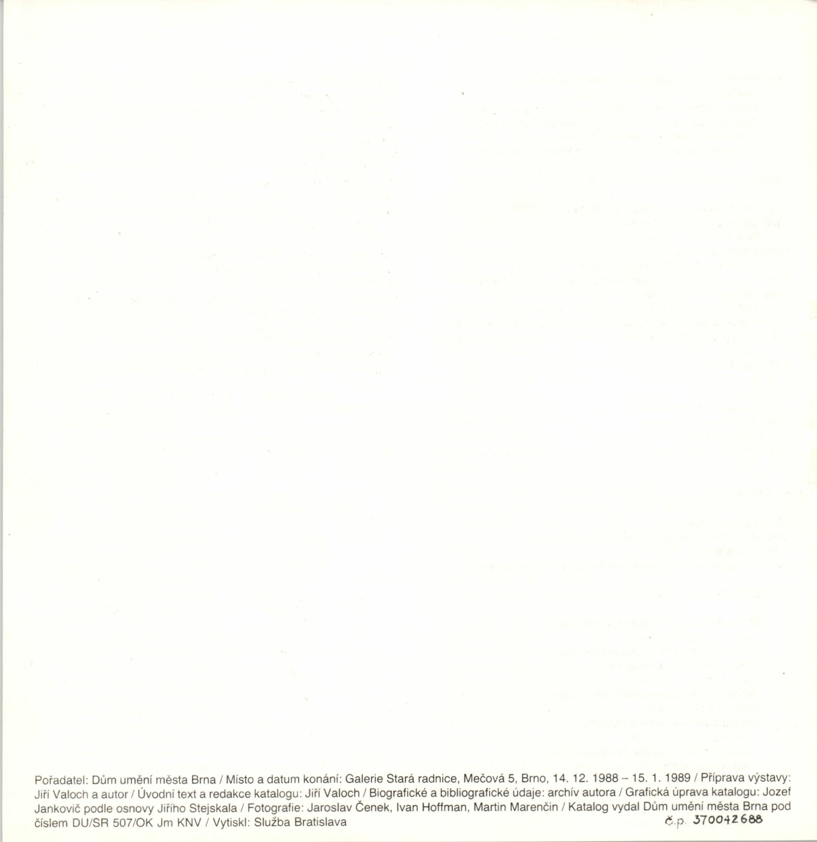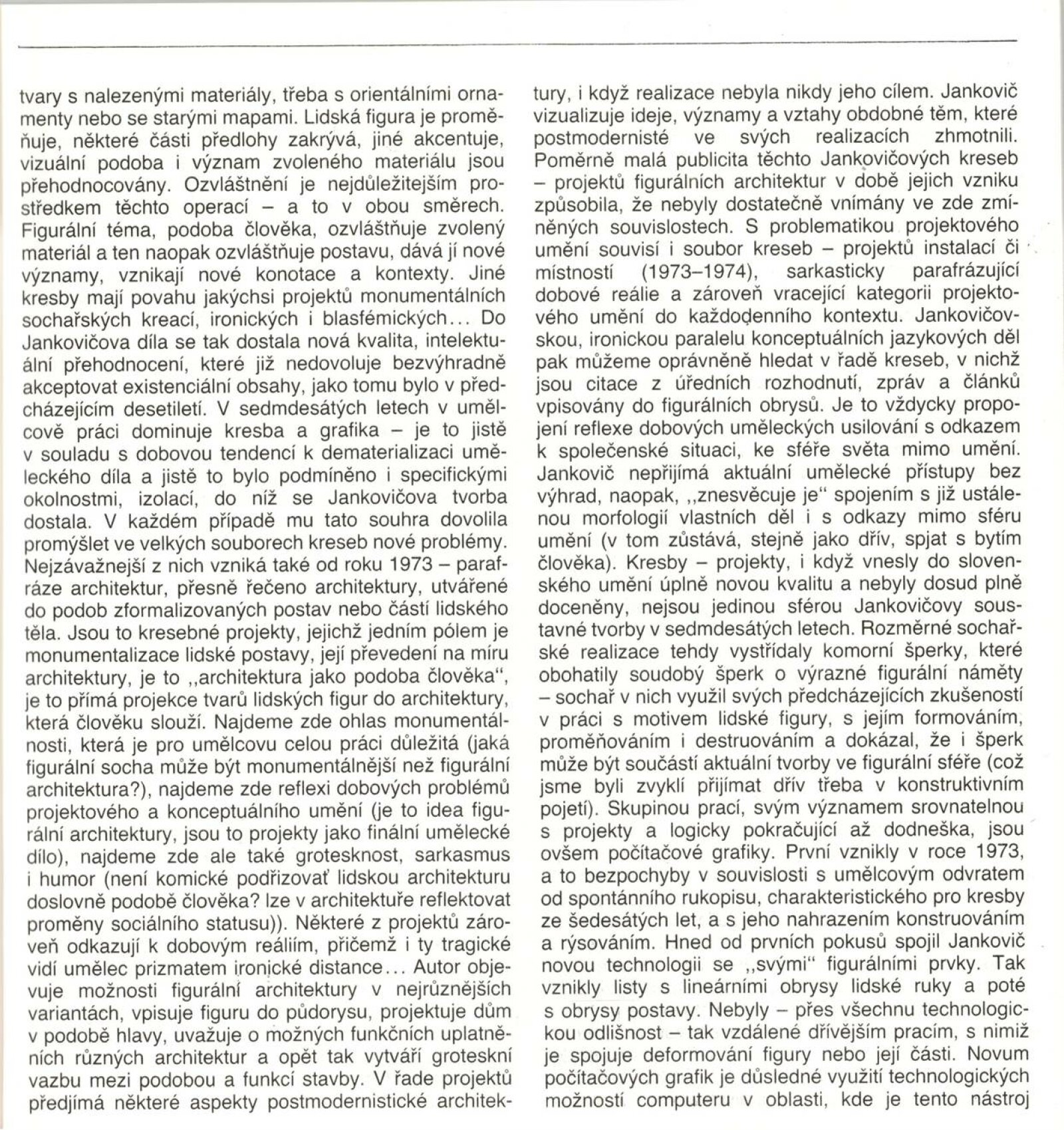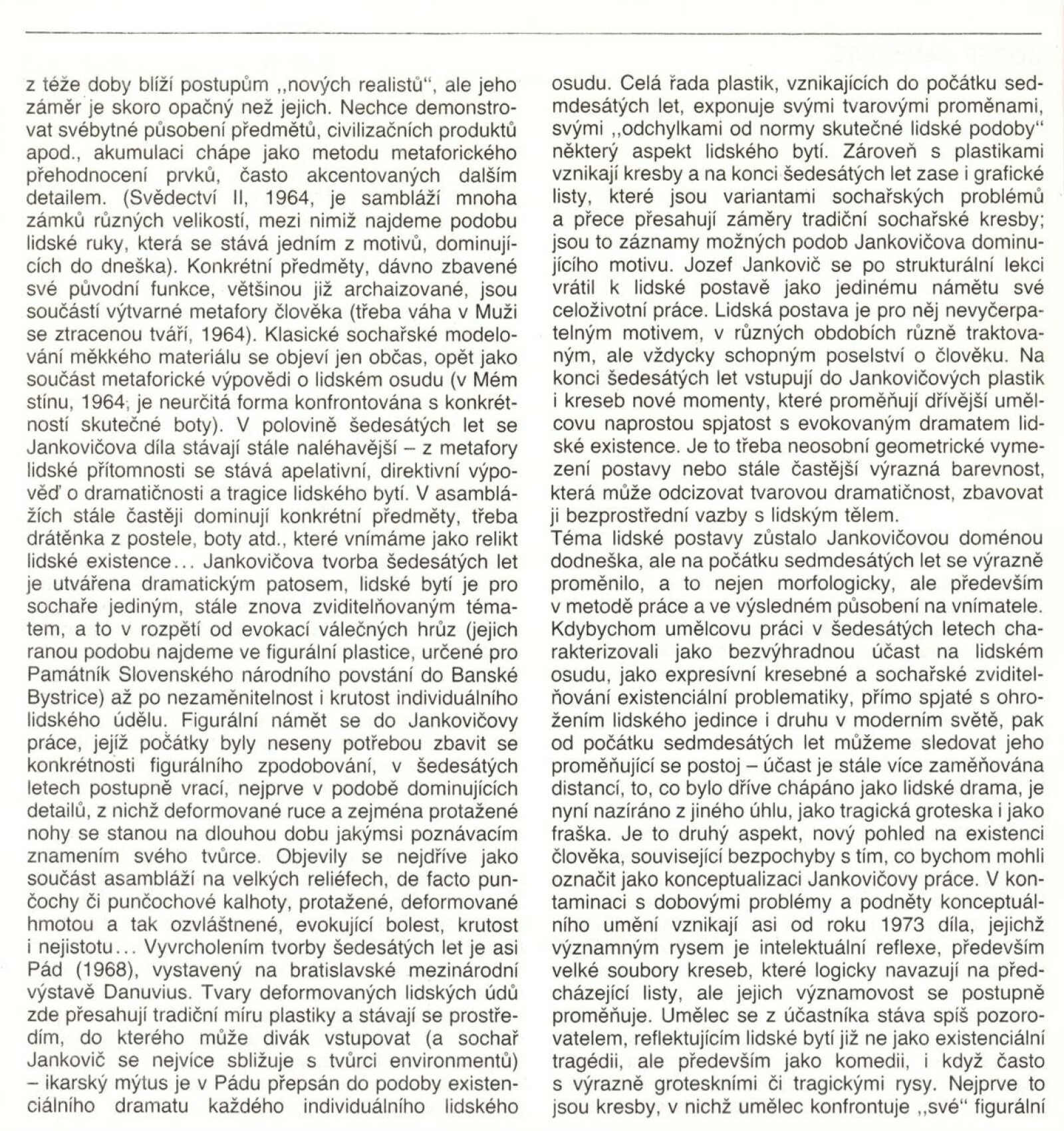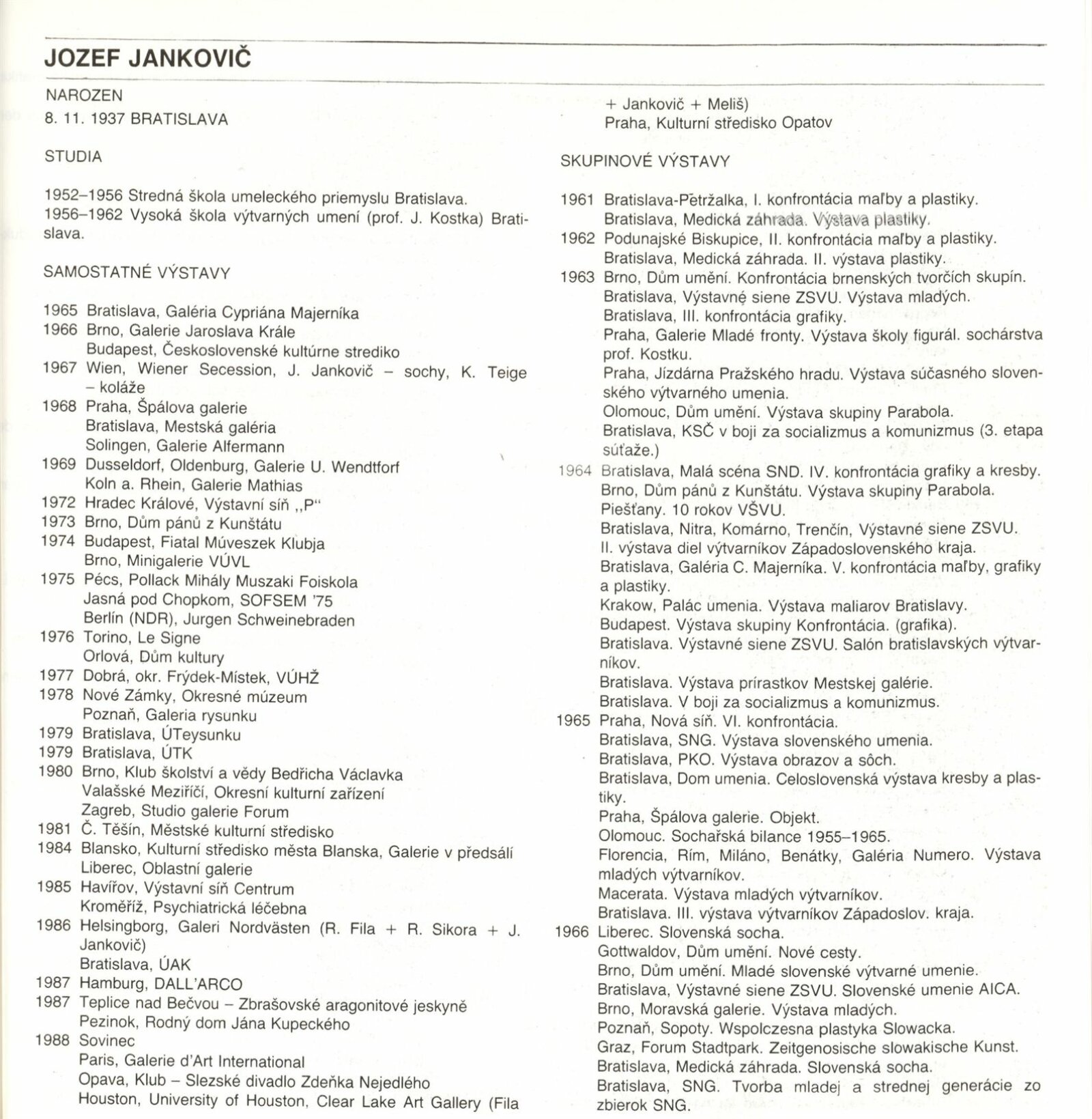 Josef Jankovič. Sochy, kresby, počítačová grafika: Galerie Stará radnice, 14. 12. 1988 – 15. 1. 1989 / Text: Jiří Valoch. – Brno: DUmB, 1988. – [40] s., obr., životní data, výstavy, ceny, zastoupení ve sbírkách, GSR 39. – MZK; MG; MMB