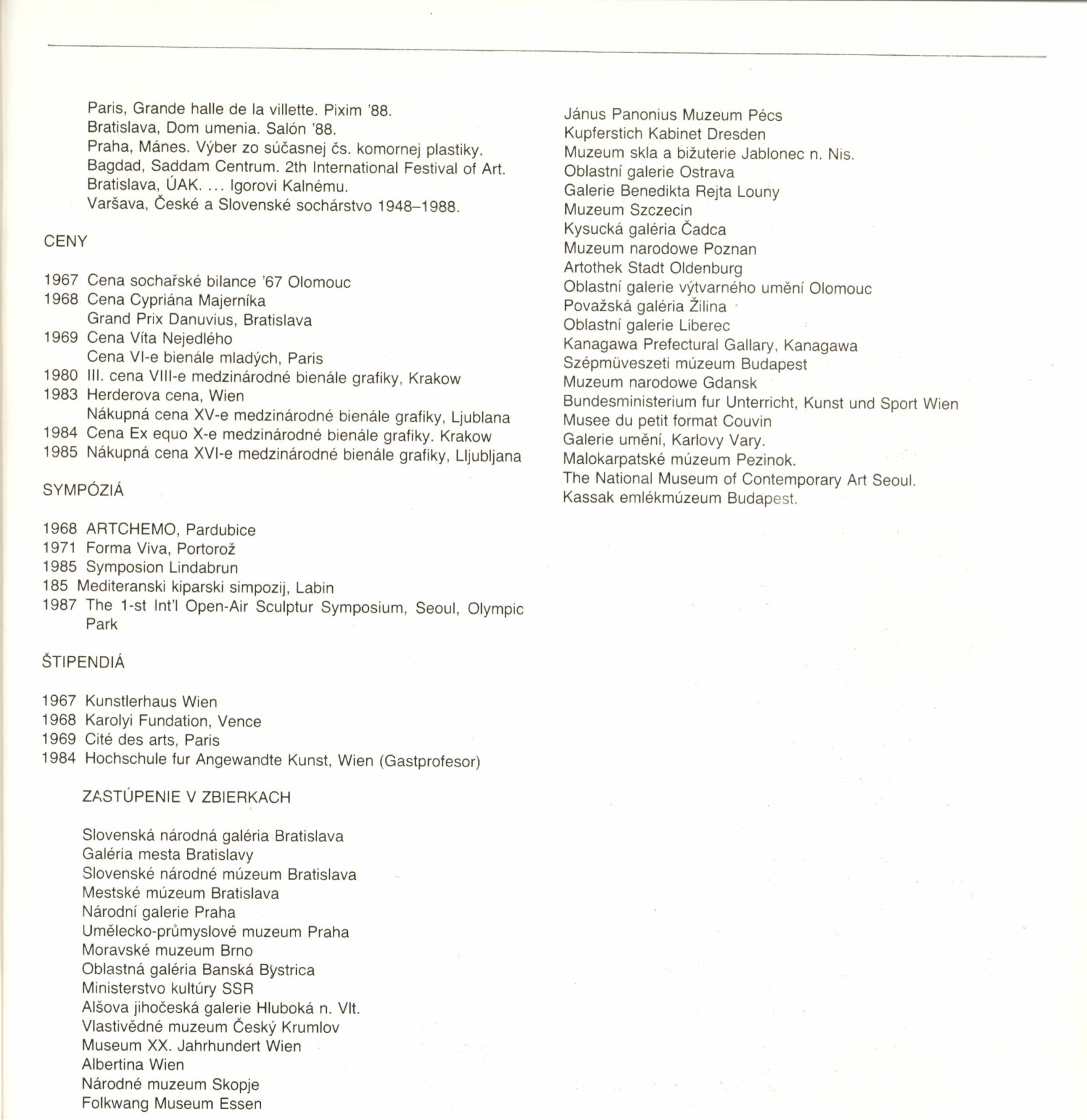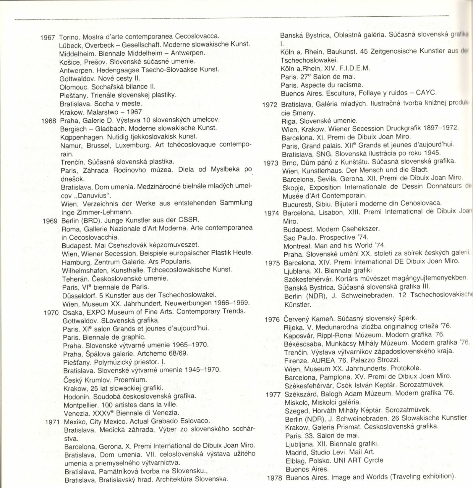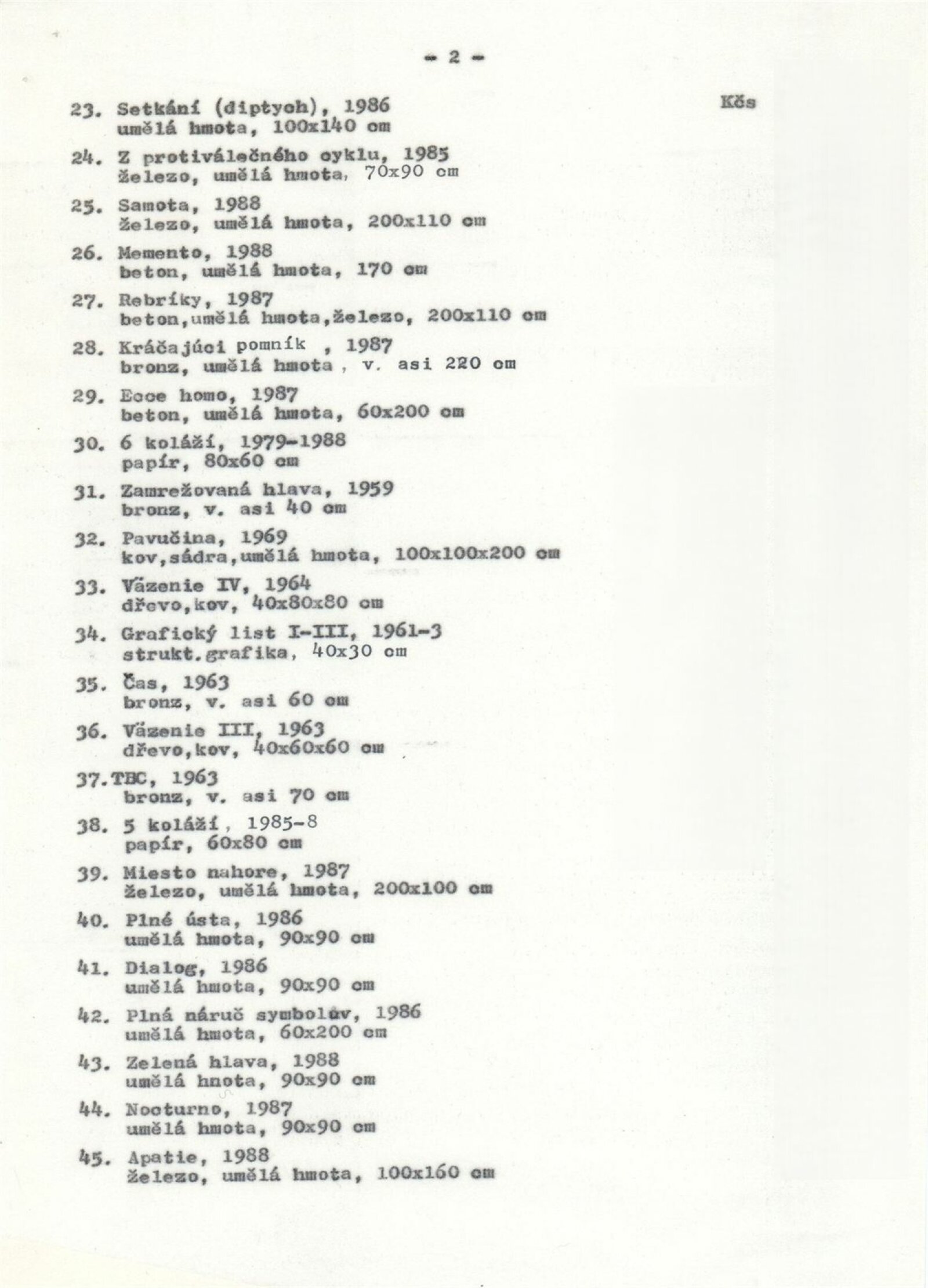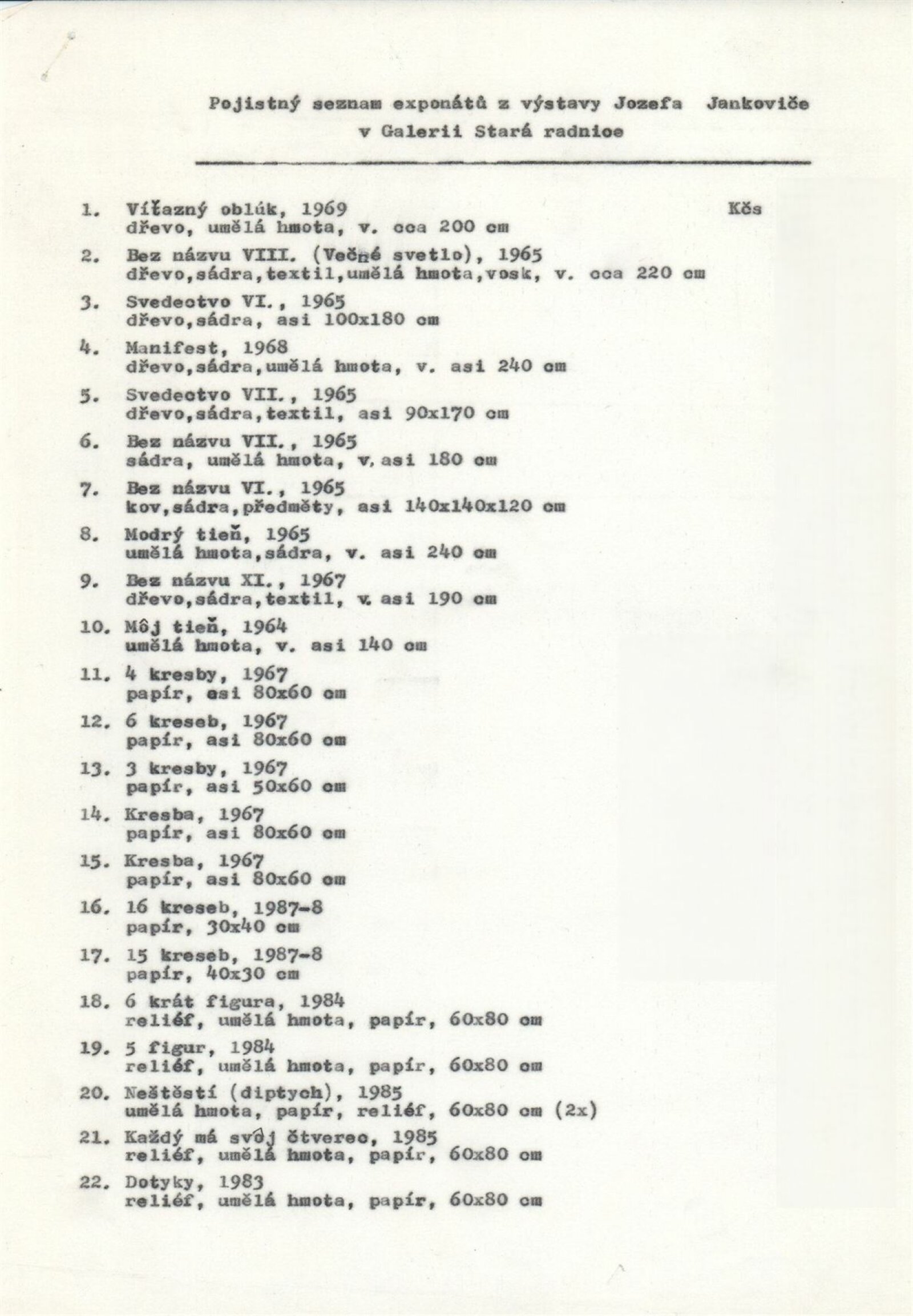 pozvánka, katalog, strojopis, fotografie instalace výstavy, pojistný seznam, provozní korespondence, smlouvy o výpůjčce, potvrzení o převzetí, žádost autora o výstavu, recenze v tisku