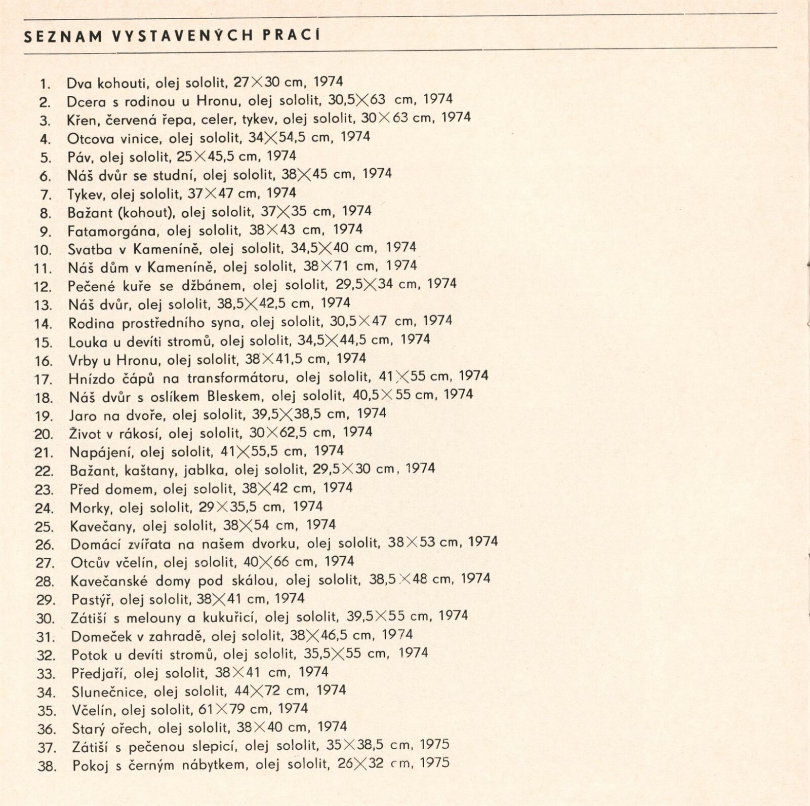 pozvánka, katalog, katalog předchozí výstavy (Košice 1975), fotografie děl, seznam vystavených děl, plakát (Poprad 1976), strojopis textu pro média, podklady pro katalog, korespondence (rukopis vyprávění 17. 11. 1979 od Júlia Bartusze), provozní korespondence, žádosti o zápůjčky, reversy, žádost o povolení výstavy, recenze v tisku