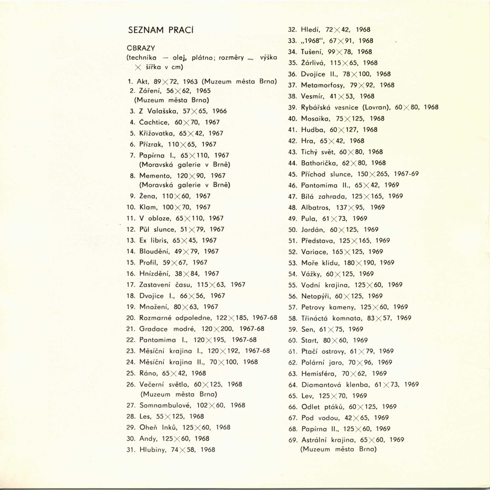 Karel Kryl. Obrazy, kresby, plastiky 1964–1969: Dům umění města Brna / Dům pánů z Kunštátu, 15. 2. – 8. 3. 1970 / Text: Nina Dvořáková. – Brno: oddělení informací PKO, 1970. – 12 s., obr., životní data, výstavy, DPK 431. – MZK; MG; MMB