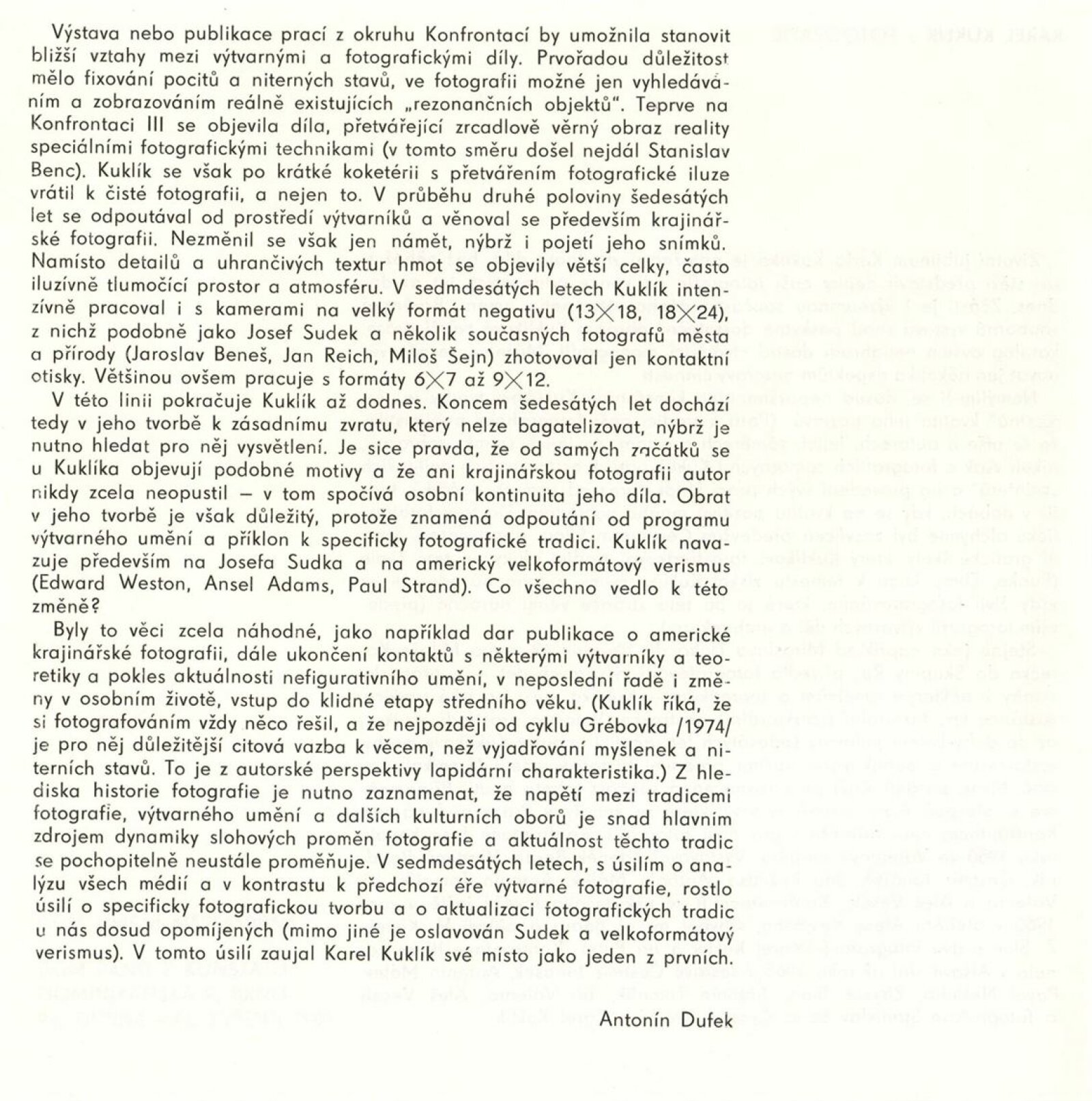 Karel Kuklík. Fotografie: Dům umění / Dům pánů z Kunštátu, [Kabinet grafiky], 21. 4. – 24. 5. 1987 / Text: Antonín Dufek. – Brno: DUmB, 1987. – [17] s., obr., životní data, výstavy, bibliografie DPK 890. – MZK; MG