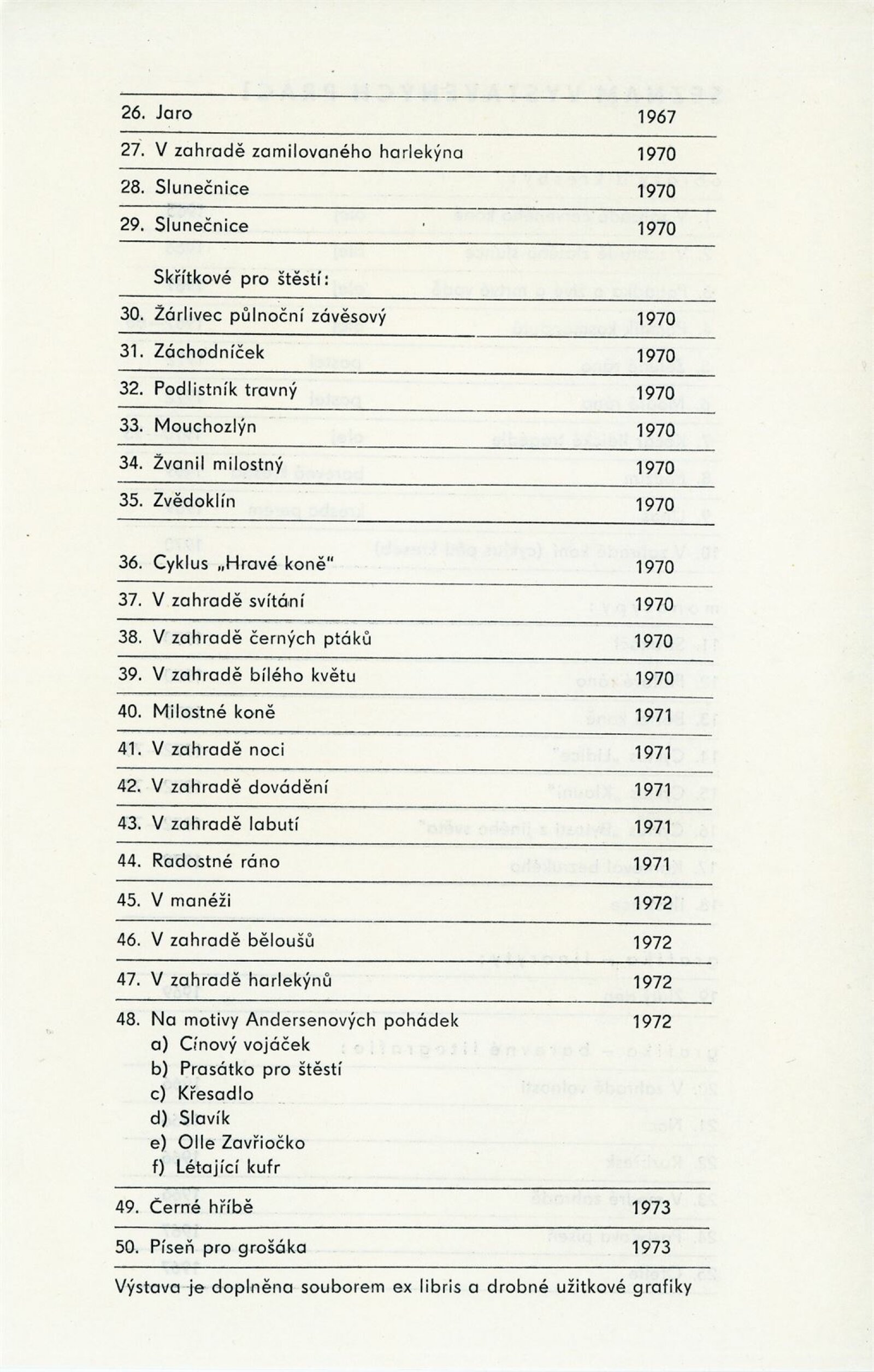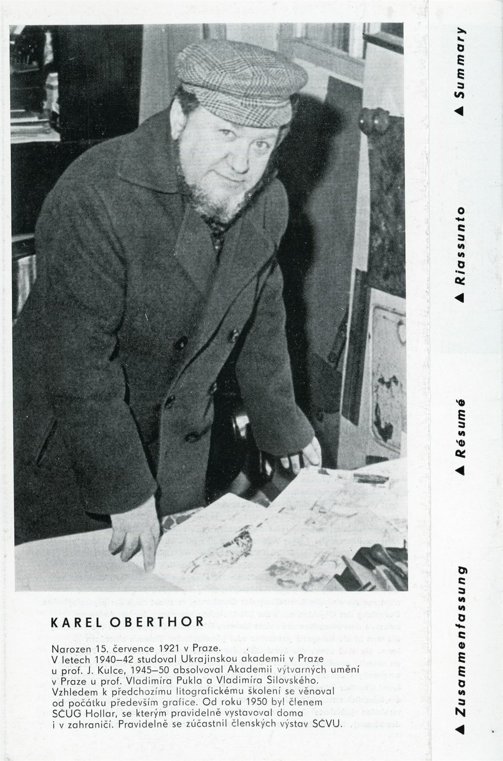 Karel Oberthor. Obrazy a grafika: 53. výstava v Galerii Jaroslava Krále 2. 5. – 27. 5. 1973 / Text: Zdeněk Čubrda. – Brno: ČFVU, – 10 s., obr., seznam vystavených prací 2 s., obr., portrét, životopis, výstavy, DU 591. – MZK; MG; MMB